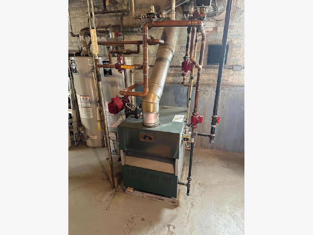 Opportunity knocks !!!! Long time owners have decided to move on. Great brick 2 unit property that gets flooded with natural light. There is plenty of space between neighbors to the east & west. Please see photos. Tall ceilings in basement, which is also light & bright.**** Please note that the finished basement area with living room, kitchen area, bath, & bedroom, is not included in the room count. There is also radiant heat in the basement **** See photos . 1st floor unit features include : Hardwood flooring under carpet, spacious room sizes throughout, especially the eat in kitchen & primary bedroom. 2nd floor features a cozy 1 bedroom unit with Pella windows, hardwood flooring, high ceilings, eat in kitchen and loaded with natural light. Approximate ages of mechanicals & updates - 2 hot water tanks 2009 & 2023, Siding on back porch & garage 15 yrs., Pella windows on 2nd floor 2015, windows on 1st floor 2010, Concrete patio 9-10 yrs. old, Roof about 17 yrs. old, & Boiler 2006. Great yard space and a 2 car detached garage. This is truly a must must see !!!!