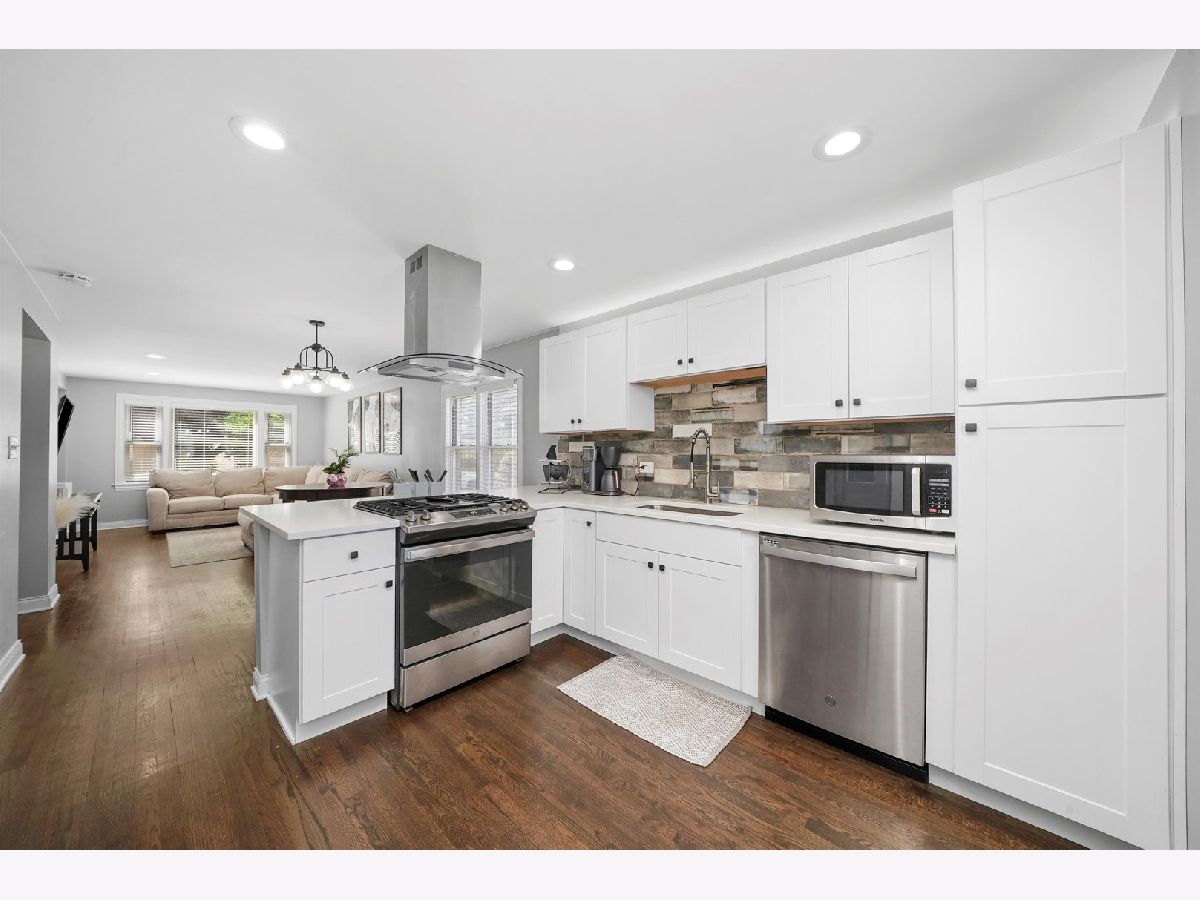 Beautiful ranch style home situated in the sought after location in Garfield Ridge. Walk into this modern open floor concept property with original refinished hardwood flooring. Plenty of natural light along with updated recessed lighting. Newer windows which include the window treatments. Neutral fresh paint throughout. Contemporary style kitchen with white custom cabinets, white quartz counter tops and high scale stainless steel appliances. Adorable matching full bathroom with soaking tub. Full finished basement with a dry bar perfect for entertaining. Newer furnace, air conditioner, & water heater. Washer and dryer also included! Perfect size yard with a two and a half car garage. Additional bonus exterior parking space next to the garage. Shopping, Restaurants and I-55 294 minutes away.