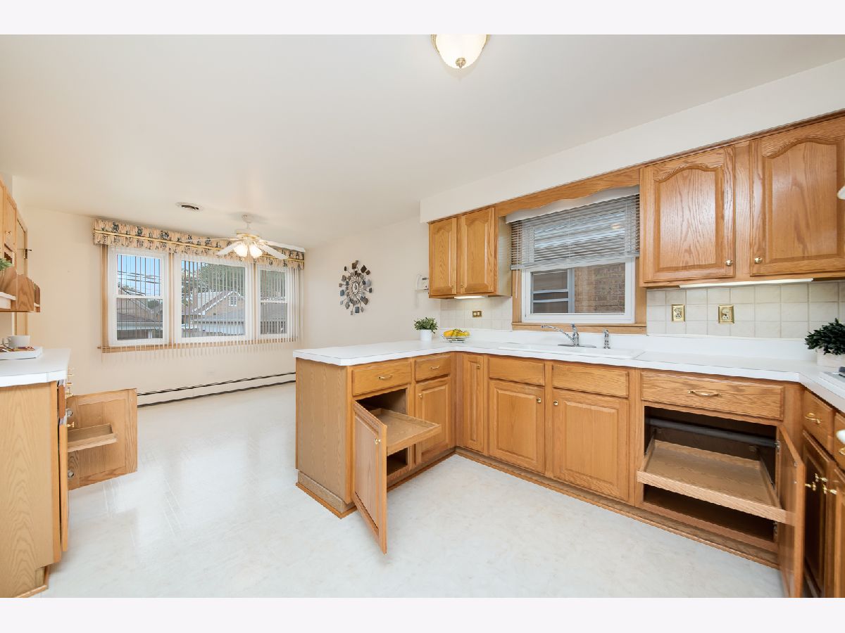 SOLID~ROOMY~IMMACULATE~2 KITCHENS! Gorgeous Garfield Ridge home has it ALL! Brick exterior welcomes you. Spacious living, wonderful natural light thru-out...love the windows! Huge kitchen has quality cabinetry, generous counter space, pull-out drawers, serving buffet AND a fabulous yard view! 3-bedrooms with hardwood flooring, ceiling fans and exceptional closets...2 of the bedrooms have dual closets! Immaculate full bathrooms upstairs and down. The finished lower level is so well designed...huge entertaining space, FULL KITCHEN, laundry room, full bath, storage closet...glass block windows bring the light in plus recessed lighting, super cool bar...PERFECT for extended family & all the holiday gatherings! Love the fenced yard, patio space & overhang on the garage with more room to relax/entertain. Super neutral colors thru-out...your paint and decor will only enhance this fabulous home! It has has been loved!