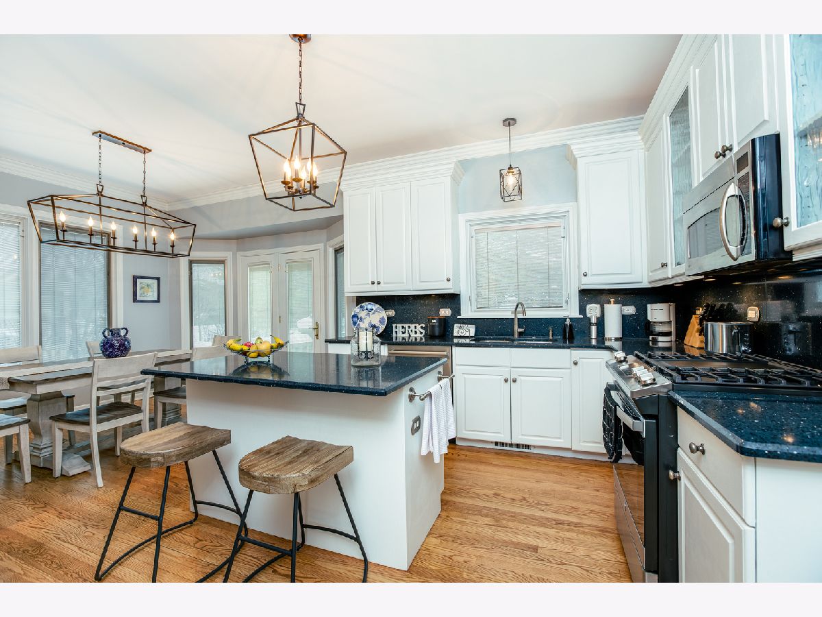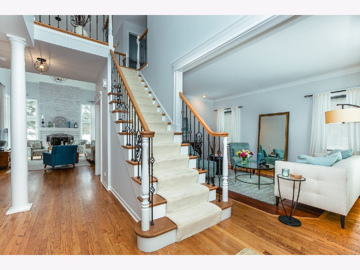 Located near Wheaton Academy & the Bartlett High School this exquisite and fine home, offers amazing curb appeal with its fabulous paver driveway and walkways that lead you to the pretty entrance. As you step through the double front doors adorned with leaded glass, you will be amazed by what this home has to offer. The main level offers tall 9+foot ceilings, custom trim work, an impressive staircase with wrought iron spindles and beautifully refinished hardwood floors throughout. The living and dining rooms both have great natural light through beautiful Palladian windows. The kitchen is a chef's dream featuring a large eat-in area, quartz counters & backsplash, stainless steel appliances and a butler's pantry. The family room sits in the center of the home and boasts a two-story volume ceiling, tall bright windows and a floor-to-ceiling fireplace. Adjacent to the family room is the den, complete with bright windows and a hardwood floor with a carpet inlay. Retreat upstairs to the owner's bedroom offering a tray ceiling, a large custom walk-in closet, a sitting/exercise room (4th bedroom) and a luxurious private bath. The private bath offers a spa-like escape featuring a Victoria & Albert freestanding tub, a separate shower, double sinks and custom Studio 41 cabinets. Explore the lower level with professionally finished spaces, recessed lighting and engineered hardwood floors. Stepping outside you will love the professionally landscaped yard surrounding the home. Relax on the back patio adorned with stone pillars and customt exterior lighting. Updates include: Hot Water Heater (Dec '23), Water Softener (Nov '23), Oven/Range & Fridge (2023), Furnace (2021), Air Cleaner/Purification System Secure Air (2021), Washer (2020). Positioned in the sought-after Meadow Wood locale, this residence is nestled between St. Andrews Golf Club, Old Wayne Golf Club and the West Branch Forest preserve. A true 10+