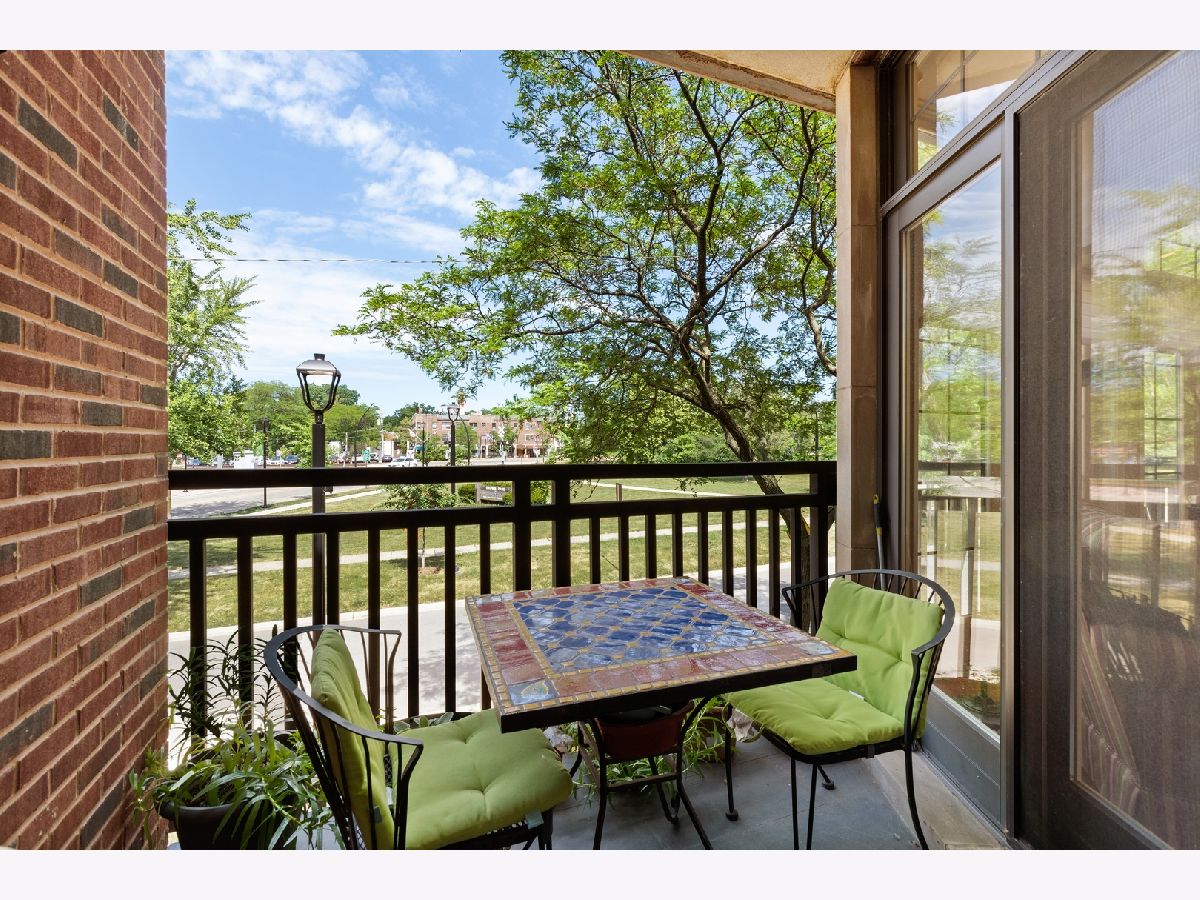 Sunlit and spacious corner condo features two bedrooms plus home office in the heart of the quaint and lively Ravinia business district. Enjoy your morning coffee or afternoon wine on your east-facing balcony overlooking Brown Park, easy distance to Ravinia Metra station, Farmer's Market, Jens Jensen Park. Fabulous room sizes, great flow with open floor plan, large windows throughout. Gourmet kitchen features stainless steel appliances, abundant counter space and cabinetry, huge pantry closet. Counter seating opens to dining room and large living room with fireplace and lovely views. Huge bedrooms, dreamy customized walk-in closet in primary bedroom, spacious primary bath as well. In-unit laundry plus customized pantry closet. Two parking spaces and additional storage in attached heated garage. Enjoy maintenance free lifestyle in perfect location with wonderful Ravinia restaurants and shopping right outside your door. Original owners have loved living here and are offering their beautifully maintained condo "As-is".