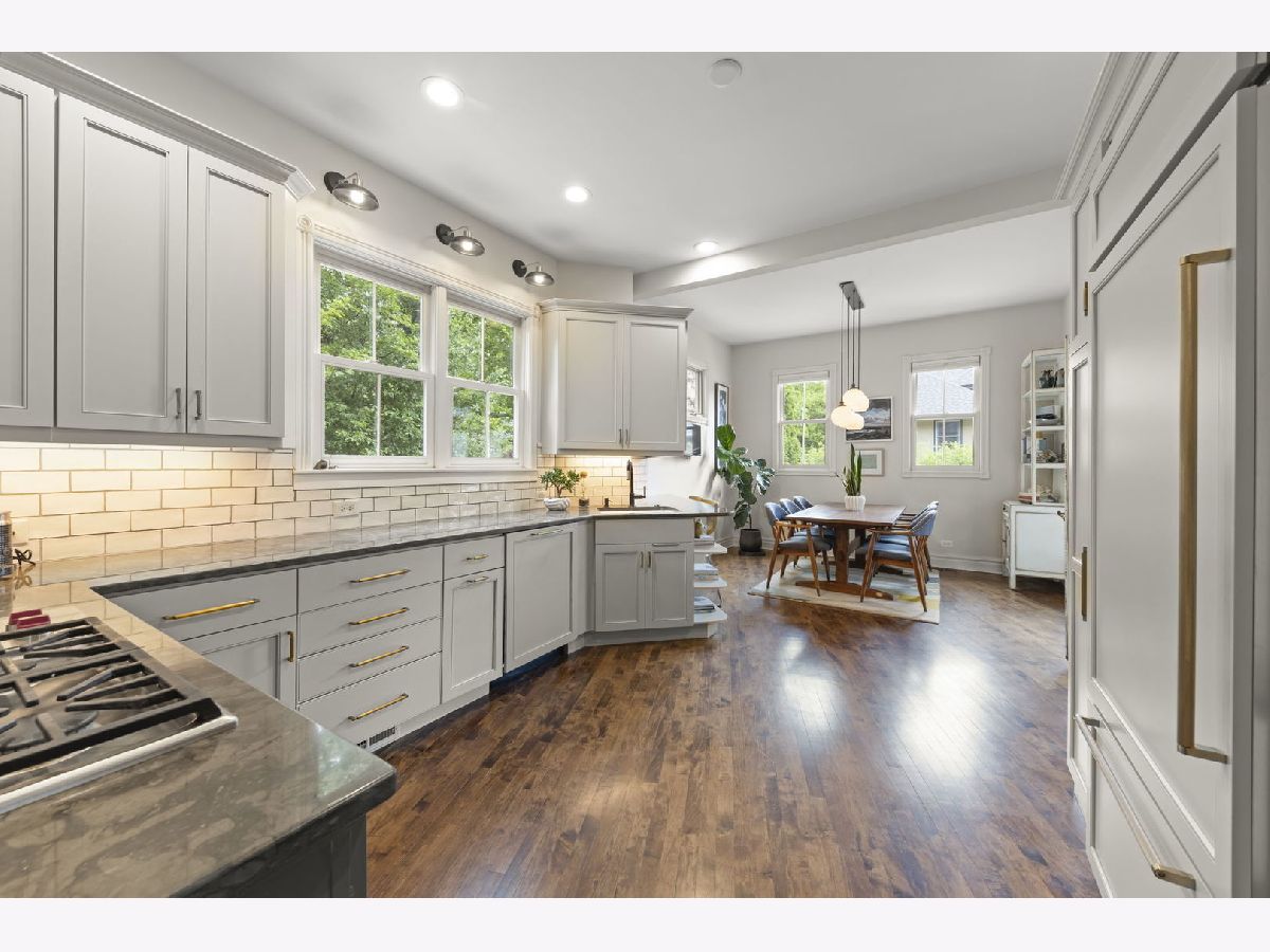 Glen Ellyn's Lake Ellyn Area! Architecturally spectacular with a sophisticated, upscale vibe this 4 bedroom, 3.2 bath is truly one-of-a-kind. Rehabbed, yet rich in historical details including period millwork, original transoms and doors, this home boasts 10 foot ceilings on main floor and 9 foot on the second floor. Its ideal location on tree-lined Forest Avenue is just steps to the heart of town, retail, dining and Metra train station and within walking distance to all schools. Approach the main entrance from the stone path with lush landscaping and gardens redesigned in 2019 by American Gardens. Enter the home from the front porch to the gallery style center foyer, updated in 2020, perfect for art display and rich with elegant detailing including new wall moldings and lighting. The formal living room, relaxed and welcoming, features an alcove of windows with baby grand tucked in place. Its original fireplace is now ornamental. 8 foot parlor doors separate the living room from the office. Opposite the living room is the formal dining room with pretty garden window and butler pantry segue to the kitchen. Updated in 2014 and again in 2021 the spacious kitchen with MCM vibe features a full suite of stainless appliances, newer cabinet fronts, limestone counters, designer lighting and a whimsical tile backsplash...all open to the large breakfast area with laundry room adjacent. Patio doors open to the three seasons room. The gracious family room is the perfect place to unwind with its fireplace, beautiful windows, lighting and built-ins. The second floor features a large primary suite with sitting alcove and two walk-in closets complete with organizers. The full bath, new in 2017, includes a double sink vanity, oversized shower, linen closet and patterned concrete tile flooring. Also included on the second floor is the open landing, bedroom en-suite with private bath, two additional bedrooms and hall bath. All three baths were totally renovated in 2017 and each bedroom has ample closet space not often found in vintage homes. The full basement with exterior access to the patio and yard is partially finished and includes rec room, exercise area and four large storage rooms which can be reimagined and finished. The lush, 86x140 ft lot, professionally landscaped with paver brick drive, brick patio and walks is the perfect haven for entertaining. Forest Glen Elementary, Hadley Jr High, Glenbard West HS. Welcome home! **Please see Additional Information in drop down for list of updates including EV Charging Station**