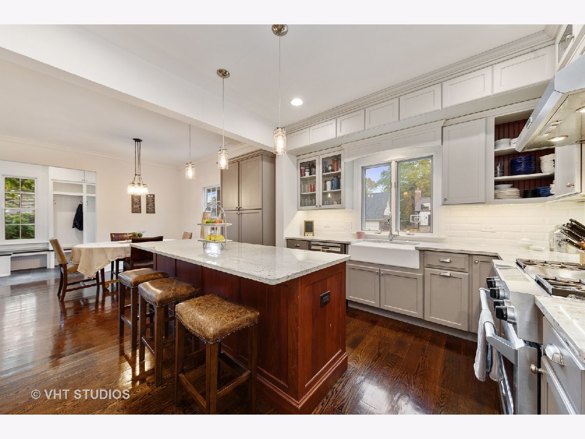 Amazing price for this beautiful center entry colonial siting on a park size, almost half acre lot with a short walk to the train. This coveted La Grange home has undergone a recent renovation that includes opening up the second floor, upgrading the bathrooms, completely gutting the kitchen, and adding a mud room. Spacious main floor consists of two story foyer, living and dining rooms, sun room, family room off the kitchen and mudroom to the driveway. Architectural highlights include high ceilings, stacked crown and chair molding, built in cabinetry, wood burning fireplace and casement doors and windows. Newer eat in kitchen is complete with breakfast nook, island seating, gray cabinetry, designer pendant lighting, beveled subway tile back splash and granite counters. Upstairs is the master suite, three additional large bedrooms, laundry room, bonus loft area, and updated hall bath with dual vanity. Outside, the oversized lot is professionally landscaped and offers the utmost in privacy. Potential for subdivision into a 50' buildable lot with the current home situated on a 86' lot. Survey available upon request. *Seller is a licensed agent*