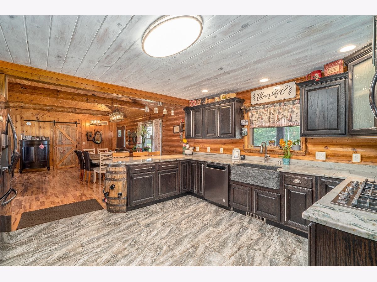 MULTIPLE OFFERS RECEIVED * WE ARE ASKING FOR HIGHEST AND BEST OFFERS BY 5:00 P.M. SUNDAY, MAY 2. Wake up every morning feeling like you're on vacation in your very own log home. This unique retreat is situated on 1.5 acres in the country, yet it's only minutes from Morris' dining and shopping. The current homeowners have completely renovated this 4 bedroom/3.1 bath beauty. The stacked stone surround, gas remote controlled fireplace and hand carved mantle create the perfect focal point as you enter through the door. Make note of the vaulted ceilings and exposed log beams in the main living area. The kitchen is an entertainer's dream with custom dark stained cabinets, high end black stainless steel appliances and gorgeous granite counter tops. Each bathroom has been updated. The hardwood floors have been refinished and new flooring has been installed in the rest of the main floor and basement. The finished basement includes a large family room, a fourth bedroom, full bath and an office. All windows and doors were replaced by current homeowner as well as the furnace, on-demand water heater, a/c, water softener, purification system and 2 sump pumps. This home was built for quiet weekends away from the hustle and bustle or hosting gatherings of family and friends. Enjoy morning coffee on the custom built deck with pergola, an evening of relaxing on the front porch or a campfire around the fire pit. A new asphalt driveway with additional parking will accommodate extra vehicles. This customized and well maintained home is one of a kind and a rare find.