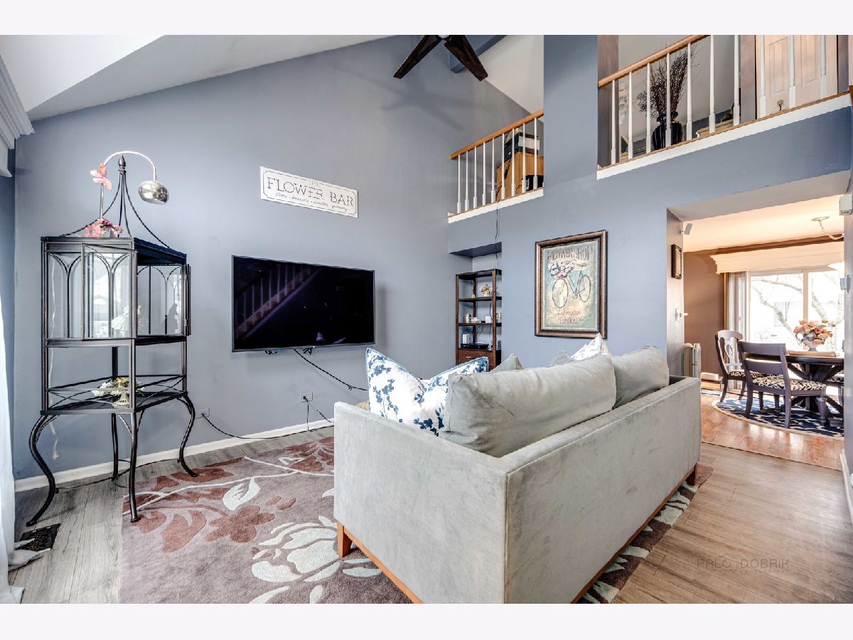 This beautiful townhouse is ready to move right in! Located in the desirable Westgate Subdivision it is only minutes away from major expressways. Two bedrooms and a loft. Soaring ceiling and newer wood laminate floor (2019) in living room. Spectacular kitchen with updated white cabinets and granite counters (2013). Center island makes for easy serving and prep space. High grade wood laminate flooring in the first floor kitchen and family room. Cozy fireplace in the family room off the kitchen. Newer sliding door to private deck and gorgeous garden area. Second floor is carpeted in bedrooms and loft area. Many possibilities for loft. Master bedroom has two closets with double rods and modern sliding door to shared bathroom. Unit has been painted in designer colors. (2019). AC/Furnace (2013), Roof (2011) All windows replaced (2015), Microwave (2022), 1st floor toilet (2022). Gurnee schools. Trees, shrubs and tulips bloom seasonally. Close to everything! Great value!