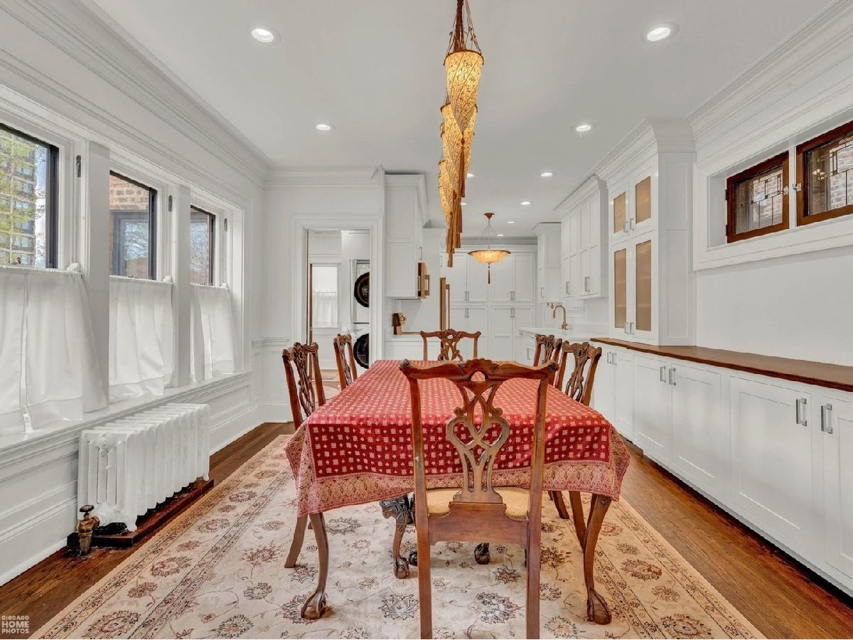 Classic South facing three bedroom, two bath apartment in a well-run well maintained cooperative building. Vintage features include a charming sunroom with casement windows, hardwood floors and a formal dining room with lovely art glass, built-in bookcases, and wainscoting, high ceilings and huge room sizes. The kitchen and bathrooms were meticulously updated in 2017. All electric appliances including the stove and dryer. 2nd bathroom features a convenient walk in shower. At the time recessed lighting was added, sound proofing was installed between the 2nd and 3rd floor units. In unit laundry. Just steps from the University of Chicago and both Lab Schools and located on one of Hyde Park's most favored blocks. Ray School District. Light fixtures in the kitchen and dining room are excluded.