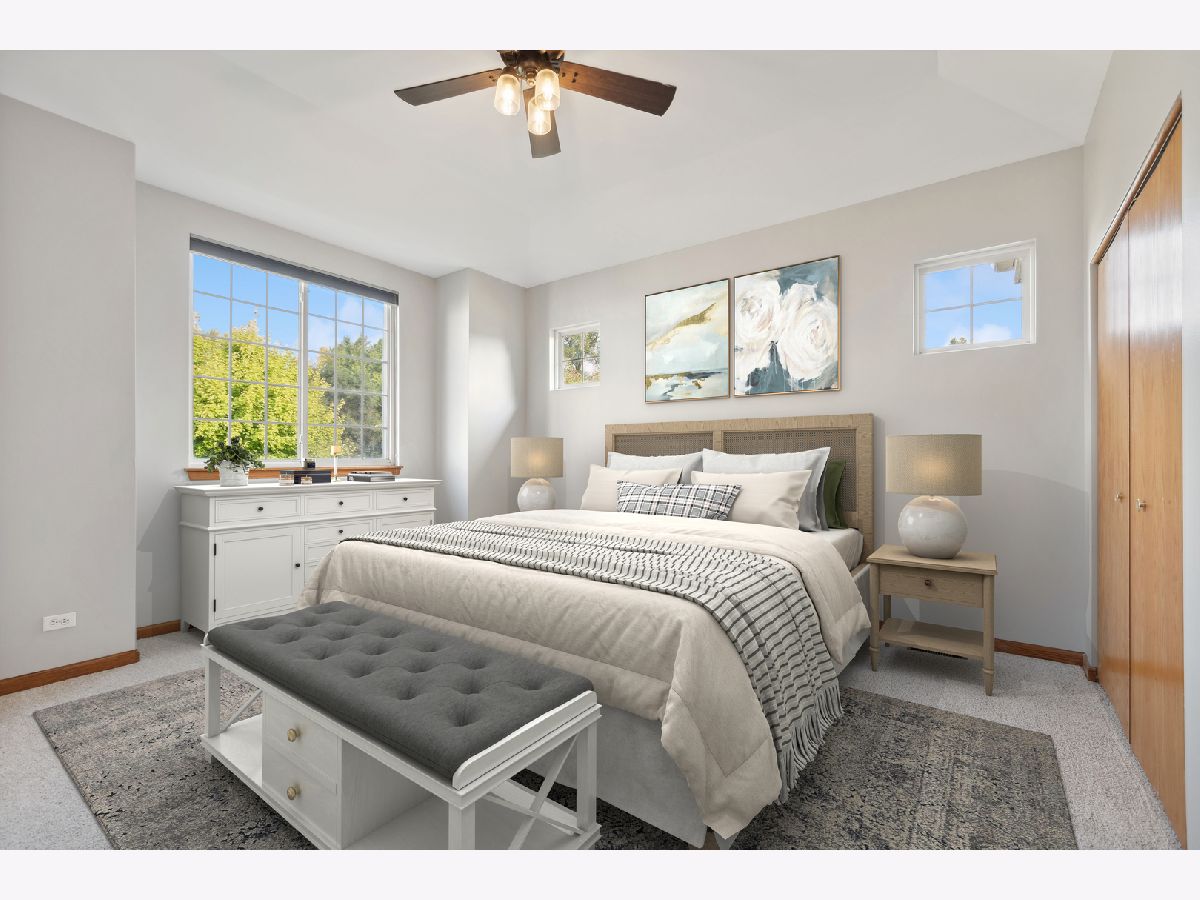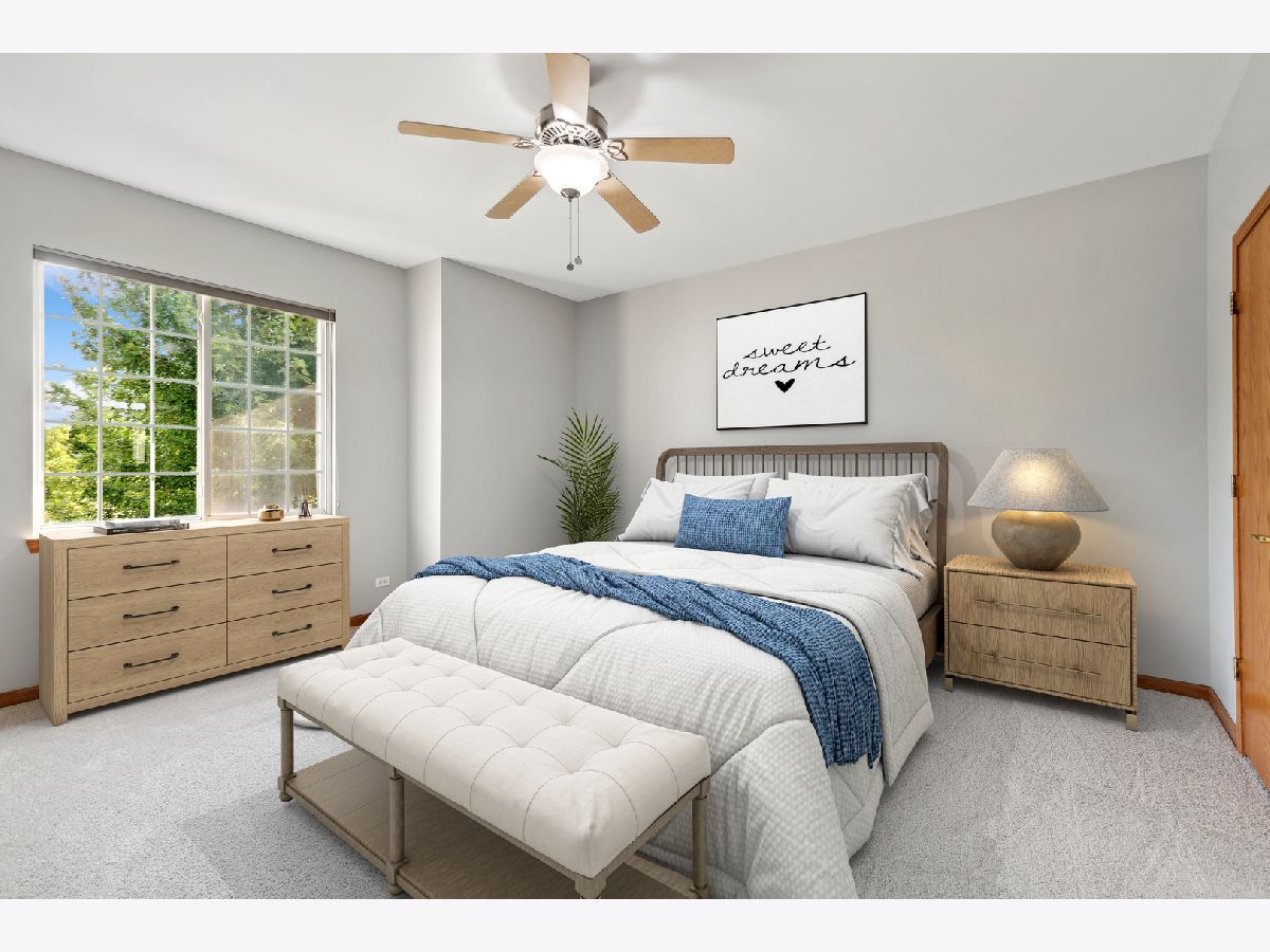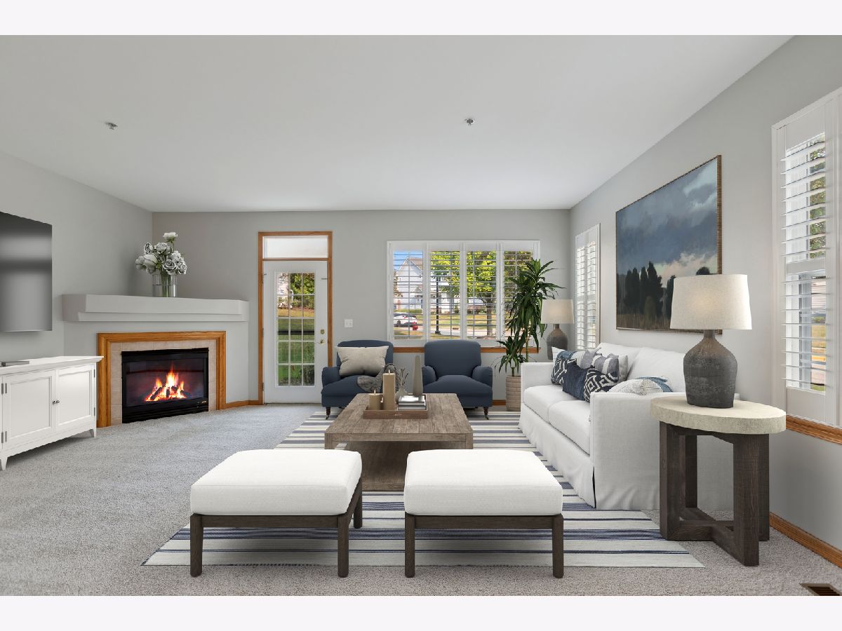 Your Happily Ever After starts right here! Welcome to this incredible home that is sure to impress from the moment you arrive. Upon entering, instantly notice all of the sunlight streaming in and welcoming you inside. A freshly painted interior with brand new carpet- there is nothing for you to do besides move right in! 9' ceilings throughout and gorgeous plantation shutters on the main level create a bright and open layout with a timeless aesthetic appeal. The sprawling family room features a fireplace and a door leading out to your private patio, seamlessly blending indoor and outdoor living spaces. Enjoy grilling or sipping your morning coffee here. The kitchen boasts rich hardwood floors, stainless steel appliances and an abundance of cabinets. The connected dining room also has hardwood floors and overlooks the lush front yard. Completing the first floor is a half bath, laundry closet and large storage space. Next, make your way upstairs to find the exceptional primary bedroom with a vaulted ceiling, large walk-in closet, additional closet and private en suite bathroom with dual vanities. The 2nd bedroom is equally impressive and also functions as a primary suite with its' own bathroom and large walk-in closet as well. Plus, there is a cozy loft for even more living space. 2 car garage and TONS of updates, including: new roof, carpet, dishwasher, microwave, stove, shutters & blinds, newer HVAC, dryer, washing machine, water heater, reverse osmosis system, water softener, app/wifi enabled garage door opener and more! WOW! Located in the highly sought after Holiday Park, a nature-centric neighborhood that will make every day feel like you are on vacation! Enjoy the private beach and glistening shores of Wooster Lake, winding streetscapes, various walking paths, park, gazebo and BBQ grills. Truly a REMARKABLE area with a peaceful setting that is still close to modern amenities and thoroughfares. Perfect proximity to endless shopping, dining, entertainment, golf, the Metra, you name it! Make this DREAM home yours and indulge in the lifestyle you deserve!