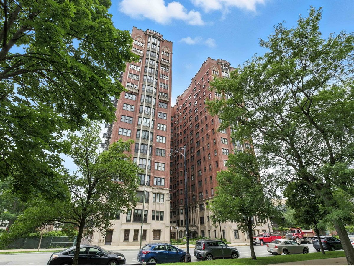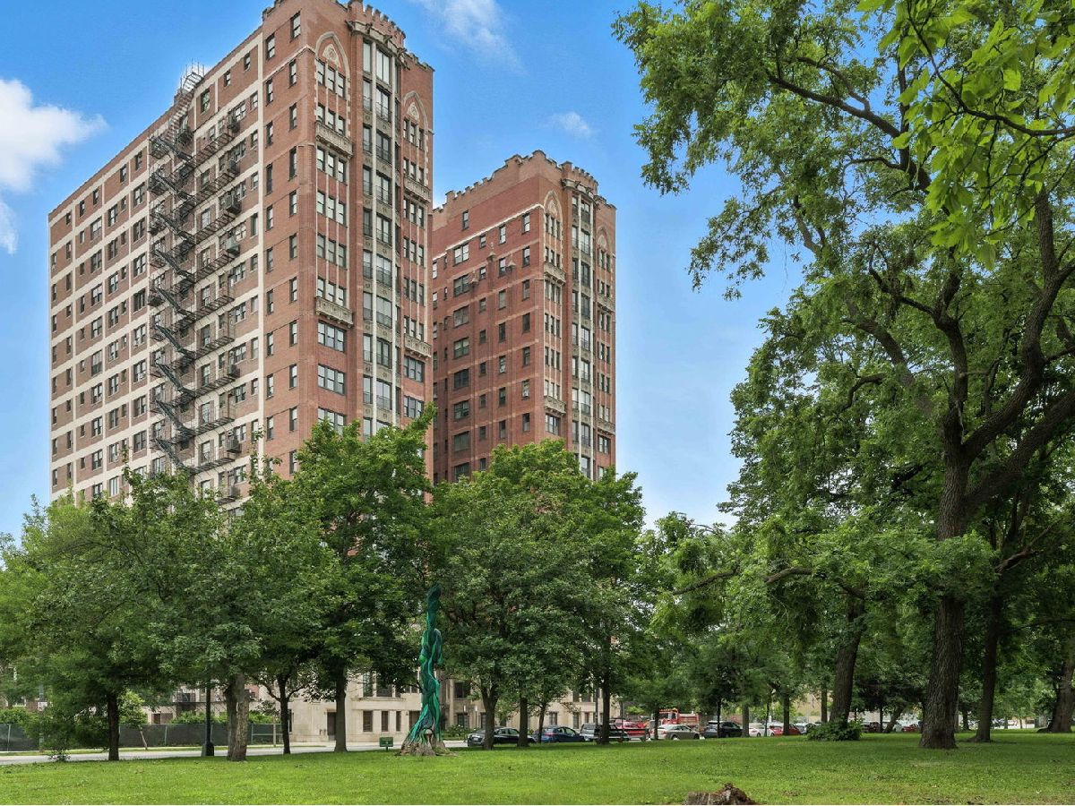 This updated 2 bedroom 2 bathroom unit in the sought after Vista Homes building, features stunning north facing views from the dining room, kitchen and primary bedroom. Wonderfully rehabbed kitchen, featuring soft close cabinets and pull out shelving in some cabinets, retiled bathrooms with a wonderful walk in shower in the primary, refinished flooring, stackable washer/dryer has been added in the unit. Tons of natural sunlight floods in from the beautiful newer windows.1 space in the main level of the heated garage is included.3 portable air conditioners stay with the unit, the board will allow central air conditioning but the current owners did not feel the need to add it. Full service doorman and on site staff. The common amenities include receiving room for deliveries, bike room, exercise room, storage, playground, and BBQ area and opportunity to have a garden plot of your own or to share. Steps to Frederick Law Olmsted's Jackson Park home of the Obama center: Wooded Island, Japanese Gardens, Yoko Ono's sculpture, "Sky Landing"..