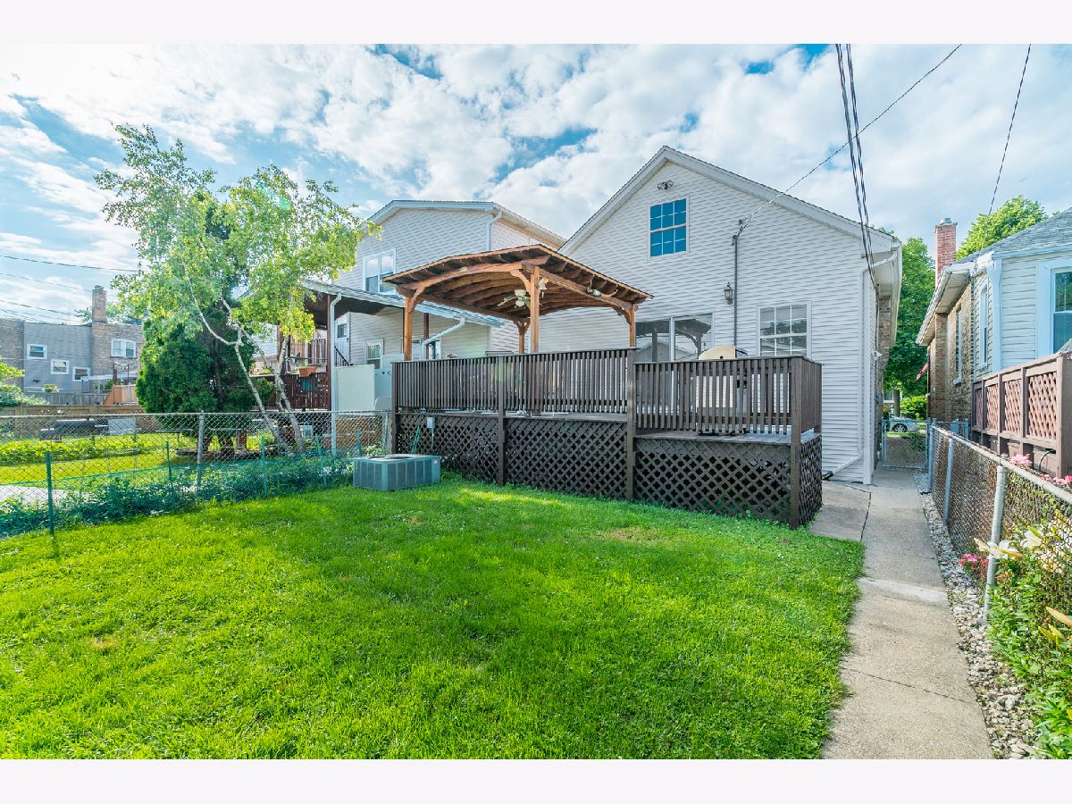 Classic Chicago brick bungalow in excellent condition inside and out. 1st floor includes a living/dining room, 2 bedrooms, a full bath, and a kitchen with table space. Hardwood floors throughout the 1st floor. Full finished basement with a bath and additional rooms. Central heat and A/C. Beautiful wooden deck with a roof, 2 car garage. Close to CTA and Metra.