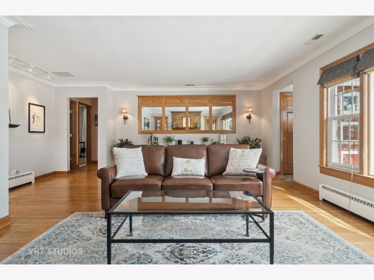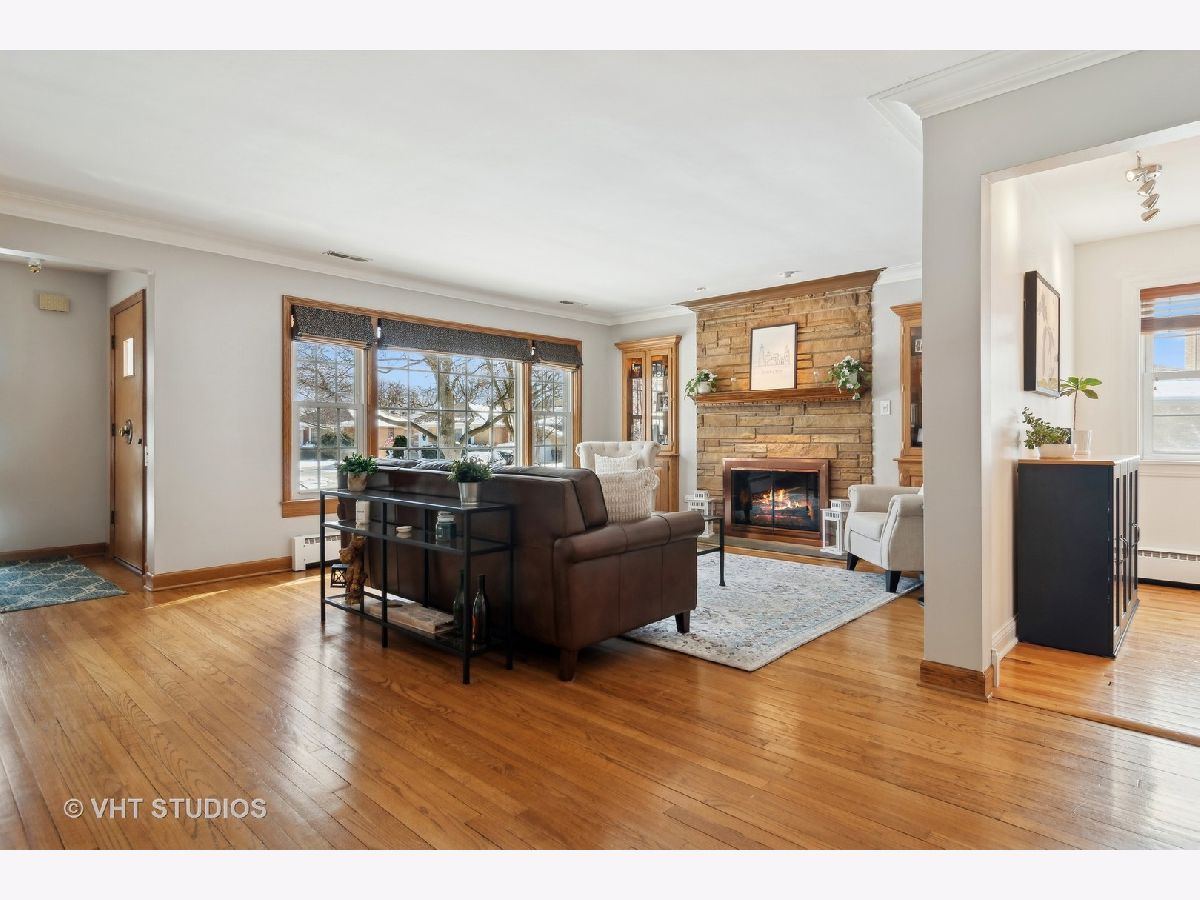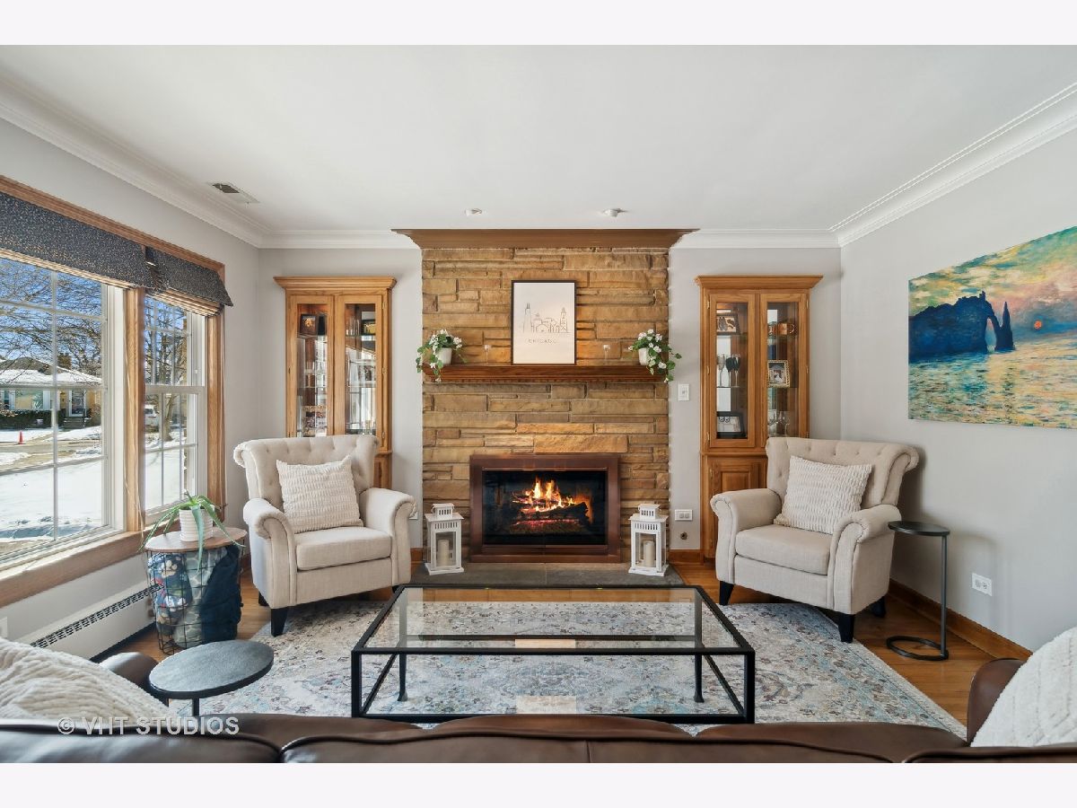 You will know how special this home is the minute you walk in and feel the natural light pouring in through the over-sized windows. The cozy living room features a gas fireplace with custom built in cabinetry and is perfect for entertaining. Gleaming hardwood floors throughout the entire main level offer a warm and inviting space. The generous family room is adjacent to the kitchen and features 10' ceilings, heated floors and 2 walls of windows overlooking the expansive yard - plenty of space to build the backyard oasis of your dreams. In the fully finished basement you'll find an expansive recreation room with plenty of space to spread out and enjoy with a second fireplace, wet bar, 4th bedroom, office, full bath, laundry and a full second kitchen. Plenty of additional storage can also be found on this level. An over-sized side drive and a two car brick garage provide for ample parking. Enjoy the bike and walking paths in the adjacent forest preserves.