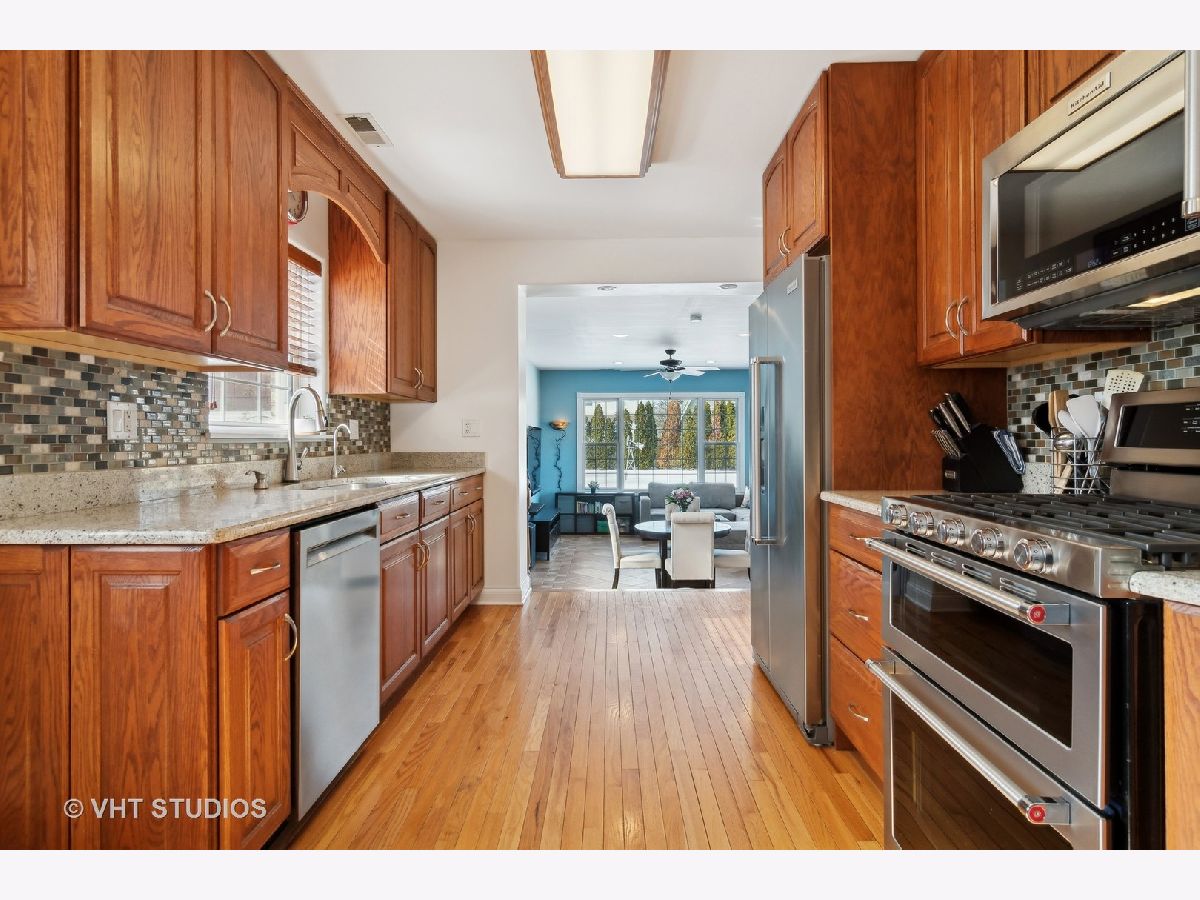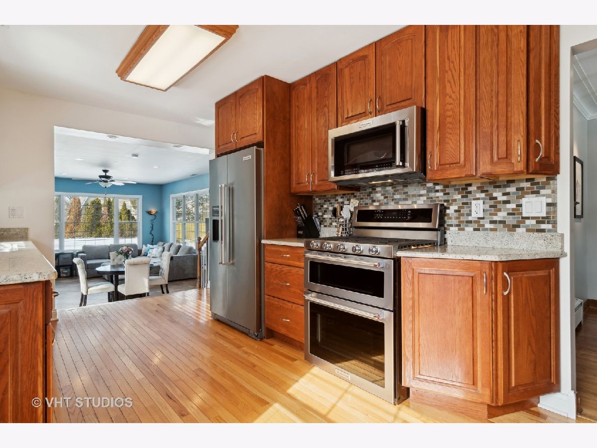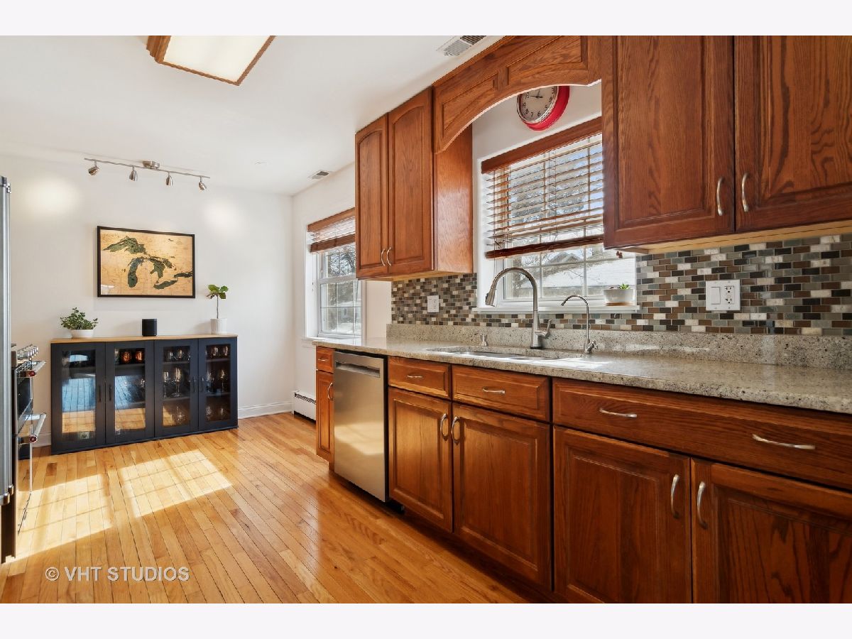 You will know how special this home is the minute you walk in and feel the natural light pouring in through the over-sized windows. The cozy living room features a gas fireplace with custom built in cabinetry and is perfect for entertaining. Gleaming hardwood floors throughout the entire main level offer a warm and inviting space. The generous family room is adjacent to the kitchen and features 10' ceilings, heated floors and 2 walls of windows overlooking the expansive yard - plenty of space to build the backyard oasis of your dreams. In the fully finished basement you'll find an expansive recreation room with plenty of space to spread out and enjoy with a second fireplace, wet bar, 4th bedroom, office, full bath, laundry and a full second kitchen. Plenty of additional storage can also be found on this level. An over-sized side drive and a two car brick garage provide for ample parking. Enjoy the bike and walking paths in the adjacent forest preserves.