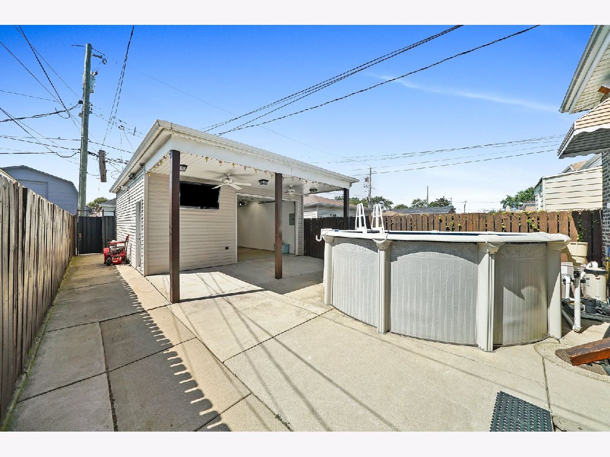 BEAUTIFUL CHICAGO BRICK BUNGALOW IS READY FOR OCCUPANCY! GUTTED TO THE STUDS IN 2000, HIGH-EFFICIENCY INSULATION WAS INSTALLED THROUGHOUT THE EXTERIOR WALLS, CREATING THE COZY FEELING OF HOME. NEW ELECTRIC SERVICE, PLUMBING, AND 70 GAL WATER HEATER. NEWER ROOF (3 YRS), WINDOWS (10 YRS), TUCKPOINTING, STEEL/WOODEN EXTERIOR DOORS, AND GARAGE HEATER. THIS GORGEOUS GIANT WELCOMES THE GUESTS TO SPACIOUS AND FORMAL LIVING AND DINING ROOM AREAS, WITH SURROUND SOUND, AND RICH HARDWOOD FLOORING, AND A FULL BATH WITH JACUZZI TUB. KITCHEN BOASTS ELEGANT WHITE SHAKER CABINETS, NEWER APPLIANCES, QUARTZ COUNTERTOPS, AND LIGHTING FIXTURES. 2ND FLOOR MASTER BEDROOM WITH SITTING AREA ARE PLEASANTLY VAST. FULL FINISHED WALKOUT BASEMENT GREETS THE EXTENDED FAMILY WITH IN-LAW ARRANGEMENT AND TONS OF CLOSET/STORAGE ROOM. THE MOOD ONLY GETS BETTER WITH THE SIZABLE PRIVATE YARD WITH HEATED POOL, COVERED CEMENT PATIO WITH OUTSIDE ENTERTAINMENT AND CEILING FANS. THE ENORMOUS 14' GARAGE FEATURES TWO SERVICE DOORS, 4 CEILING FANS, INSULATED AND HEATED, WITH A SERVICE WORKING SINK FOR THOSE WORK-AT-HOME AUTO MECHANICS. LOCATED ACROSS THE STREET FROM TONTI ELEMENTARY, AND WALKING DISTANCE TO PUBLIC TRANSPORTATION, STOREFRONTS, AND RESTAURANTS. CALL TODAY BEFORE IT'S TOO LATE.