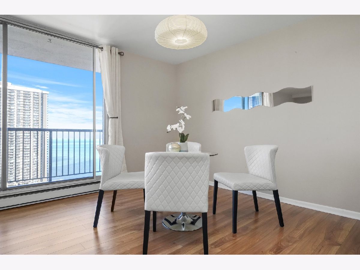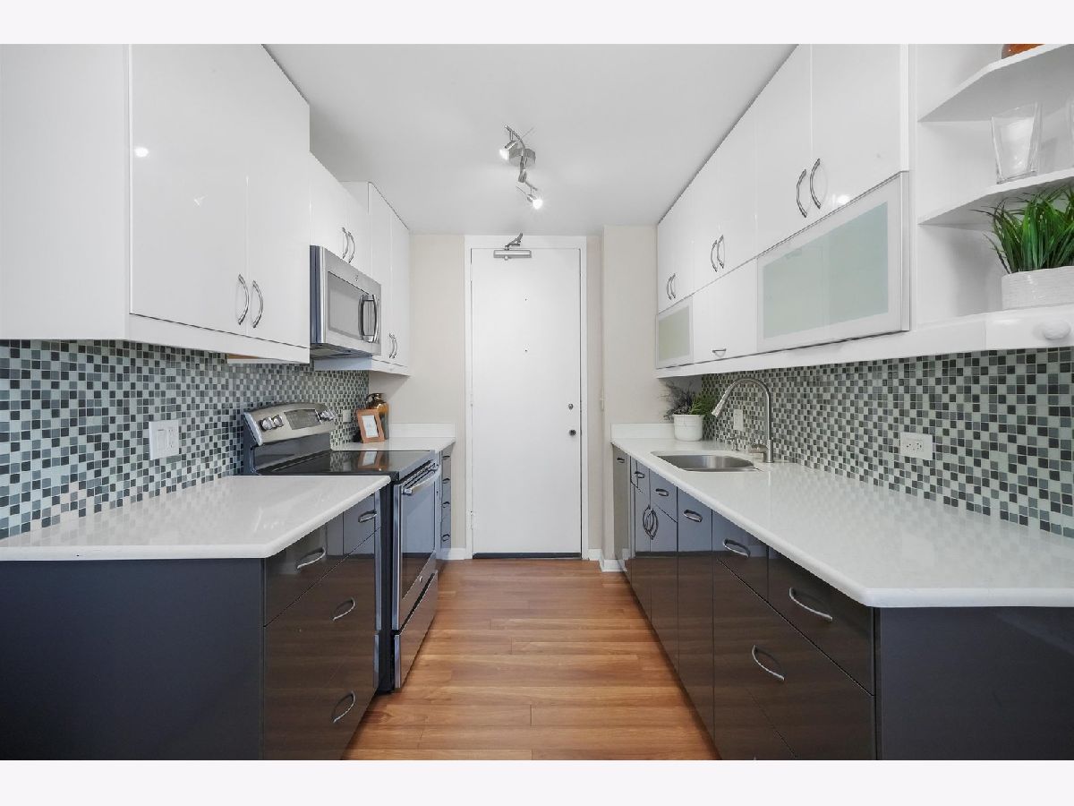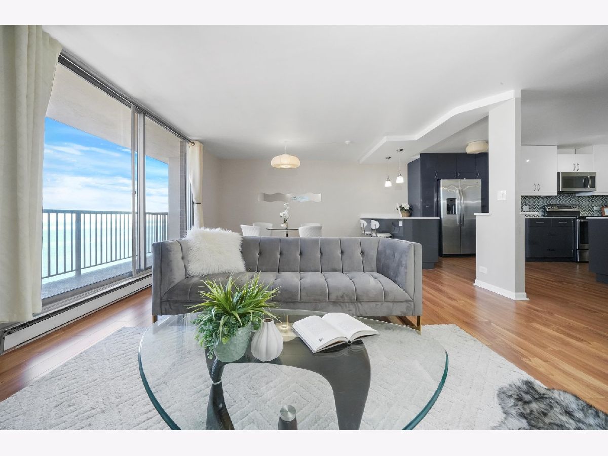 Stunning 1600 sqft corner unit with wrap around views at Thorndale Beach South! This spacious 2Bed/2Bath features 3 balconies with breathtaking Lake views and closets galore! Updated kitchen has custom cabinetry with panel-ready dishwasher, quartz countertops & custom backsplash. Retreat to your large primary suite with balcony access and ensuite bath featuring Jacuzzi tub and towel warmer. 2nd bedroom is very generous in size and has nook which can be used as a home office or a walk-in closet. BRAND NEW hot water heater!! Easy in/out garage parking located on 1st floor included in price! Full amenity building includes 24 hr. door person, outdoor pool & patio, hospitality room, and fitness center. Prime location right off the lake, Hollywood Beach, dining, shopping, several grocery stores, CTA Redline & Buses! Take a 3D Tour, CLICK on the 3D BUTTON & Walk Around. Watch a Custom Drone Video Tour, Click on Video Button!