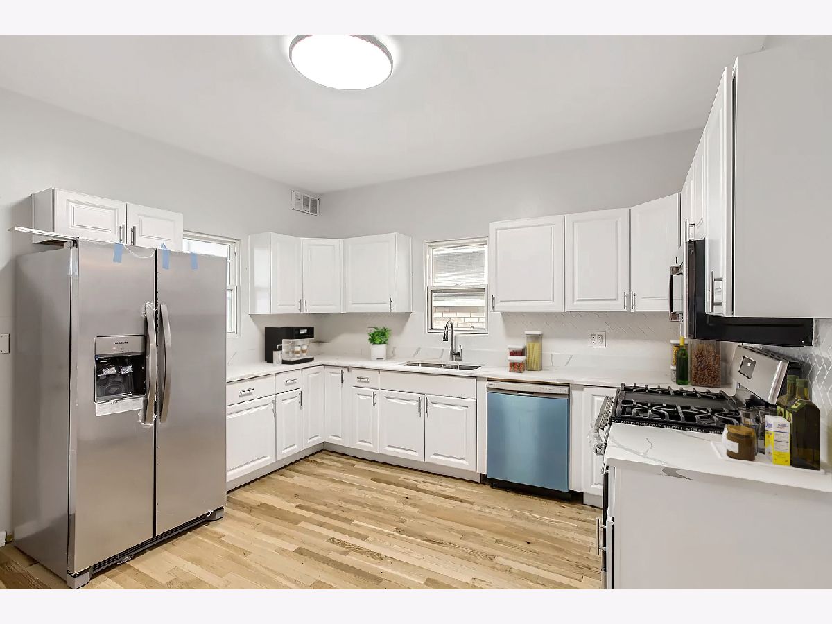 Turnkey newly rehabbed 2 unit in Portage Park! Central AC, beautiful modern finishes and decor throughout, new stainless steel appliances, in unit laundry in both units, stunning quartz kitchens/bathrooms and spacious floor plans. Upper unit rented $1575 and larger lower unit is vacant for your client to rent out or live in. Great for house hackers and investors! FHA friendly.