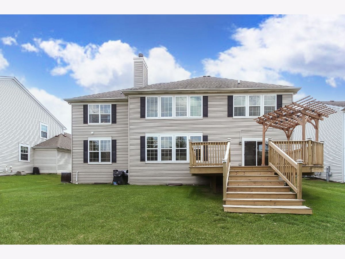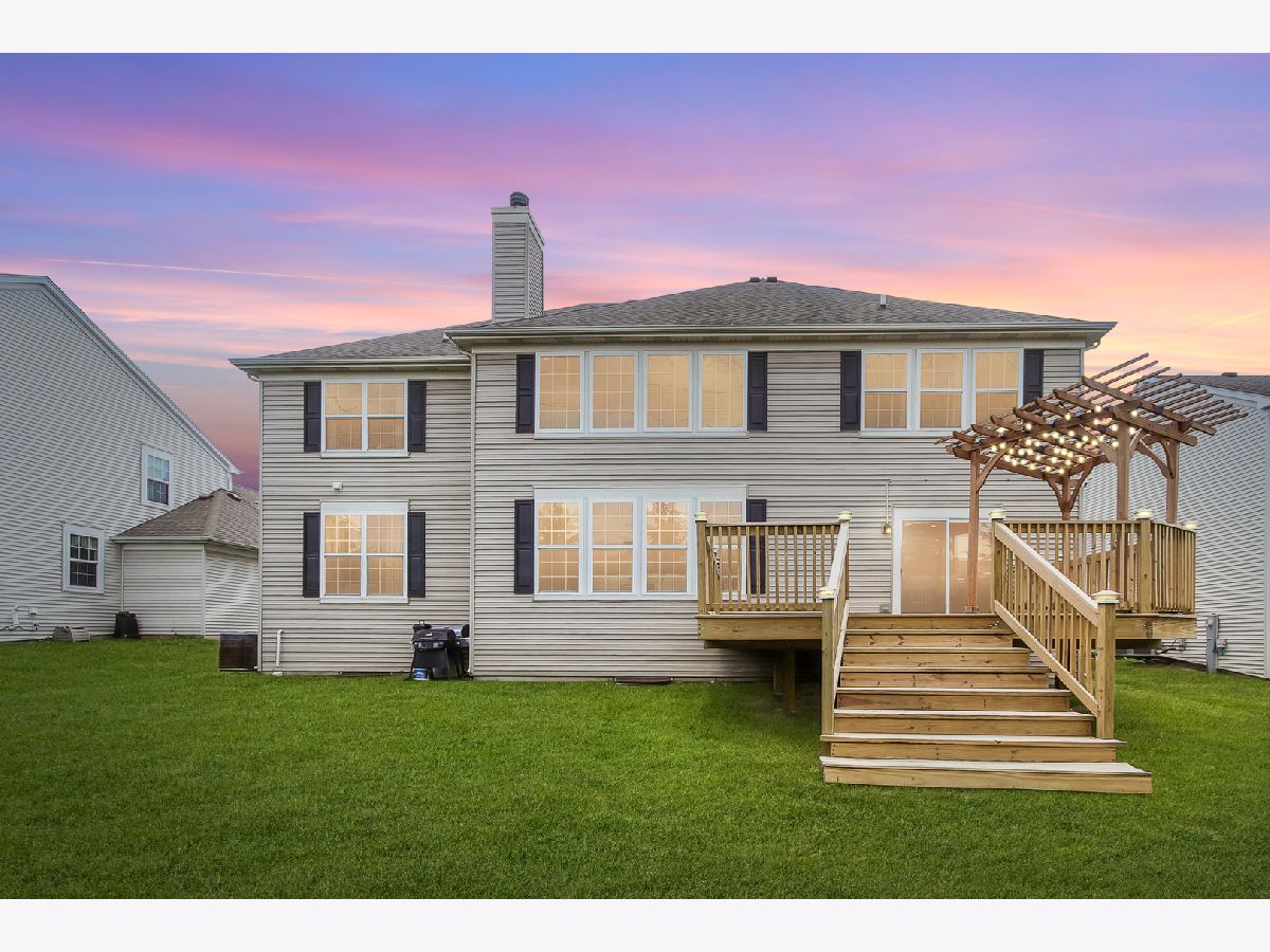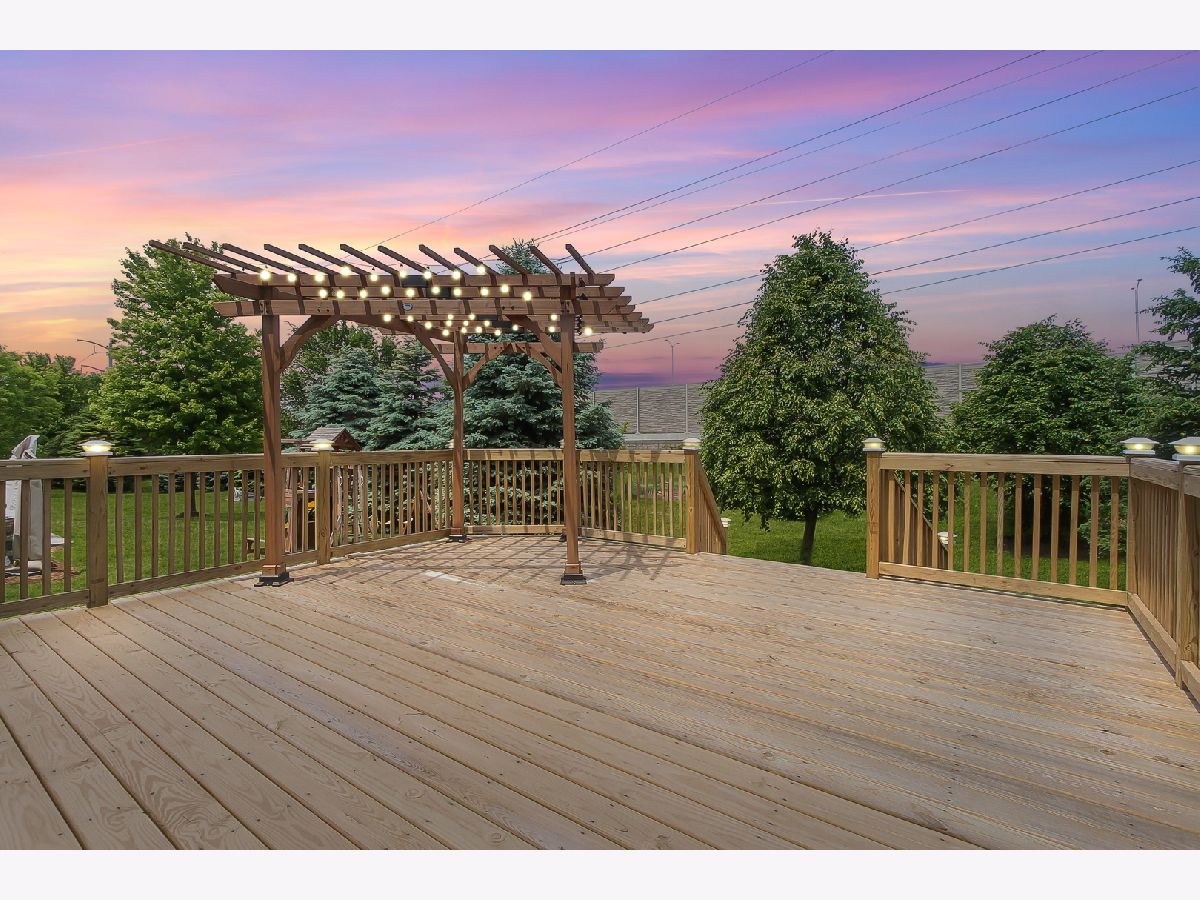 This is 5864 Betty Gloyd Drive Hoffman Estates, IL, a contemporary, executive home located in the Beacon Pointe community, built in 2007. The exceptional Nottingham model, with a fully finished basement, is approximately 6158 square feet of living space and showcases 5 generously sized bedrooms, including a princess suite, and a fireplace with a gas starter located in the family room, 3 garages, and a fully finished basement, all on approximately a little over a quarter acre of property, featuring an oversized deck and lit pergola added just last year. THE FIRST LEVEL features cathedral/ vaulted ceilings. The 15x14 foot kitchen features stainless steel appliances, with a newer dishwasher, a substantial breakfast bar, a 17X10 breakfast room, and a 6x8 1st-floor laundry with a laundry sink. 14X10 Den/Guestroom and a full bathroom. THE 2ND LEVEL of the home is accessed from the foyer by a dual staircase that leads to a spacious loft area and will bring you conveniently back to the kitchen area. ON THE 2nd LEVEL of this home, you will find the 18X16 feet Owner's suite that has 15 X12 of the walk-in closet-dressing area; an on-suite spa with a separate shower, whirlpool tub, and double sinks. There are three other bedrooms including the prince or princess suite. THE FINISHED BASEMENT is all you could ask for. The massive party room includes a dance floor, a dry bar with a wine refrigerator, and a full 2nd kitchen. A 5th bedroom could be your home office, plus a full bathroom, making it a possible in-law arrangement. Wait until you see the never-ending storage. This home has zoned climate control for efficiency and comfort with recent fresh paint.