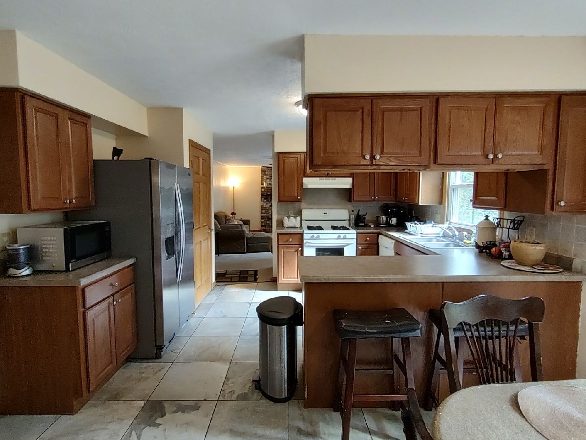 This 4 BR, 2 1/2 bath 2 story home awaits. Partial brick front. Covered front porch cute to decorate for the changing seasons. It's spacious and offers a formal dining room with a pocket door and new flooring. French doors lead into the formal living room with a built-in bookcase wall. The family room has a wood burning fireplace to enjoy for the holidays. Fireplace was professionally cleaned last season. The kitchen opens to a bayed eating area, has a pantry closet, room fortwo stools at counter, and all appliances stay. Main floor laundry room (handy for pets and muddy shoes to come and go from) is off the kitchen and has cabinets, a large closet, and garage entrance. The oversized garage has extra space bumped out to store the lawn equipment and stuff without crowding car parking. A wide staircase leads to the upper level with 4 true BRs, 2 full baths; one being the private master bathroom with a large 10 x 7 walk-in closet. Partially finished lower level also has a utility room with storage and shelving. While the home could use some freshening up, it offers great space! The spacious fenced back yard has a deck and a flowering vine on the pergola over the brick paver patio. Perennials throughout the yard, including an apple tree. A tree was removed in the front so that's why it's a bit tore up currently. County taxes! Taxes do not reflect any exemptions. New roof, siding and water heater 2023. Garage door and opener replaced 4 years ago. A/C replaced 2022. Short distance to OSF Saint Anthony Medical Center, Midway Village Museum, Guilford County Forest Preserve, shopping, restaurants, and more!