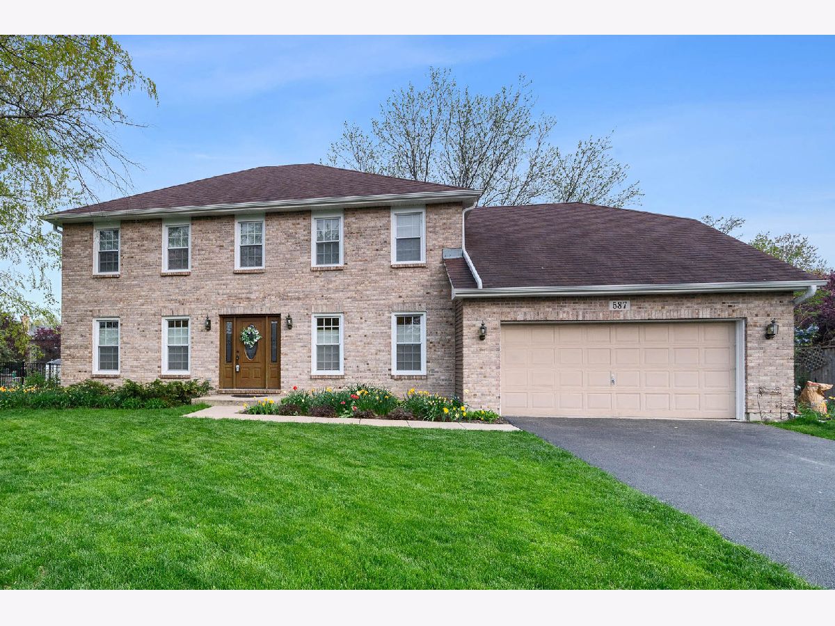 When you pull up to 587 Bovidae you'll immediately feel right at home. Just 10 minutes from downtown Naperville, this beautiful brick Georgian style home sits on an oversize lot of land in the beautiful Westglen subdivision. This 4 bedroom 2 and a half bath home with a finished basement is perfect for entertaining in style with open concept living and a beautiful kitchen. This extremely well maintained and clean home features a beautiful fireplace for cozy fall and winter evenings. Enjoy the remodeled master en-suite with an oversized shower and double sink with beautiful new skylights. In the spring, summer, and fall you will have the pleasure of taking advantage of roughly a half acre of the impeccably maintained backyard. Enjoy all of the wonderful interior and exterior upgrades that 587 Bovidae Circle presents. (Remodeled hall bath, new skylights that are remote control equipped with rain sensors, new sliding door with built in blinds, new siding) **Multiple offers. Highest and best due by Sunday May 22nd at 7pm**