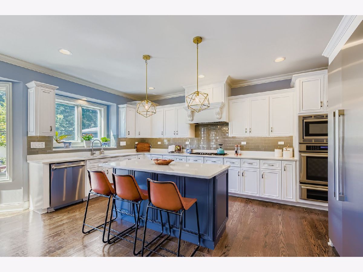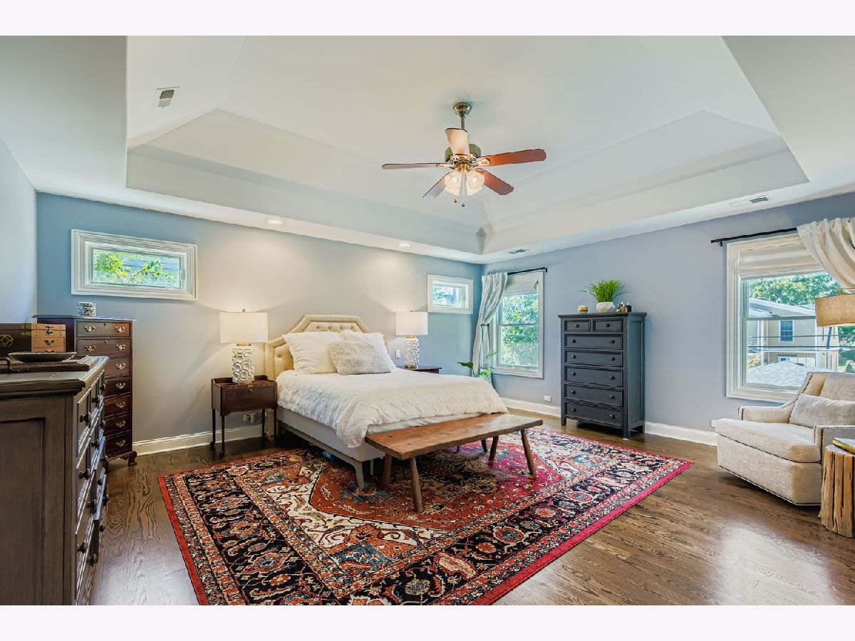 Set in one of Elmhurst's most desirable neighborhoods near the Prairie Path, Pioneer Park, and the Spring Road, Vallette and York business districts, this 5 bedroom, 4.5 bath home offers the perfect blend of space, comfort, and convenience all in a modern newer home. Just blocks from Lincoln Elementary, Elija's Coffee, Riley's Pub as well, it's perfectly situated for ideal suburban life with great walkability! Inside, the home impresses immediately with tall ceilings, rich hardwood floors, and timeless millwork. The floor plan is designed for today's lifestyle: a formal living and dining area connect seamlessly to a chef-inspired kitchen with quartz countertops, stainless steel appliances, a butler's pantry, and a walk-in pantry. The oversized family room w/coffered ceilings flows into the backyard, creating an inviting hub for gatherings. Upstairs, four generously sized bedrooms each feature walk-in closets, including a large guest suite with their own private bath. The primary suite is a true retreat with dual closets, spa-like bath with jetted tub, oversized shower, and double vanities. Convenient second-floor laundry adds practicality. The finished basement expands your living options with a huge recreation room, home gym, private office/guest suite with a beautifully integrated Murphy bed, and a full bath-perfect for entertaining and guests. Outdoors, enjoy a picturesque fenced yard with expanded paver patio, built-in firepit, professional landscaping, low-voltage lighting and an enormous sun shade umbrella-ready for summer bbq's and backyard fun. Meticulously maintained and move-in ready, this home includes thoughtful upgrades like a whole-house water filter, EV charger, insulated walls, and an epoxied garage floor. Truly a rare find offering size, style, and location in one complete package.