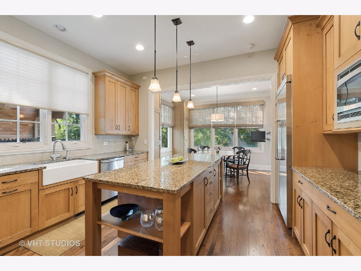 Picture perfect 3 bedroom, 2 1/2 bath ranch home backing up to Northmoor Country Club. Charming covered front porch with bluestone and skylight welcomes you. Open floor plan with hardwood floors and high ceilings throughout. Large foyer leads to spacious sunlit great room with limestone fireplace, custom built-ins and French doors opening to rear patio and yard. Custom kitchen complete with wood cabinetry, granite counters, professional stainless steel appliances, Kohler white ceramic farmhouse sink and large center island. Separate eat-in area with built-in cabinetry, wall of windows and door leading out to patio. Formal dining room perfect for entertaining with an organized butler's pantry. Private primary bedroom suite with sitting area, French door access to patio and 2 walk-in custom built cabinetry closets. Marble primary bath with double sinks, Whirlpool tub, large shower with bench and commode closet. Two additional bedrooms, one with coffered ceiling and fireplace currently being used as office, share updated hall bath. Huge unfinished basement the size of entire upper level has amazing potential. Two car attached garage plus additional golf cart garage. Beautiful professionally landscaped yard with view of Northmoor Country Club golf course.