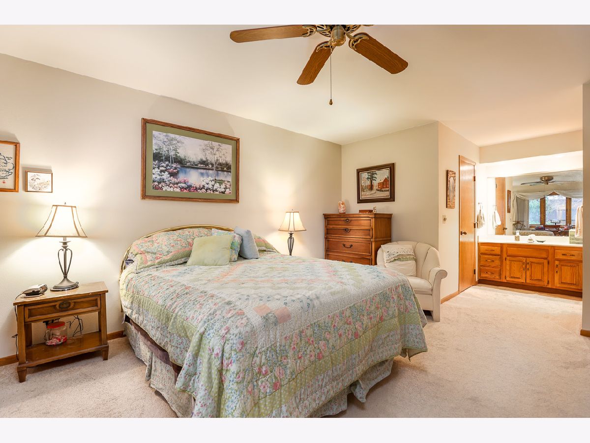 Highly desirable Bellflower condo association! Buy the best location in town! This ranch condo features large eat in kitchen with a big window to look out front, formal dining area, big living room with floor to ceiling brick fireplace, and glass doors to a deck with a private back yard! Downstairs there is a rec room and another bedroom! There's a first floor laundry and 2 car attached garage! Plenty of room! Furnace & roof 10', disposal & HWH 22', Water softener did work but has not been used so it's AS IS, Room sizes approximate, Property sold to settle estate, AS-IS condition.