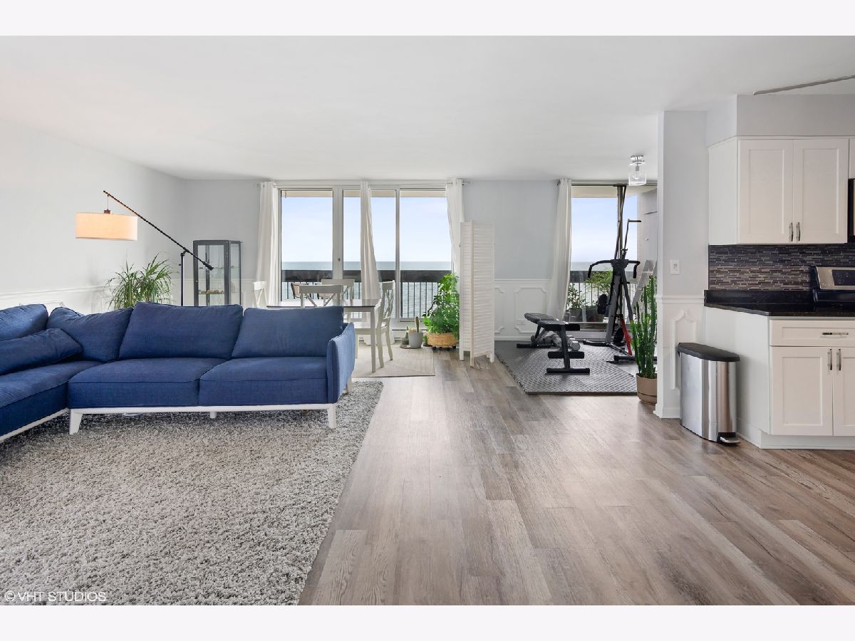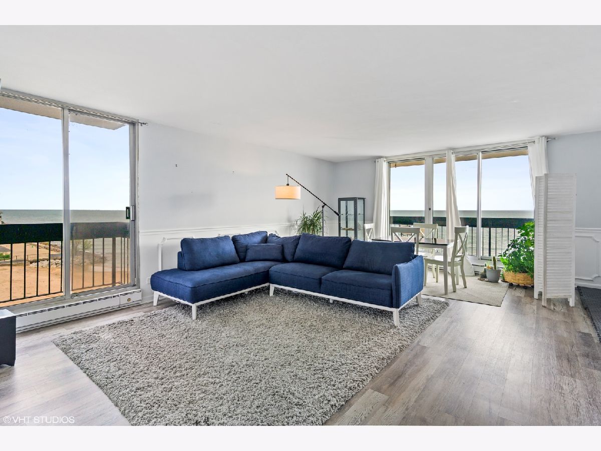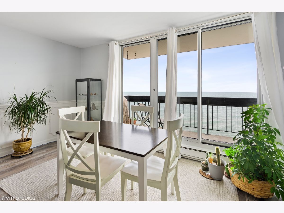 This is a stunning, east facing end-unit condo with a gorgeous LAKE VIEWS from every window! This 2 bedroom, 2 bath condo was recently updated and includes floor to ceiling lake views from the living areas and the bedrooms. The spacious living room is large enough for the entire family and the 2 oversized balconies, facing east and north, provide additional entertaining space. There are upgraded floors throughout the living space and the bedrooms. The kitchen has stainless steel appliances, granite countertops and backsplash. Plenty of storage throughout this generously sized condo with storage off of both main balconies too. Also included is a large storage unit on first floor. One covered garage parking space is included. New furnace from 2019. Thorndale Beach North building has everything - great amenities like a door person, outdoor pool, laundry room, party room, library, outdoor beach, children's park, patio area, guest parking, and much more! Steps from Parks, beach, restaurants, entertainment, shopping and bus stop. Walk to the Thorndale red line or the many buses along Lake Shore Drive.
