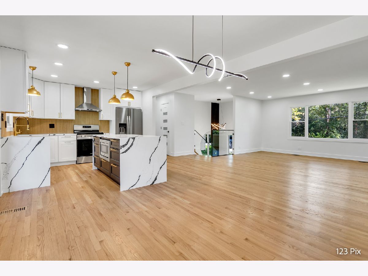 Beautifully remodeled, trendy designed 5 bedroom 2 bath home, over 2500 SF, located on very private and quiet street. Brand new kitchen with quartz countertops, SS appliances and vented hood. New furnace, water heater and AC unit, 2 car attached garage with new epoxy floors and garage doors. 90x151 wonderful back and front yard with mature trees, new deck in the back of the home; new roof, windows, hardwood floors, interior and exterior doors, specious and inviting fully finished lower level with family room, wet bar, 2 bedrooms and full bath, walking distance to Hillcrest Elementary School.