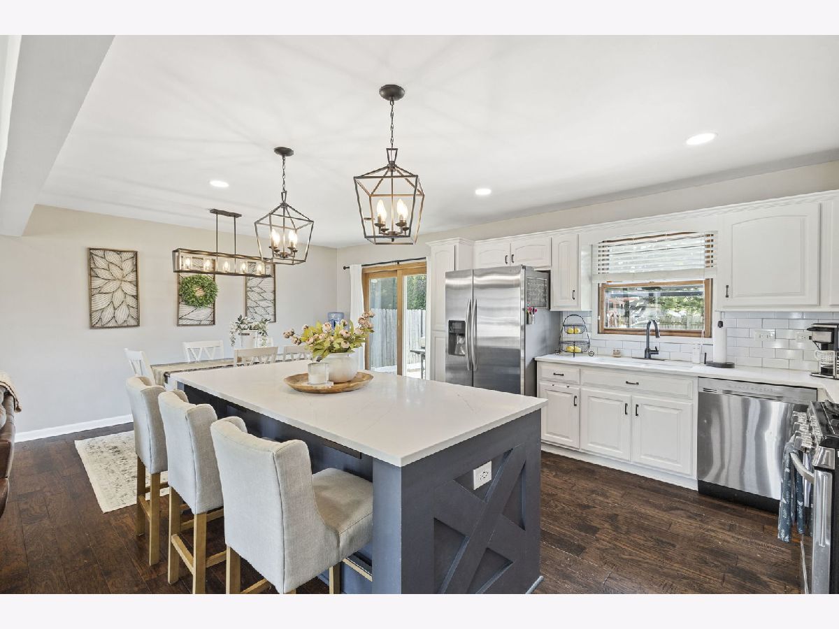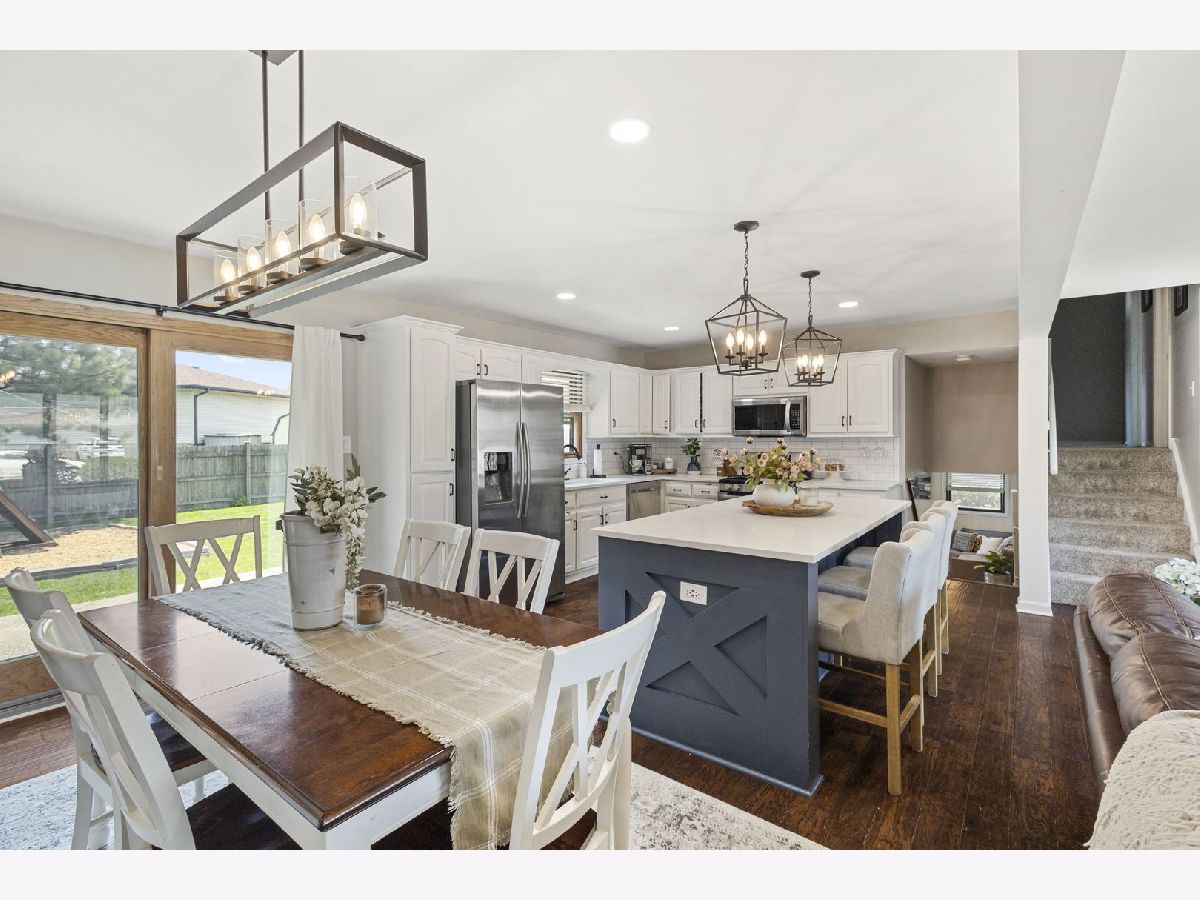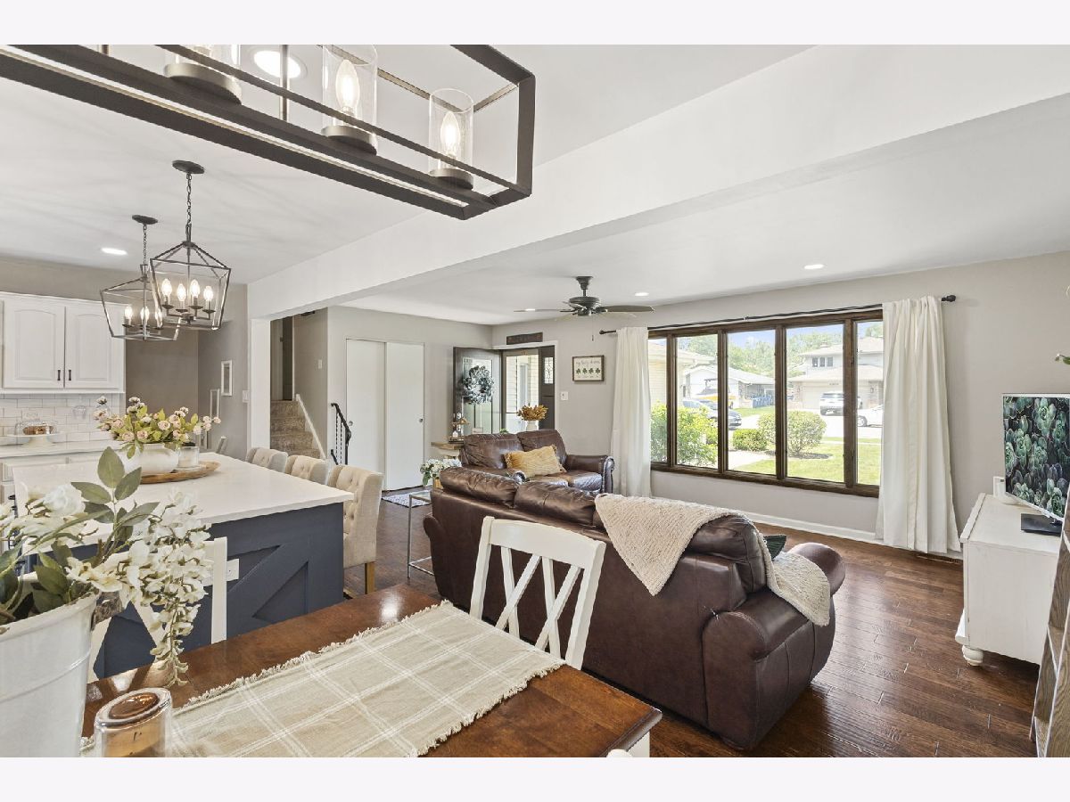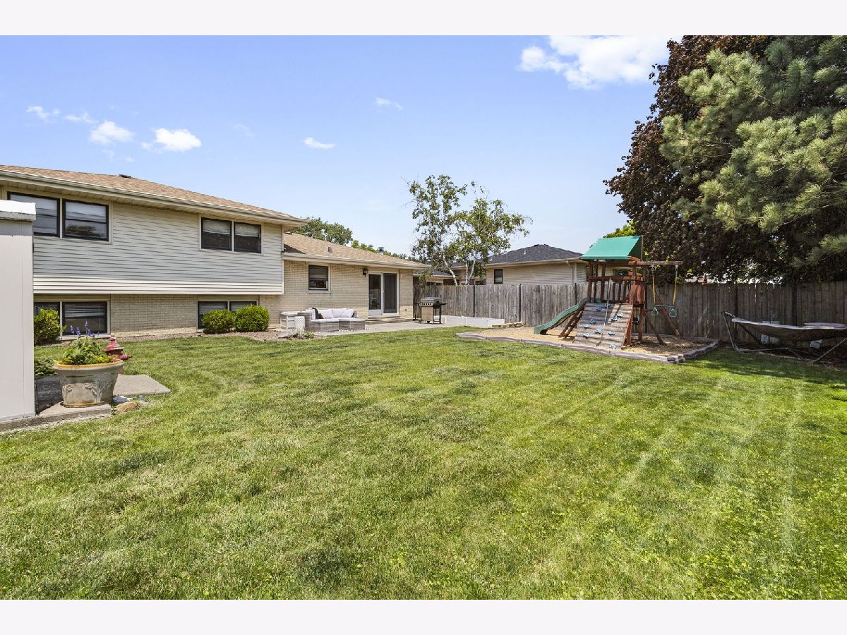 Welcome to this beautifully updated 3-bedroom, 2-bath brick split level home nestled on a gorgeous lot in the sought after Palos School District. Step inside to find a sun drenched living area, stunning hardwood flooring, and an open, updated kitchen with modern finishes. Enjoy the spacious chef's dream kitchen showcasing custom cabinetry, quartz counters, stainless appliances and a beautiful functional island with electricity. Both full baths have also been updated, one shared with the primary bedroom, granite counter vanities. Enjoy the usable lower level family room with access to the garage. The kitchen patio doors open up right into the expansive, fully fenced backyard featuring a concrete patio, storage shed and fun playset- ideal for entertaining or relaxing. Roof approx 5 years, HVAC about 10, heated attached 2.5 car garage. Spacious closets throughout and plenty of storage. Ideal location near schools, parks, public transportation, shops and restaurants, this home offers comfort, convenience, and great curb appeal.
