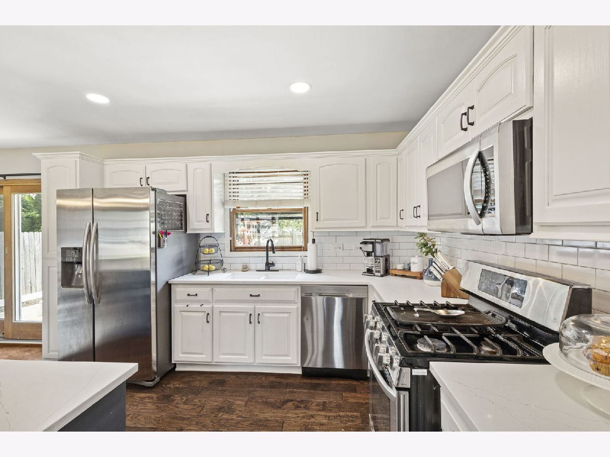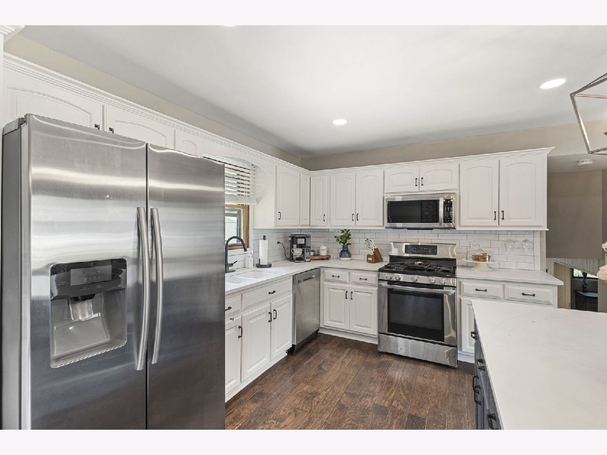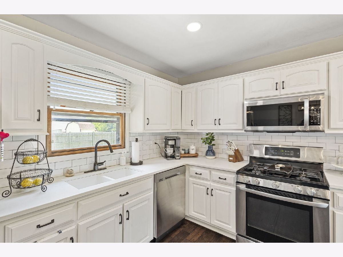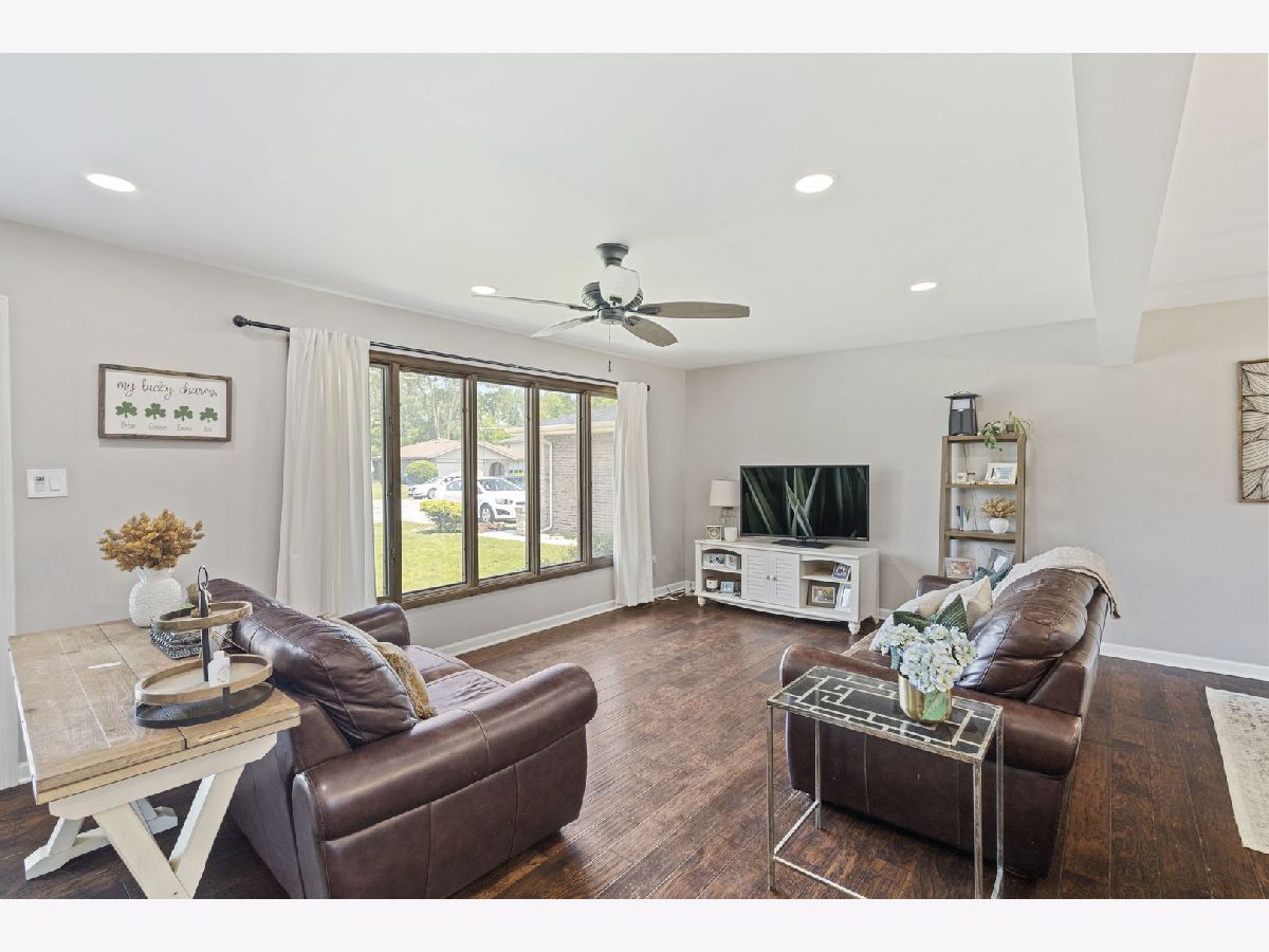 Welcome to this beautifully updated 3-bedroom, 2-bath brick split level home nestled on a gorgeous lot in the sought after Palos School District. Step inside to find a sun drenched living area, stunning hardwood flooring, and an open, updated kitchen with modern finishes. Enjoy the spacious chef's dream kitchen showcasing custom cabinetry, quartz counters, stainless appliances and a beautiful functional island with electricity. Both full baths have also been updated, one shared with the primary bedroom, granite counter vanities. Enjoy the usable lower level family room with access to the garage. The kitchen patio doors open up right into the expansive, fully fenced backyard featuring a concrete patio, storage shed and fun playset- ideal for entertaining or relaxing. Roof approx 5 years, HVAC about 10, heated attached 2.5 car garage. Spacious closets throughout and plenty of storage. Ideal location near schools, parks, public transportation, shops and restaurants, this home offers comfort, convenience, and great curb appeal.