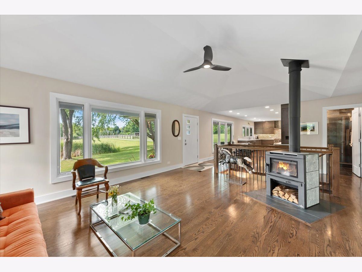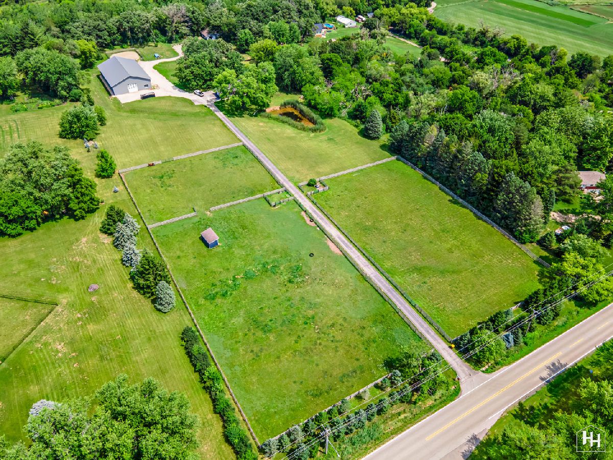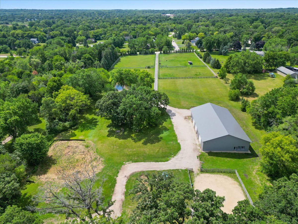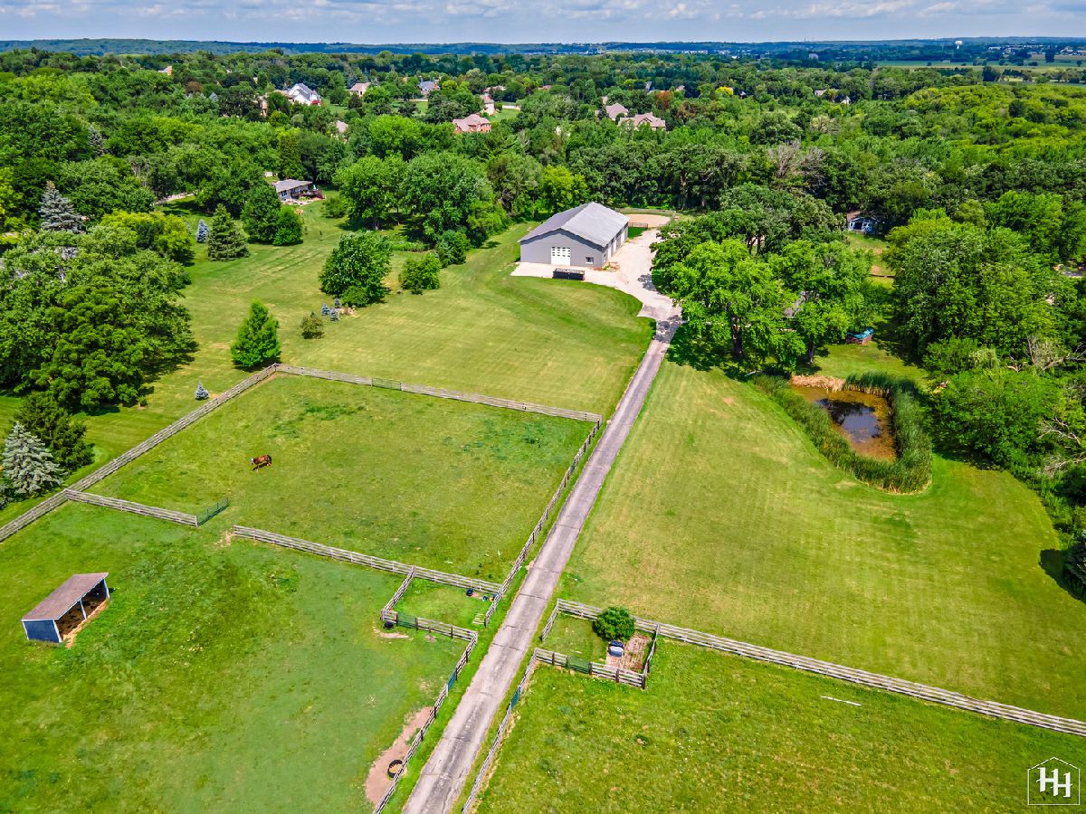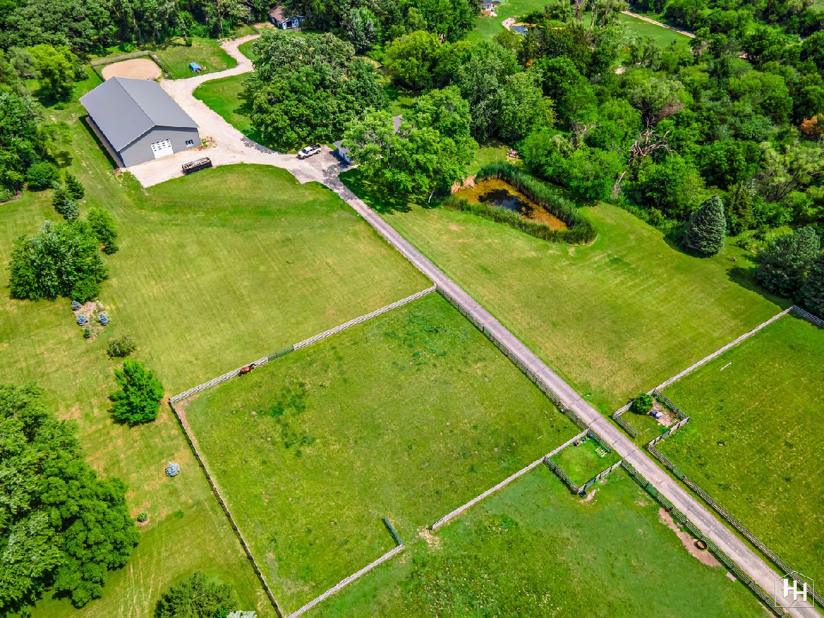 Completely renovated breathtaking farmette on nearly 8 acres, zoned A1, with a brand new large accessory building minutes from town. Thoughtfully and privately tucked away yet moments from downtown Crystal Lake is a true horse lovers retreat. Transformation by local award-winning builder includes rebuilt stylish mid-century modern home with with open plan and energy efficient features including spray foam insulation, LP SmartSide trim and siding, and triple pane Pella windows with integral shades. Sleek kitchen with all stainless appliances and solid Quartz countertops open to vaulted family room with powerful high efficiency wood burning stove. Impeccable finishes, high-end materials and millwork throughout. 7000 SF architecturally fabulous accessory building added in 2023 offers countless possibilities with (4) 14X16 overhead doors to fit any commercial or recreational vehicle. Two separate private and enclosed spaces: 40X20 and 15X15: featuring brand new A/C and HVAC, spray foam insulation, and triple pane Pella windows with integral shades in this ideal work-from-home set up! Three graceful grass pastures, 65X70 limestone arena, 30X40 5-stall horse barn, and 10X20 run-in shelter surrounded and nestled by majestic 200 year-old oaks and pines. Serene views overlooking pond, pastures, and your personal slice of heaven. Easy access to in-town conveniences, commuter train and Crystal Lake's award-winning schools.