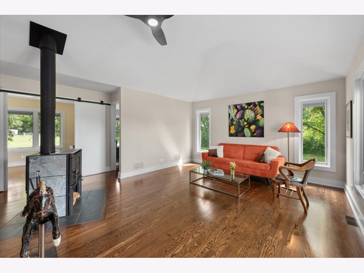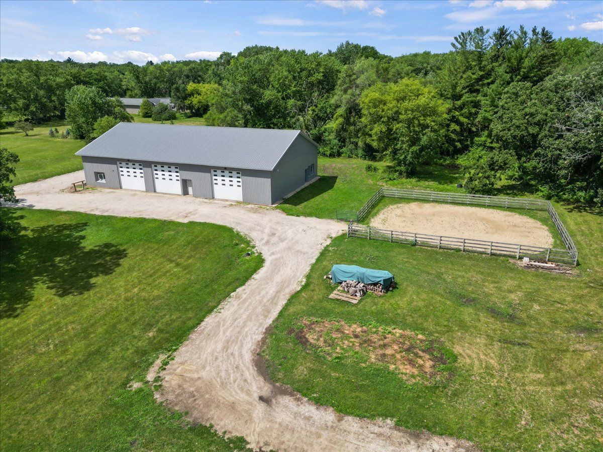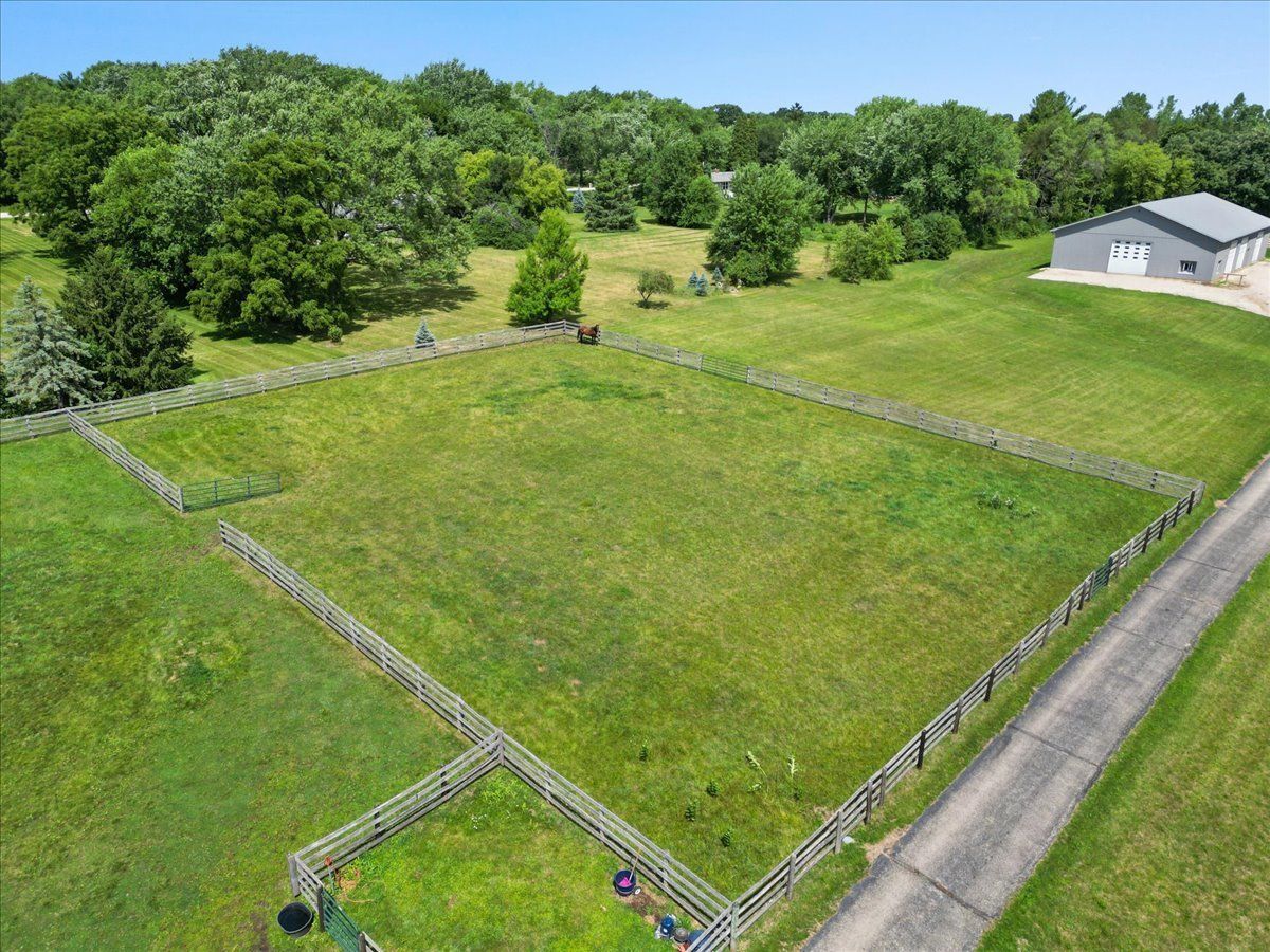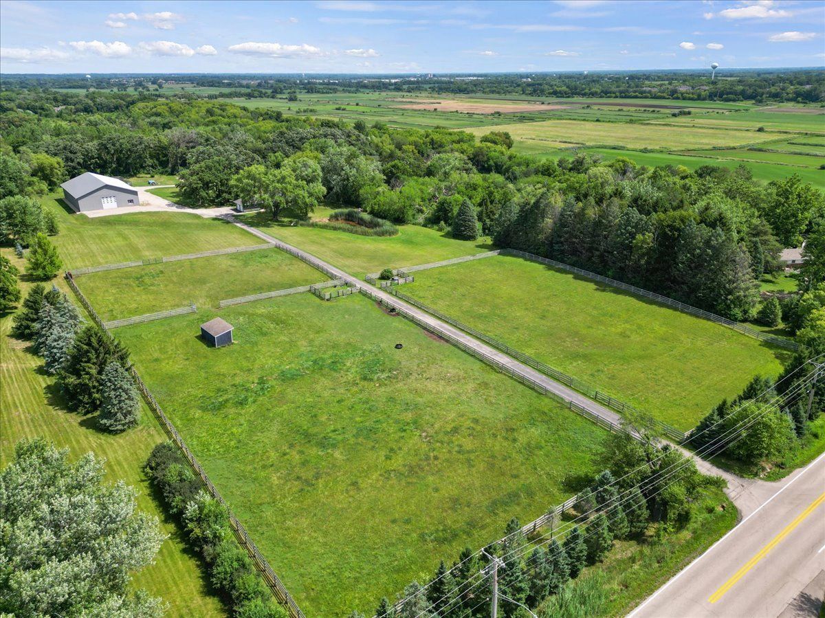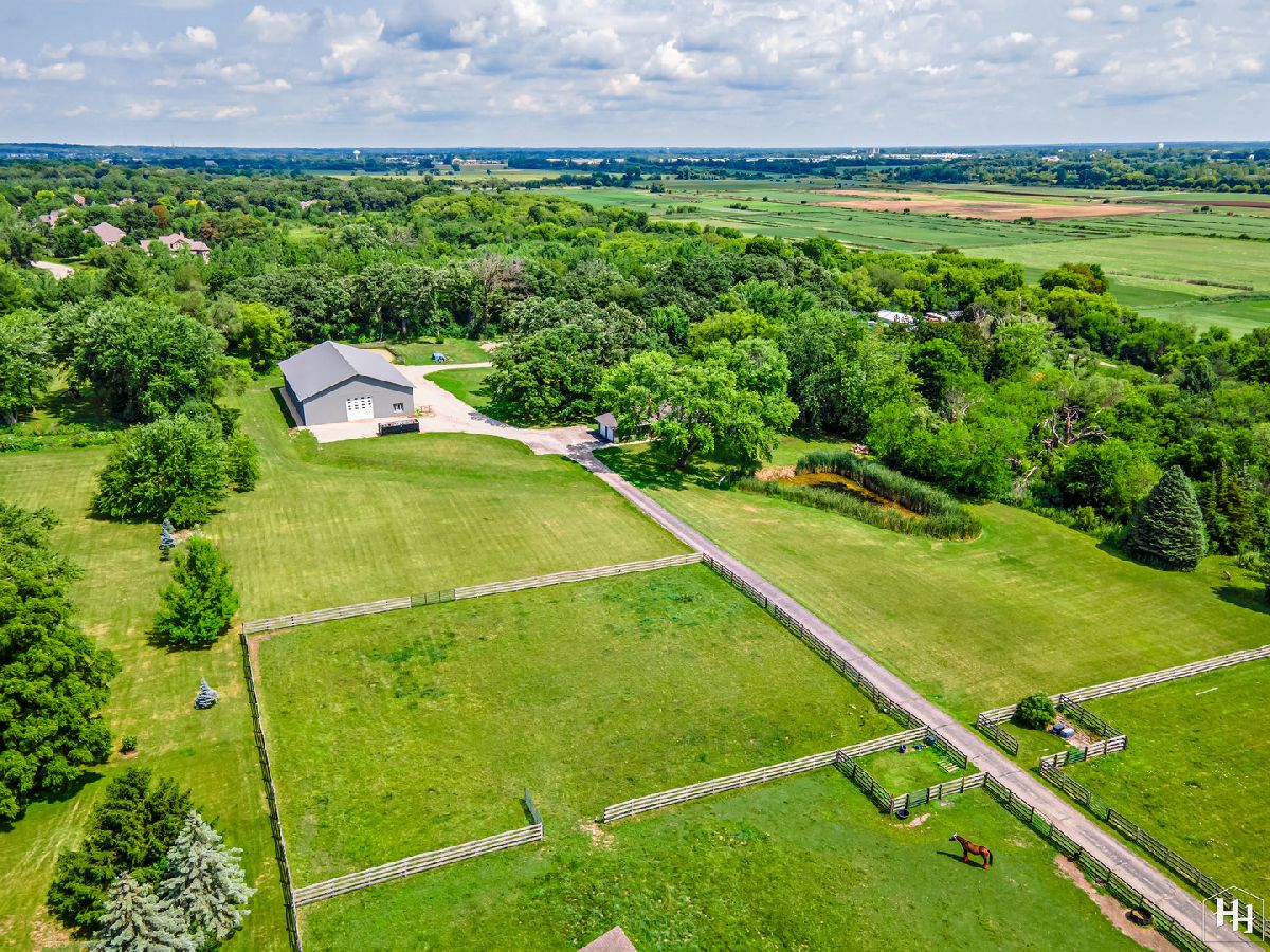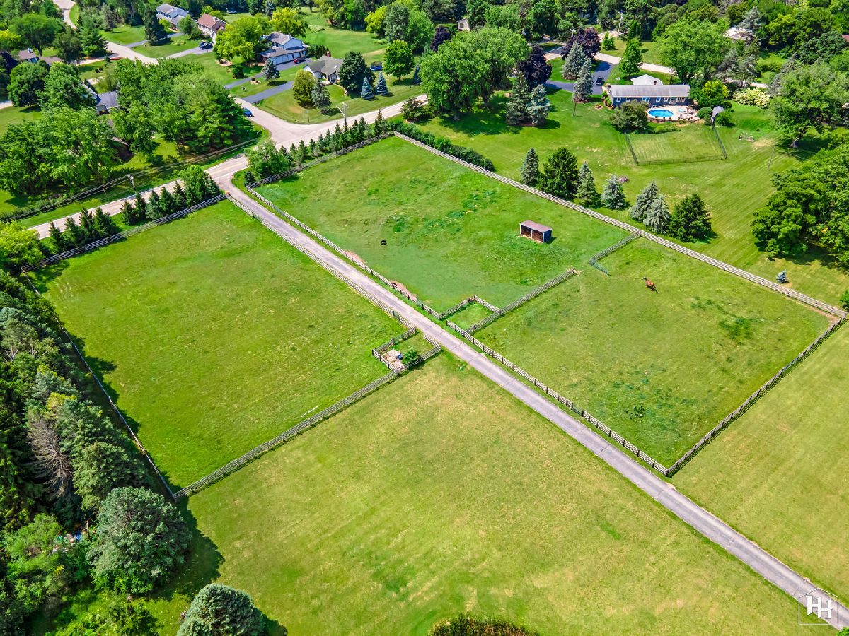 Completely renovated breathtaking farmette on nearly 8 acres, zoned A1, with a brand new large accessory building minutes from town. Thoughtfully and privately tucked away yet moments from downtown Crystal Lake is a true horse lovers retreat. Transformation by local award-winning builder includes rebuilt stylish mid-century modern home with with open plan and energy efficient features including spray foam insulation, LP SmartSide trim and siding, and triple pane Pella windows with integral shades. Sleek kitchen with all stainless appliances and solid Quartz countertops open to vaulted family room with powerful high efficiency wood burning stove. Impeccable finishes, high-end materials and millwork throughout. 7000 SF architecturally fabulous accessory building added in 2023 offers countless possibilities with (4) 14X16 overhead doors to fit any commercial or recreational vehicle. Two separate private and enclosed spaces: 40X20 and 15X15: featuring brand new A/C and HVAC, spray foam insulation, and triple pane Pella windows with integral shades in this ideal work-from-home set up! Three graceful grass pastures, 65X70 limestone arena, 30X40 5-stall horse barn, and 10X20 run-in shelter surrounded and nestled by majestic 200 year-old oaks and pines. Serene views overlooking pond, pastures, and your personal slice of heaven. Easy access to in-town conveniences, commuter train and Crystal Lake's award-winning schools.