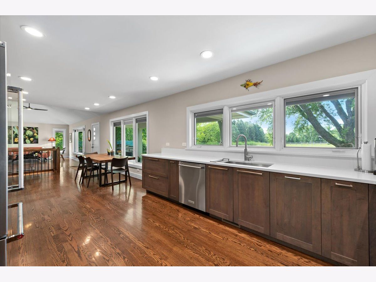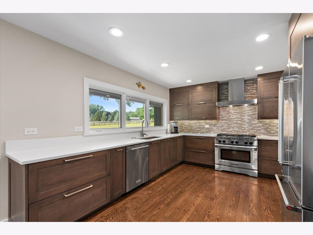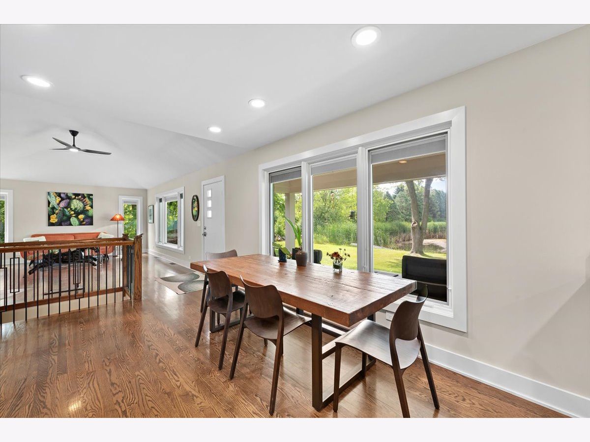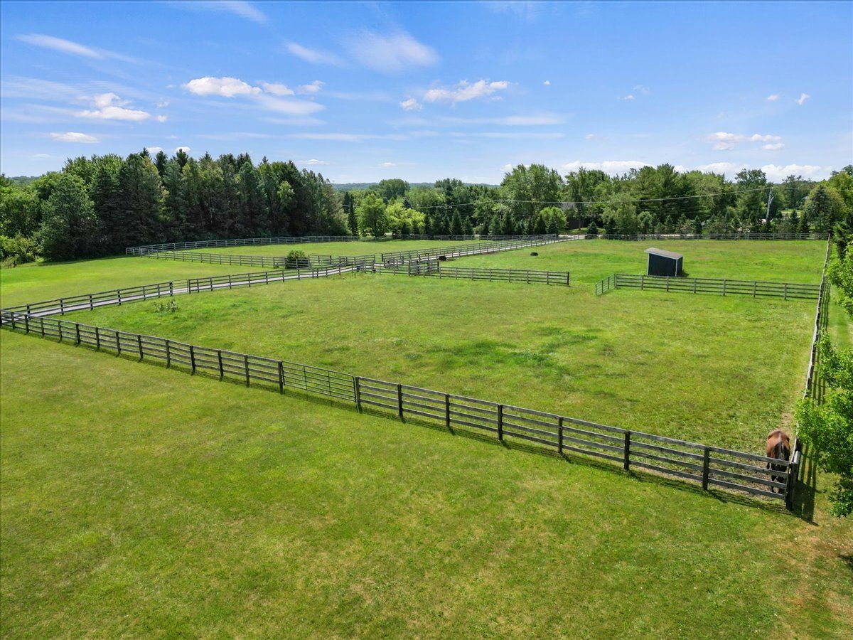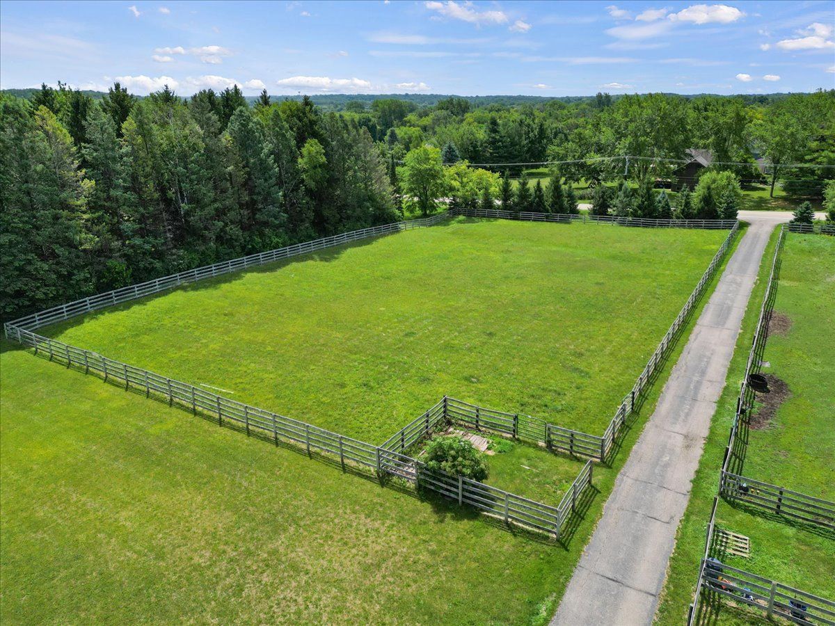 Completely renovated breathtaking farmette on nearly 8 acres, zoned A1, with a brand new large accessory building minutes from town. Thoughtfully and privately tucked away yet moments from downtown Crystal Lake is a true horse lovers retreat. Transformation by local award-winning builder includes rebuilt stylish mid-century modern home with with open plan and energy efficient features including spray foam insulation, LP SmartSide trim and siding, and triple pane Pella windows with integral shades. Sleek kitchen with all stainless appliances and solid Quartz countertops open to vaulted family room with powerful high efficiency wood burning stove. Impeccable finishes, high-end materials and millwork throughout. 7000 SF architecturally fabulous accessory building added in 2023 offers countless possibilities with (4) 14X16 overhead doors to fit any commercial or recreational vehicle. Two separate private and enclosed spaces: 40X20 and 15X15: featuring brand new A/C and HVAC, spray foam insulation, and triple pane Pella windows with integral shades in this ideal work-from-home set up! Three graceful grass pastures, 65X70 limestone arena, 30X40 5-stall horse barn, and 10X20 run-in shelter surrounded and nestled by majestic 200 year-old oaks and pines. Serene views overlooking pond, pastures, and your personal slice of heaven. Easy access to in-town conveniences, commuter train and Crystal Lake's award-winning schools.