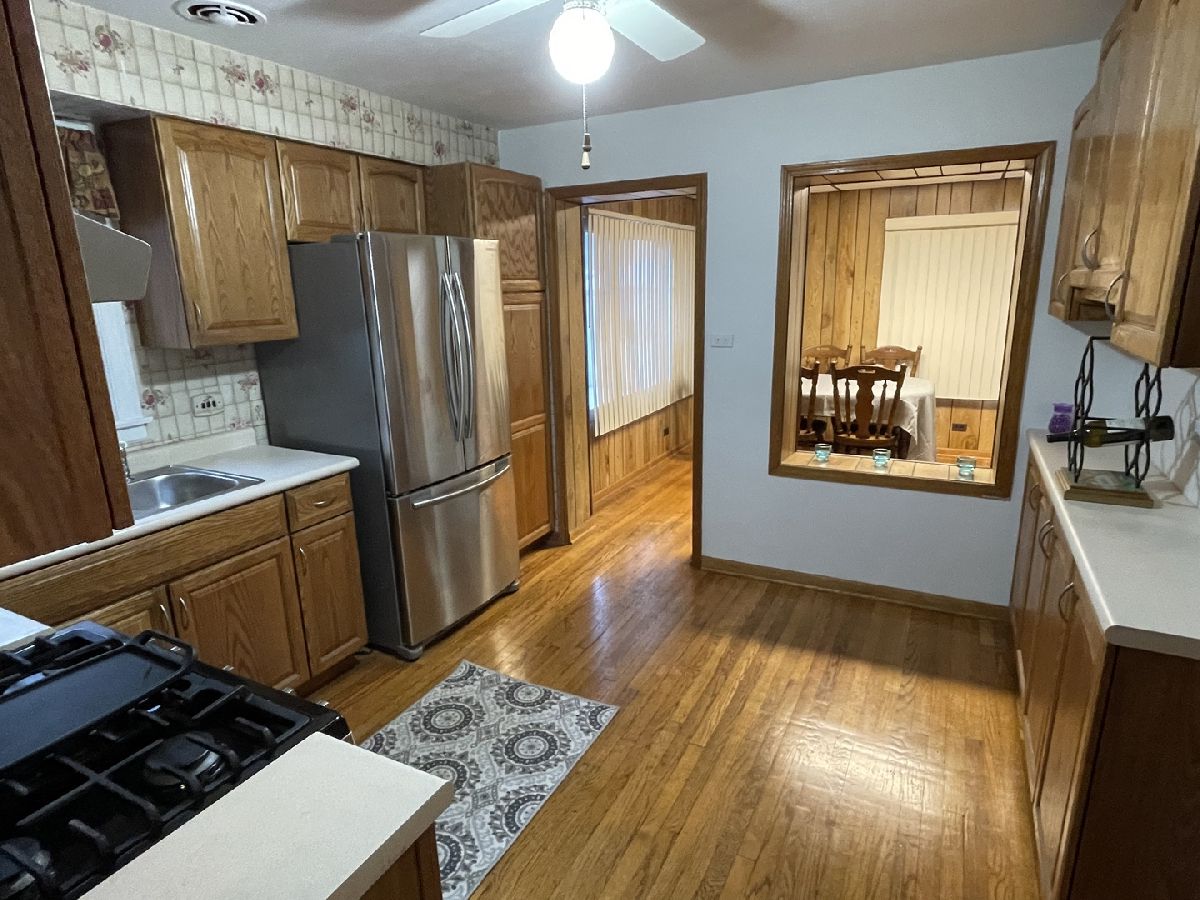 Super convenient LOCATION! Large, charming 4 Bedroom 1 and a half bath brick home in sought-after Jefferson Park. Offers over 2,000 sq. ft. of living space. Priced to sell. Meticulously maintained, & loved by the same owner over the last 40+ years. Beautiful hardwood floors throughout first and second level, central air, gracious room sizes, freshly painted and plenty of storage.The main level has a beautiful living room with working gas log fireplace, built-in shelves, and vintage architectural touches, a half bath, and two generously sized bedrooms. Just off the kitchen with stainless steel appliances on this level is a charming heated enclosed porch/dining room/eating area leading to fenced in backyard with a new oversized 2 car garage (2020) with a party door. The second level features a huge Primary bedroom overflowing with charm and natural light featuring a large walk-in closet and sitting area. Also on the second level there is a full, tiled bathroom with tub and shower, an additional bedroom with a laundry chute direct to the basement, and large storage space. The basement has 2 stairways leading to it and is a finished, open, airy, and DRY basement with a Tiki bar and living area lined with custom, solid, knotty pine paneling provide ample space to entertain and relax. There is also a workshop area and a large laundry room. Under the basement stairs there is more storage and a large safe with re programmable lock that stays with the house. Conveniently location ideal for commuters. near to I-90/94 expressways. 15 minutes from O'Hare Airport, minutes from downtown, and a short distance to the Jefferson Park Metra / CTA Blue Line / Bus Station. Enjoy the Foster-Austin Park just a block away from this beautiful home.