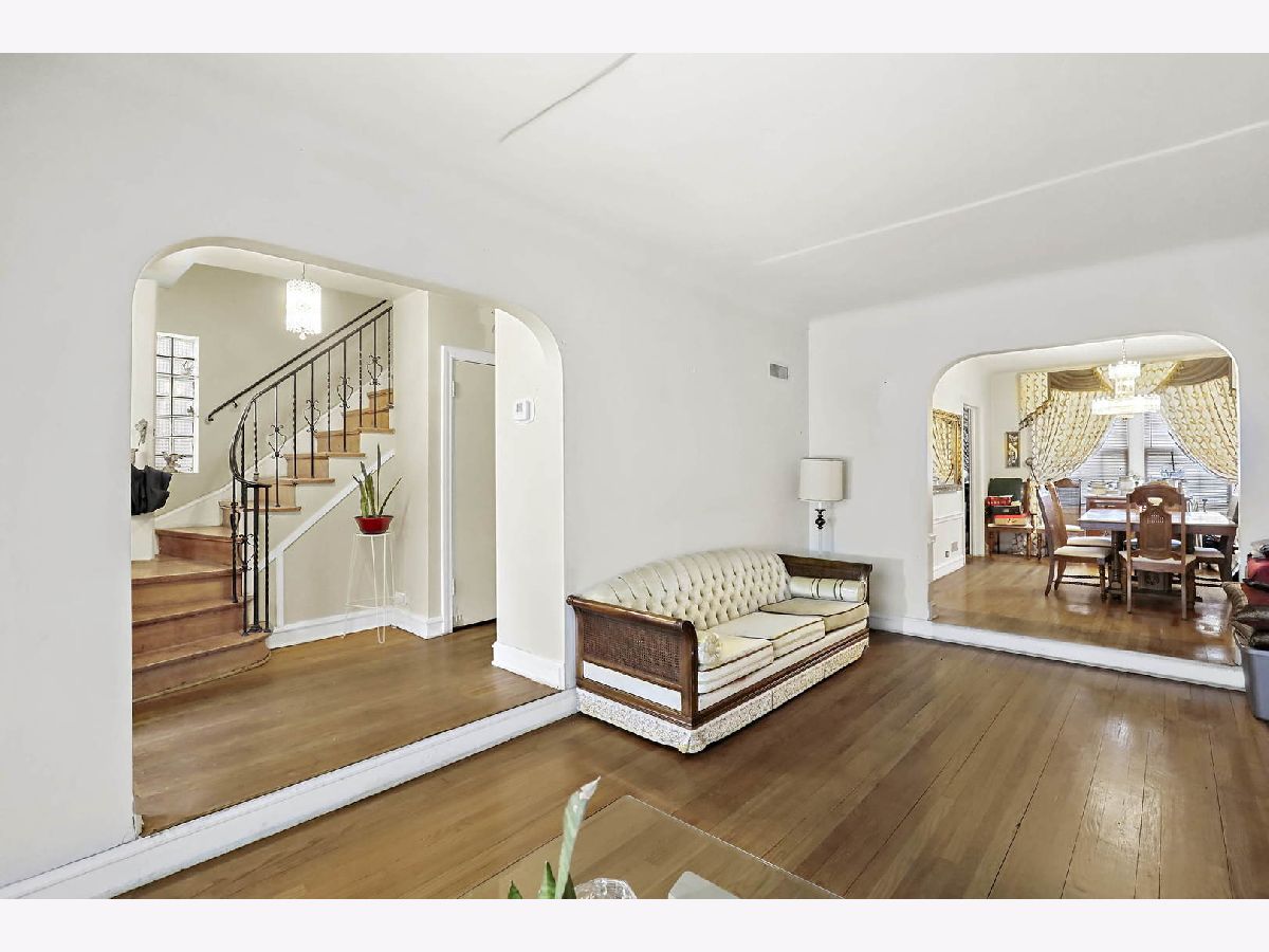 Bring your ideas! Peterson Park Georgian with great bones and ready for your potential updates. All three bedrooms on the second level are huge!. Hardwood floors thought-out the 1st and 2nd levels. Separate living and dining room. Home includes 3 fireplaces. Basement has a huge open family room with bar. Large back yard. Near Peterson Park, Pulaski Park, Forest Glen Metra, and other conveniences. Property is being sold as-is.