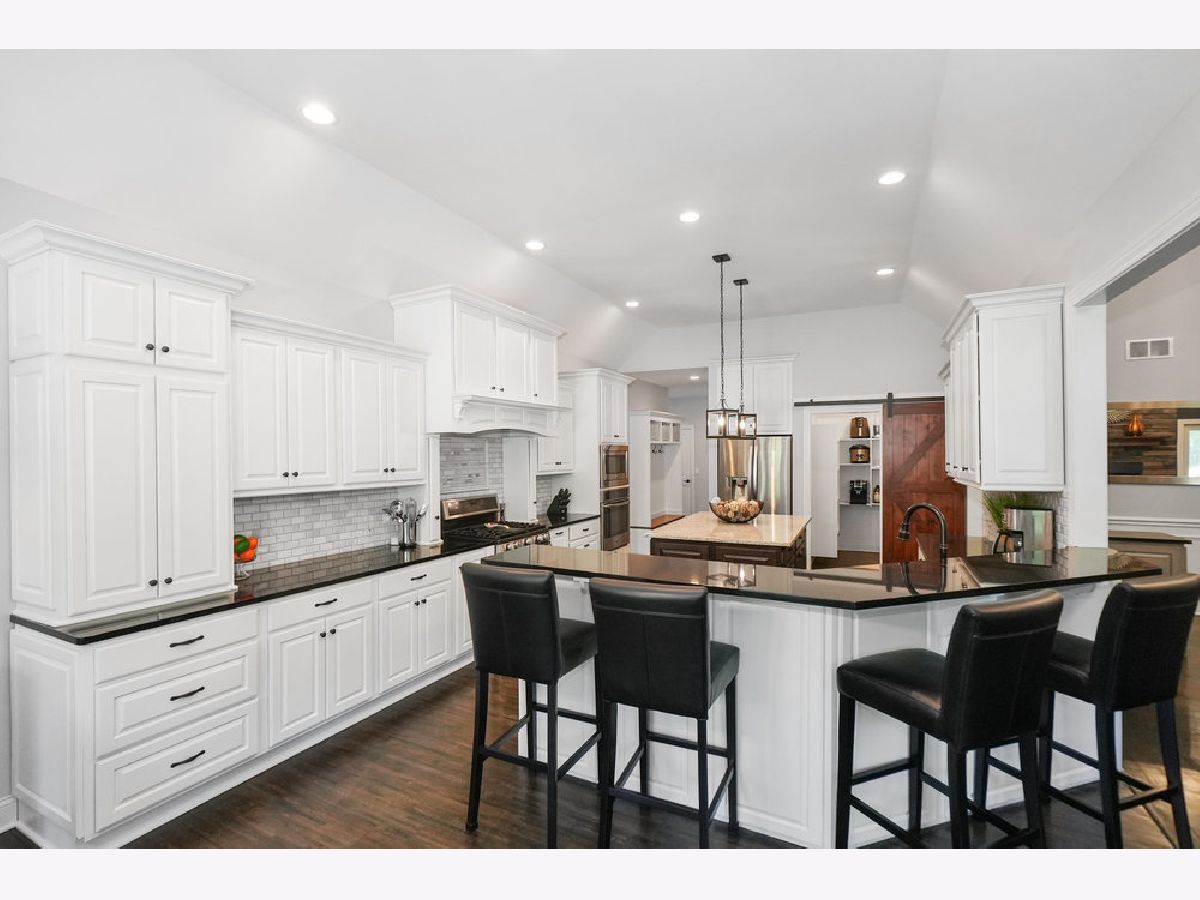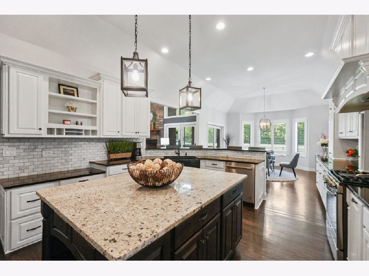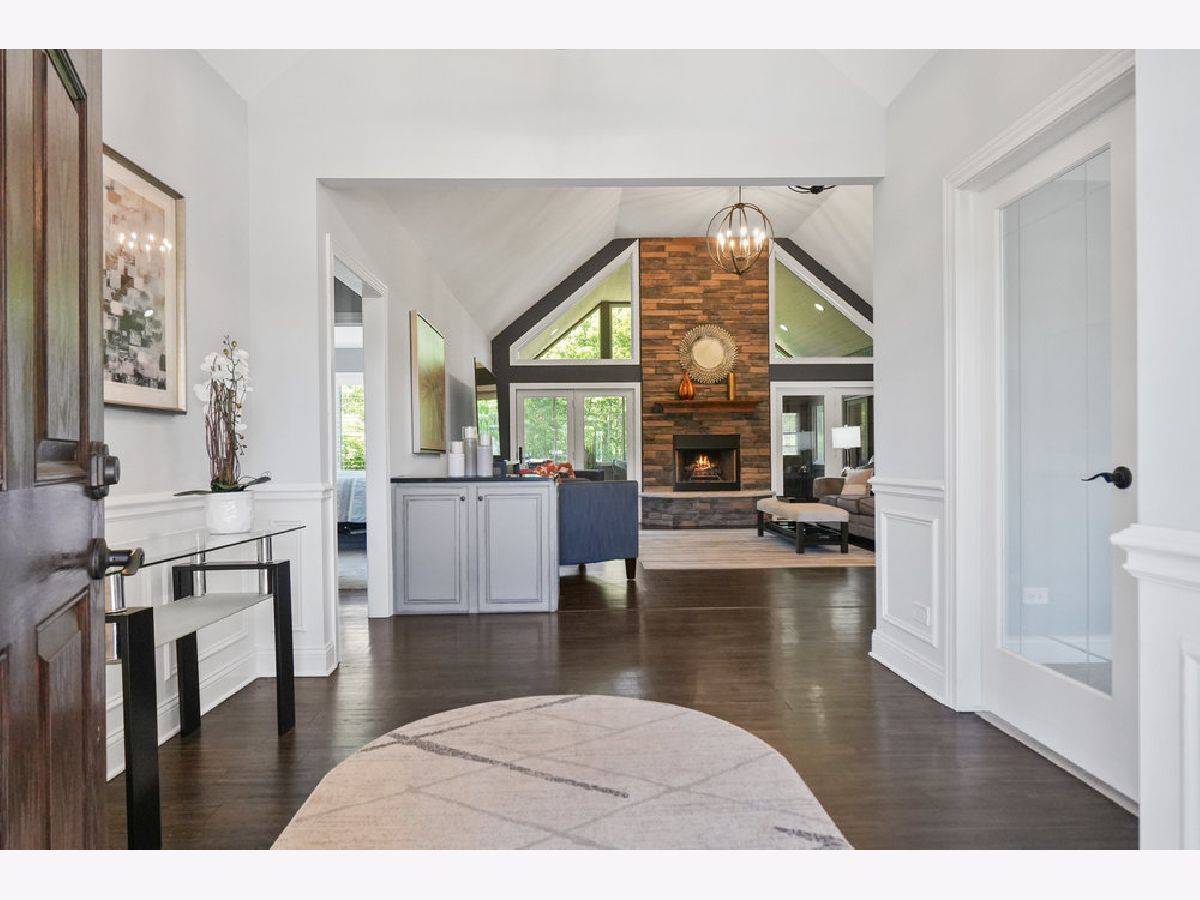 Come experience luxury golf course living in the prestigious Whitetail Ridge Golf Club community. This fully updated ranch-style home sits on a beautifully landscaped and fenced 0.76-acre lot with panoramic views of the adjacent forest preserve. Offering nearly 5,000 square feet of finished living space, the home has been thoughtfully updated with impeccable attention to detail. Inside, hand-scraped maple floors flow through the main living areas, complemented by plantation shutters, designer light fixtures, and freshly painted. The open-concept kitchen is the heart of the home, featuring refinished cabinetry, granite countertops, a massive island, dual ovens, tiled backsplash, large buffet, bar seating, and a walk-in pantry with a barn door. The informal dining area flows seamlessly into a sunroom, creating the perfect space for entertaining indoors and out. At the center of the home, the vaulted great room makes a dramatic statement with its soaring ceilings and a stunning floor-to-ceiling stacked stone fireplace that serves as the room's focal point. The open layout allows for easy flow between the kitchen, sunroom, and entertaining areas. The French doors to a three-season sunroom with a second fireplace (wood burning) and cedar-paneled vaulted ceiling. The primary suite is a private retreat, offering a vaulted ceiling, plantation shutters, and a wall of windows. Attached is a spa-inspired bath, oversized tiled shower with body sprays, dual vanity, deep soaking tub, custom built-ins, and a spacious walk-in closet. Two additional bedrooms and a full hall bath sit on the opposite end of the home for added privacy. A dedicated office/den with French doors and built-ins provides the perfect work-from-home setup. The oversized 3.5-car side-load garage easily accommodates 3-vehicles, a golf cart, and lawn equipment, and opens to a mudroom with built-in cubbies, powder room, and a laundry room with cabinetry and utility sink. The deep-pour finished basement features radiant heated floors, walk-out access to the backyard, a 4th bedroom, an updated full bath, office/mudroom area, and ample storage space. Outside, enjoy the mature landscaping, irrigation system, and a spacious patio designed for multiple seating areas-ideal for relaxing or entertaining. Conveniently located near shopping, dining, parks, and of course, world-class golf, this one-of-a-kind home is truly a rare find. Broker related to seller.