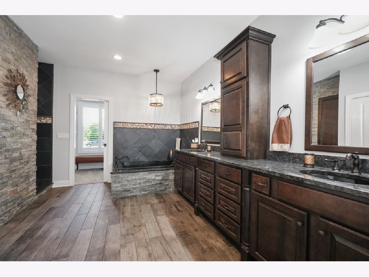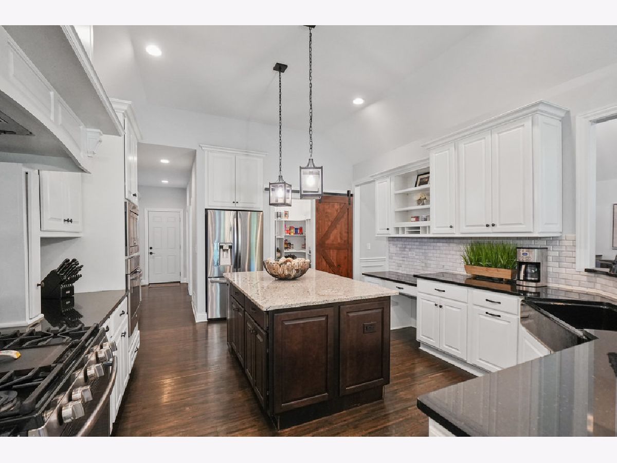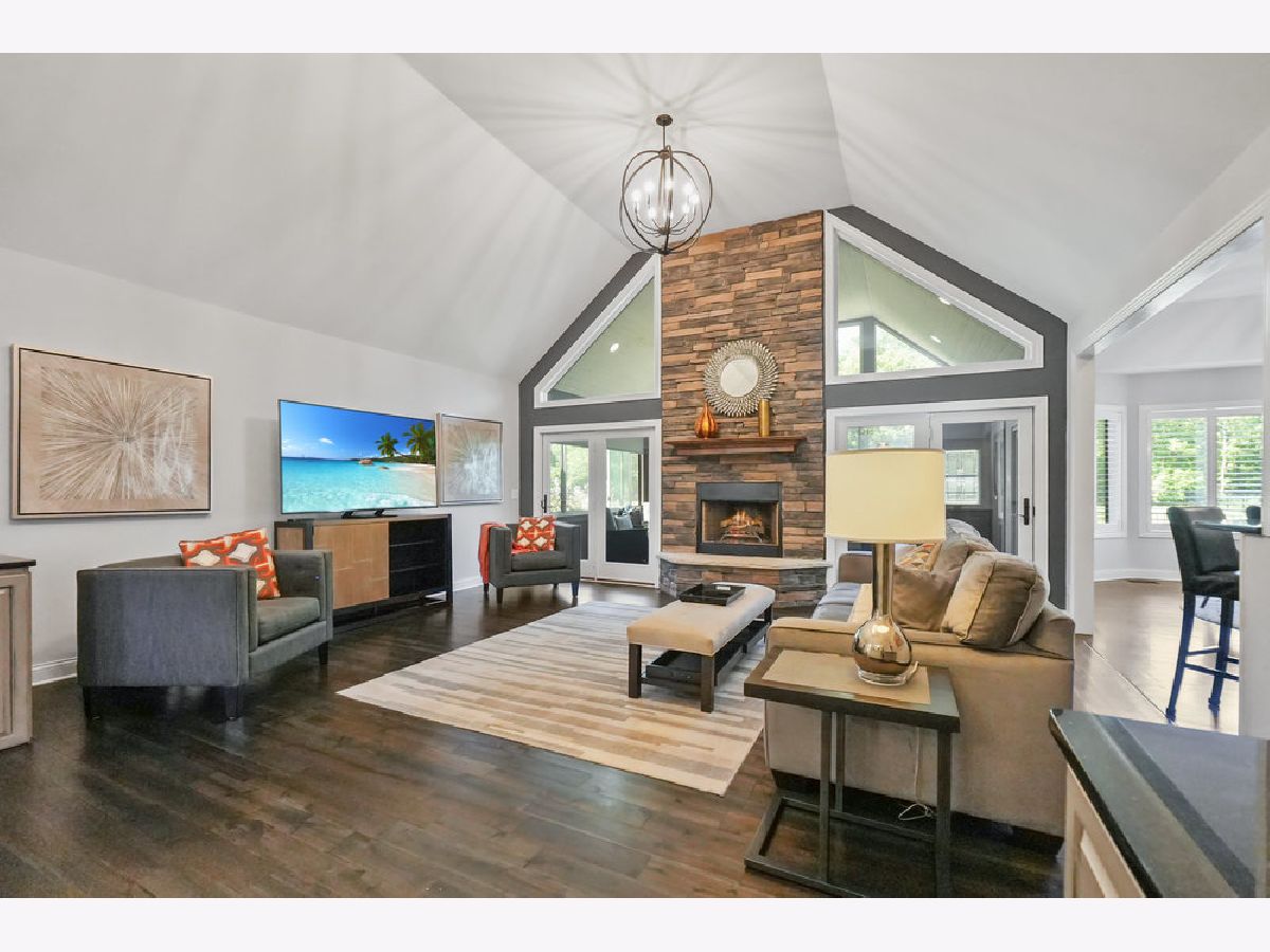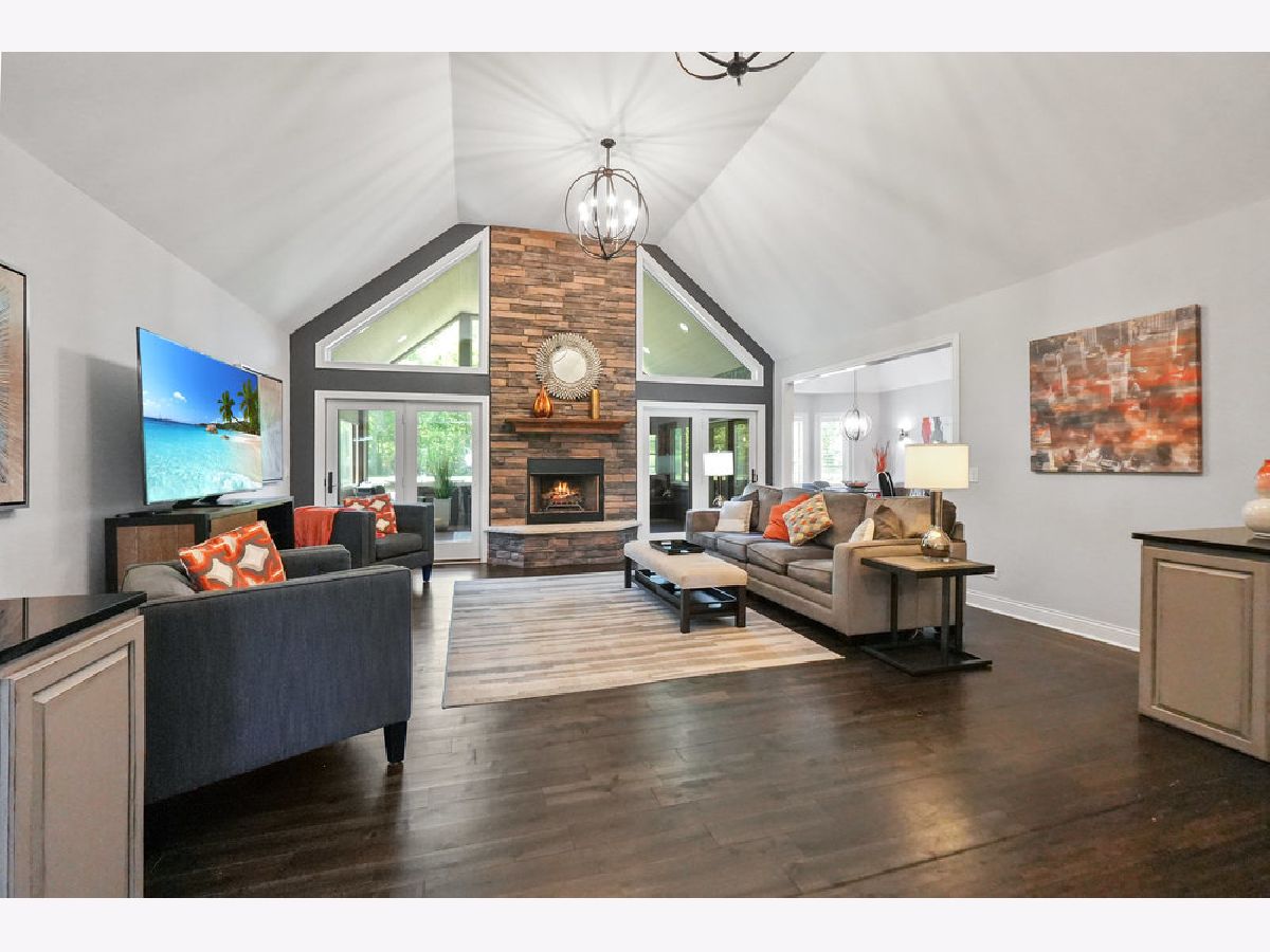 Come experience luxury golf course living in the prestigious Whitetail Ridge Golf Club community. This fully updated ranch-style home sits on a beautifully landscaped and fenced 0.76-acre lot with panoramic views of the adjacent forest preserve. Offering nearly 5,000 square feet of finished living space, the home has been thoughtfully updated with impeccable attention to detail. Inside, hand-scraped maple floors flow through the main living areas, complemented by plantation shutters, designer light fixtures, and freshly painted. The open-concept kitchen is the heart of the home, featuring refinished cabinetry, granite countertops, a massive island, dual ovens, tiled backsplash, large buffet, bar seating, and a walk-in pantry with a barn door. The informal dining area flows seamlessly into a sunroom, creating the perfect space for entertaining indoors and out. At the center of the home, the vaulted great room makes a dramatic statement with its soaring ceilings and a stunning floor-to-ceiling stacked stone fireplace that serves as the room's focal point. The open layout allows for easy flow between the kitchen, sunroom, and entertaining areas. The French doors to a three-season sunroom with a second fireplace (wood burning) and cedar-paneled vaulted ceiling. The primary suite is a private retreat, offering a vaulted ceiling, plantation shutters, and a wall of windows. Attached is a spa-inspired bath, oversized tiled shower with body sprays, dual vanity, deep soaking tub, custom built-ins, and a spacious walk-in closet. Two additional bedrooms and a full hall bath sit on the opposite end of the home for added privacy. A dedicated office/den with French doors and built-ins provides the perfect work-from-home setup. The oversized 3.5-car side-load garage easily accommodates 3-vehicles, a golf cart, and lawn equipment, and opens to a mudroom with built-in cubbies, powder room, and a laundry room with cabinetry and utility sink. The deep-pour finished basement features radiant heated floors, walk-out access to the backyard, a 4th bedroom, an updated full bath, office/mudroom area, and ample storage space. Outside, enjoy the mature landscaping, irrigation system, and a spacious patio designed for multiple seating areas-ideal for relaxing or entertaining. Conveniently located near shopping, dining, parks, and of course, world-class golf, this one-of-a-kind home is truly a rare find. Broker related to seller.