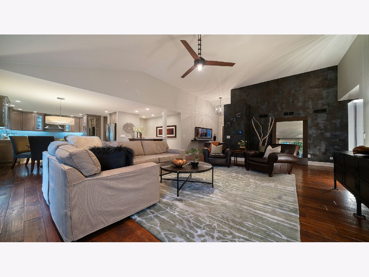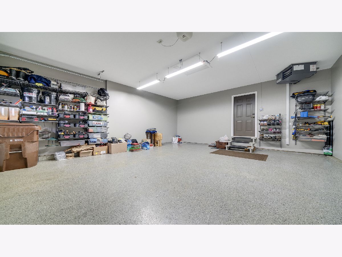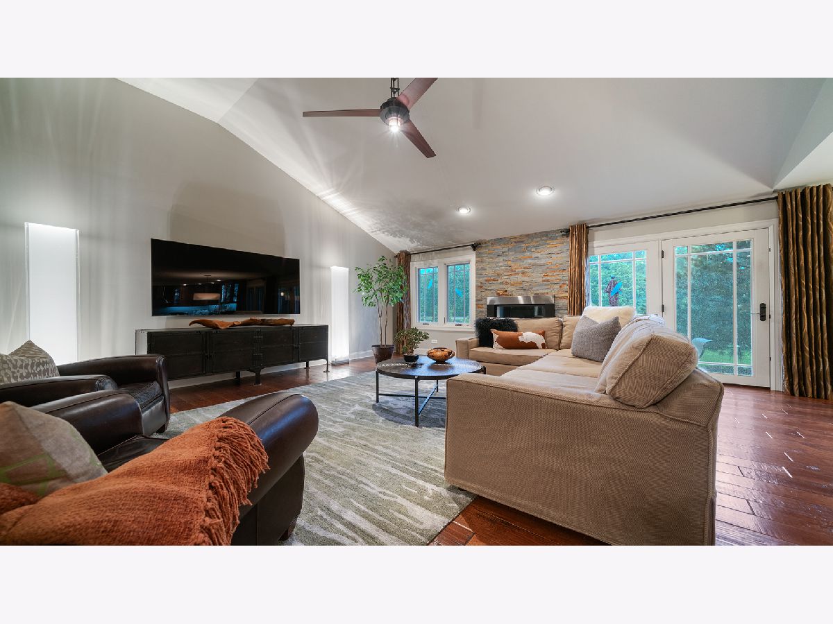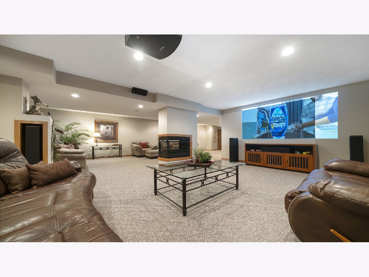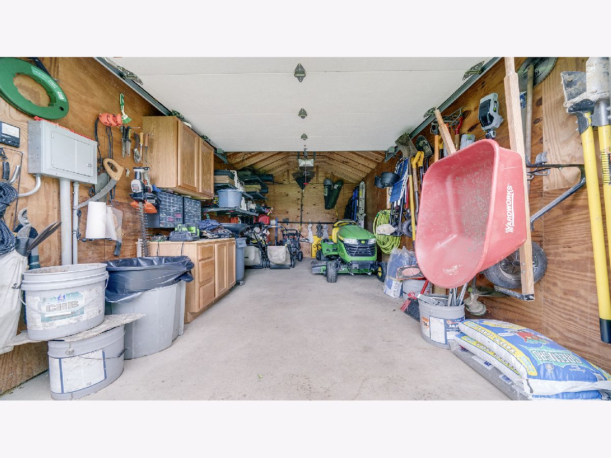 This stunning all-brick ranch home is beautifully landscaped and features a gorgeous entry with a stamped concrete front walk. Inside, the open-concept living area boasts vaulted ceilings and rich hardwood floors throughout. The living room is filled with natural light from large windows and centers around a striking floor-to-ceiling stone gas fireplace. The kitchen offers custom cabinetry, a subway tile backsplash, stainless steel appliances, and space for a generously sized dining table. Doors from the dining area lead to a custom patio with a serene water feature and a beautifully manicured backyard. A shed with electricity and an overhead garage door opener provides added utility. The main floor includes three bedrooms and two full bathrooms, including a spacious primary suite with tray ceiling, large windows overlooking the backyard, and a private bath with a walk-in shower. First-floor laundry adds convenience. The finished lower level offers a large family room with a gas fireplace, a movie room, an additional room perfect as a fourth bedroom or office, and a full bathroom. Additional features include a heated 2-car attached garage with epoxy floors, RO system to the kitchen sink, roof replaced in 2018, furnace and AC from 2019, water heater from 2022, and septic pumped in May 2023. Windows are approximately 10 years old, and the kitchen was renovated in 2013. This home is within walking distance to Espenscheid Forest Preserve.