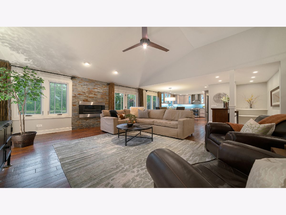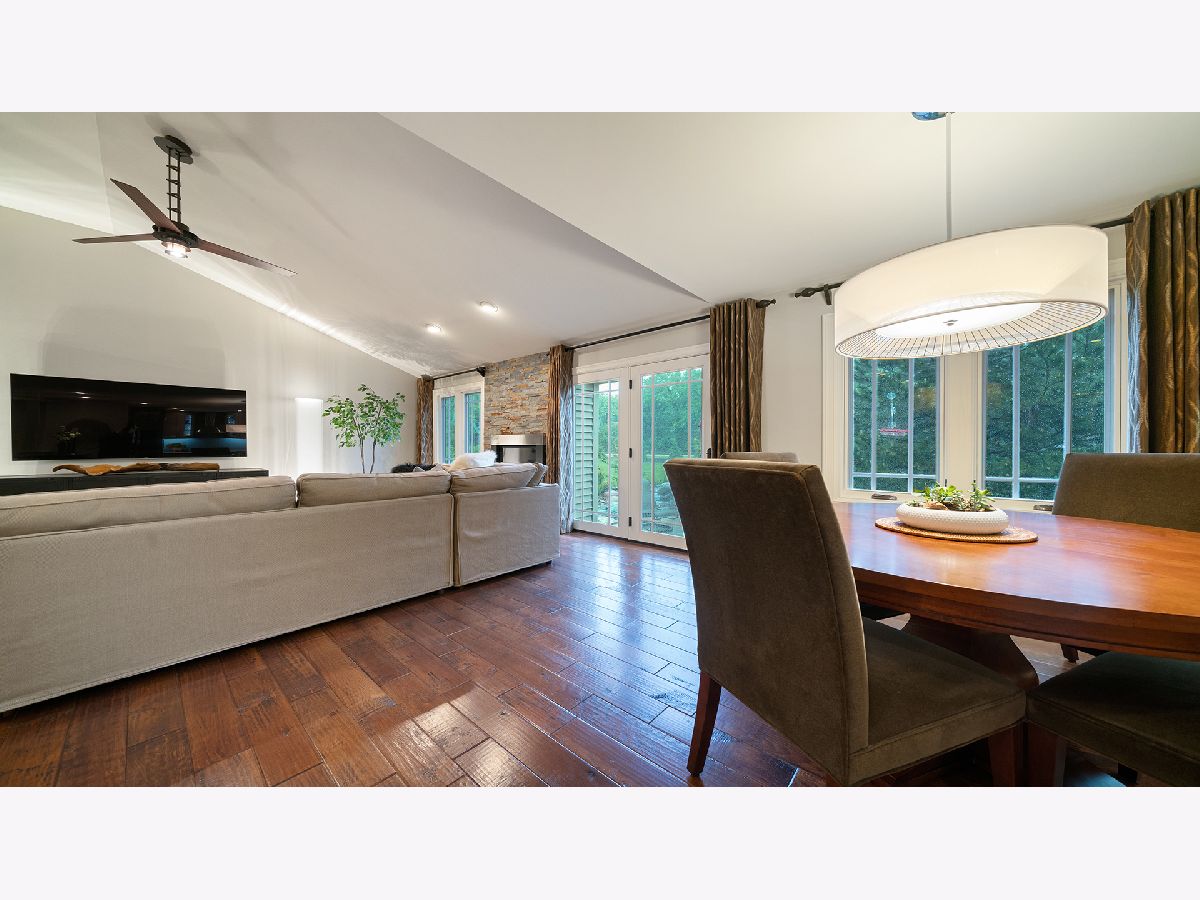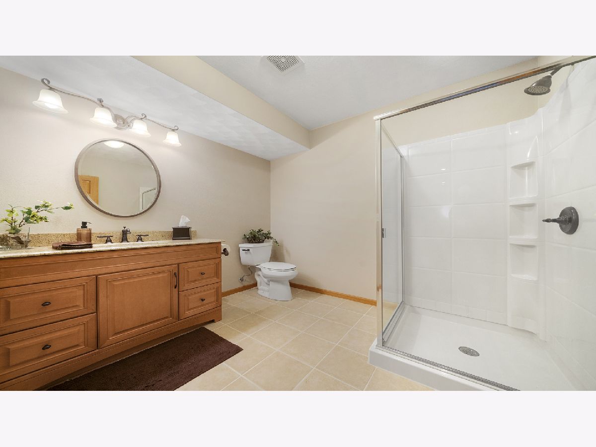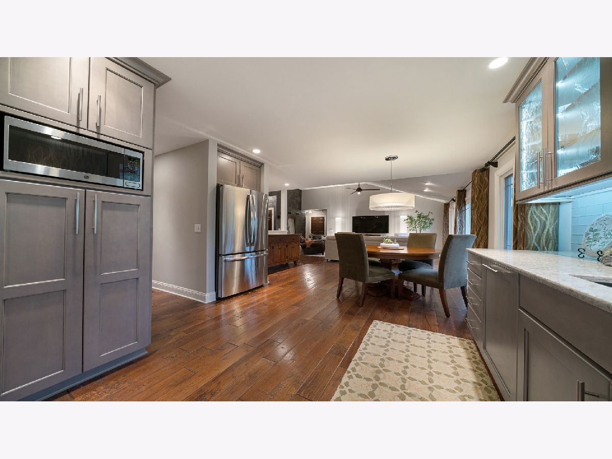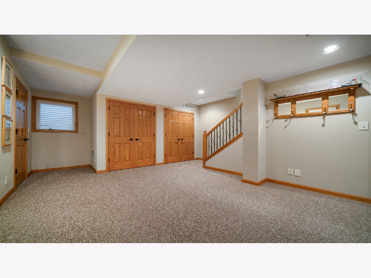 This stunning all-brick ranch home is beautifully landscaped and features a gorgeous entry with a stamped concrete front walk. Inside, the open-concept living area boasts vaulted ceilings and rich hardwood floors throughout. The living room is filled with natural light from large windows and centers around a striking floor-to-ceiling stone gas fireplace. The kitchen offers custom cabinetry, a subway tile backsplash, stainless steel appliances, and space for a generously sized dining table. Doors from the dining area lead to a custom patio with a serene water feature and a beautifully manicured backyard. A shed with electricity and an overhead garage door opener provides added utility. The main floor includes three bedrooms and two full bathrooms, including a spacious primary suite with tray ceiling, large windows overlooking the backyard, and a private bath with a walk-in shower. First-floor laundry adds convenience. The finished lower level offers a large family room with a gas fireplace, a movie room, an additional room perfect as a fourth bedroom or office, and a full bathroom. Additional features include a heated 2-car attached garage with epoxy floors, RO system to the kitchen sink, roof replaced in 2018, furnace and AC from 2019, water heater from 2022, and septic pumped in May 2023. Windows are approximately 10 years old, and the kitchen was renovated in 2013. This home is within walking distance to Espenscheid Forest Preserve.