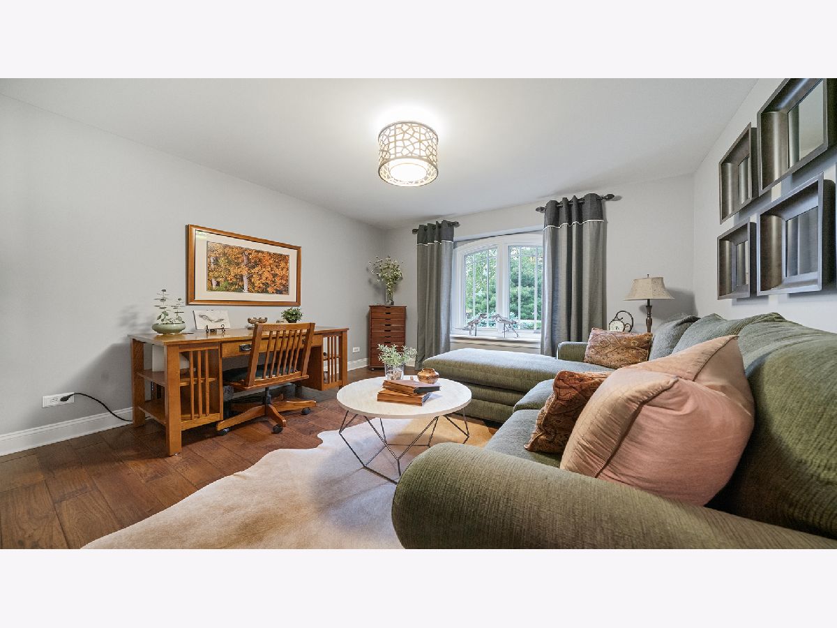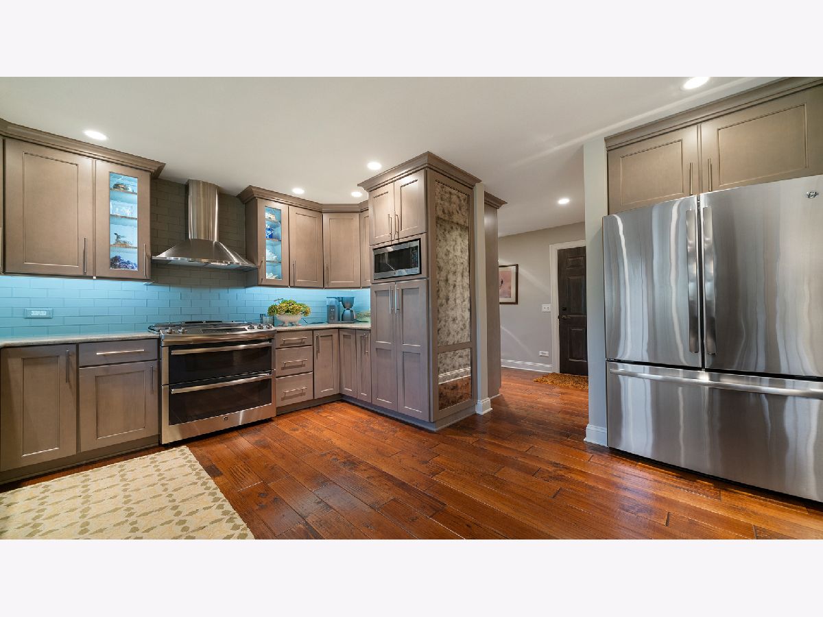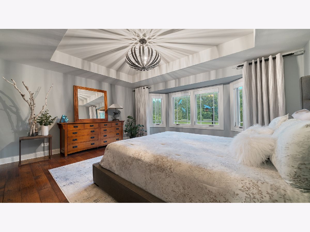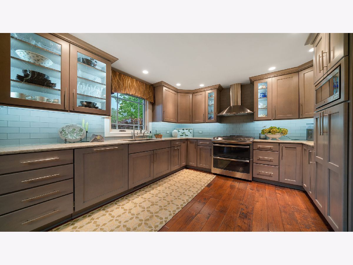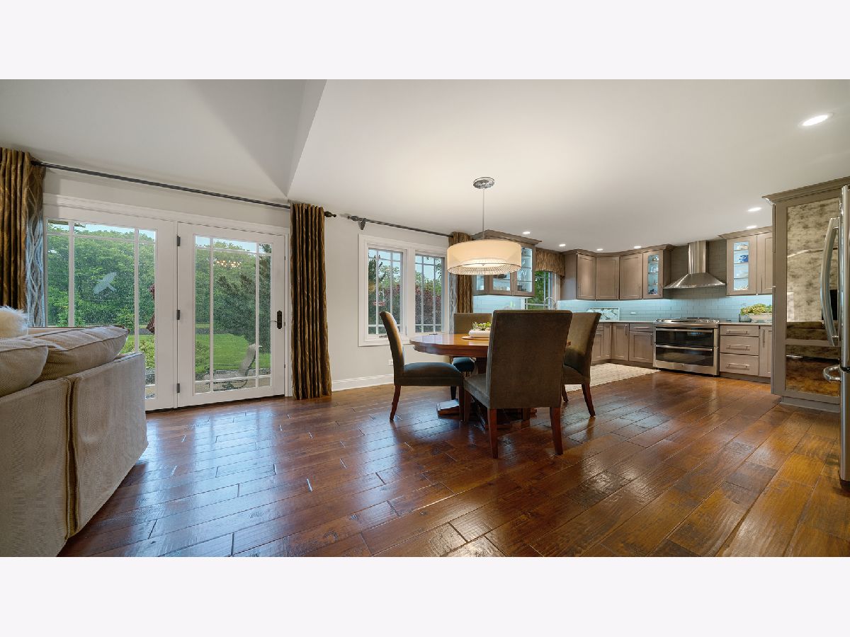 This stunning all-brick ranch home is beautifully landscaped and features a gorgeous entry with a stamped concrete front walk. Inside, the open-concept living area boasts vaulted ceilings and rich hardwood floors throughout. The living room is filled with natural light from large windows and centers around a striking floor-to-ceiling stone gas fireplace. The kitchen offers custom cabinetry, a subway tile backsplash, stainless steel appliances, and space for a generously sized dining table. Doors from the dining area lead to a custom patio with a serene water feature and a beautifully manicured backyard. A shed with electricity and an overhead garage door opener provides added utility. The main floor includes three bedrooms and two full bathrooms, including a spacious primary suite with tray ceiling, large windows overlooking the backyard, and a private bath with a walk-in shower. First-floor laundry adds convenience. The finished lower level offers a large family room with a gas fireplace, a movie room, an additional room perfect as a fourth bedroom or office, and a full bathroom. Additional features include a heated 2-car attached garage with epoxy floors, RO system to the kitchen sink, roof replaced in 2018, furnace and AC from 2019, water heater from 2022, and septic pumped in May 2023. Windows are approximately 10 years old, and the kitchen was renovated in 2013. This home is within walking distance to Espenscheid Forest Preserve.