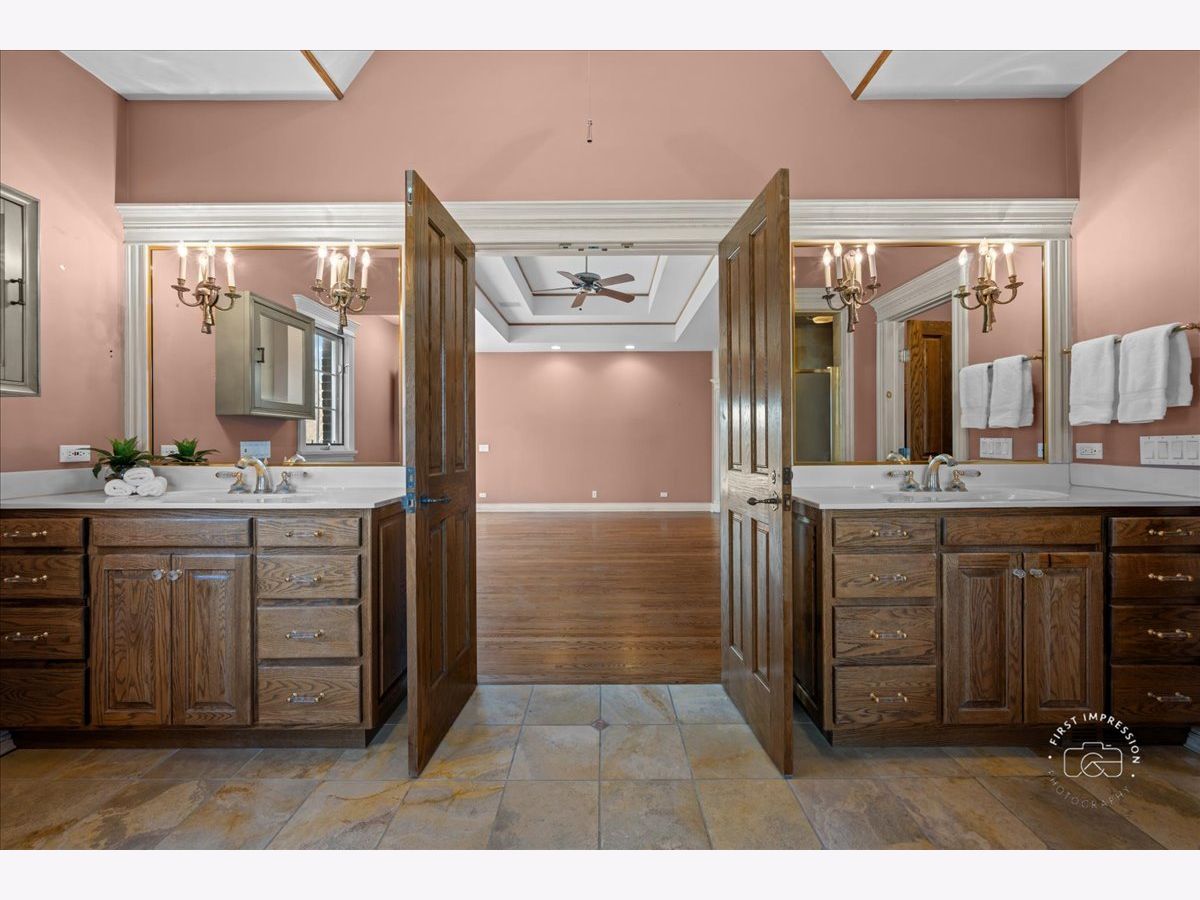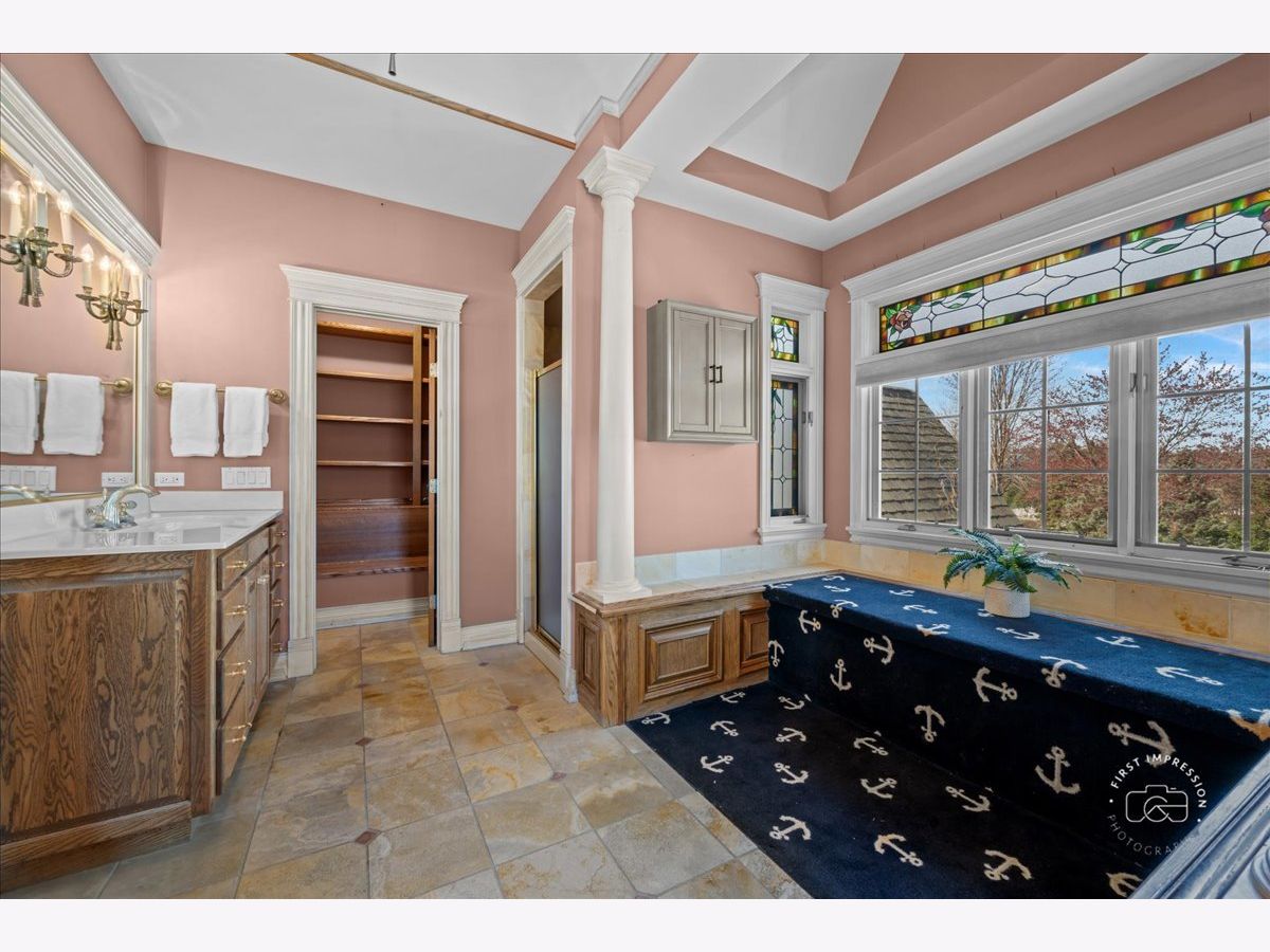 Welcome to 5N214 Wilton Croft, a distinguished Avondale-built manor home with over 7,200 sq. ft of finished living space nestled in the exclusive Crane Road Estates of St. Charles. Perfectly positioned on a picturesque 1.7-acre lot with mature trees and lush landscaping this estate offers the ideal blend of refined luxury and inviting warmth-an exceptional place to call home. From the moment you step into the grand foyer with its open staircase and custom millwork, you'll be captivated by the home's Old-World charm and masterful craftsmanship. Arched doorways, transom windows, beamed ceilings, and rich built-ins speak to the thoughtful design woven throughout every room. Designed with both family living and elegant entertaining in mind, the heart of the home is a stunning two-story family room featuring a wood-beamed ceiling and a cozy fireplace flanked by custom bookcases. This welcoming space flows effortlessly into a sunlit breakfast area and a chef's dream kitchen. The kitchen boasts high-end appliances, a generous 8-foot island with a prep sink, dual dishwashers, and a walk-in pantry-perfect for gatherings large or small. Working from home is a pleasure in the private office, accessed by French doors and complete with built-in bookshelves. For quiet moments, the charming sunroom with its private patio offers a serene setting for morning coffee or a good book. Upstairs, the spacious primary suite is a true retreat with a separate sitting area, private deck, and a generous walk-in closet. Three additional bedrooms are well-appointed and share a flexible bath layout that can easily be reconfigured to suit your needs. The fully finished English basement is an entertainer's haven, offering over 2,400 square feet of living space. With its own full kitchen, family room with fireplace, wet bar, rec room, den, full bath and workout space, it's ideal for multigenerational living or the ultimate in-home getaway. Outdoor living is just as impressive, with expansive patios and tranquil views offering year-round enjoyment. Despite the peaceful seclusion, you're just minutes from the vibrant heart of downtown St. Charles, scenic forest preserves, and the Fox River. Plus, benefit from award-winning District 303 schools. Discover the perfect balance of grandeur and livability at 5N214 Wilton Croft-a home where every detail invites you to linger just a little longer. Estate sale. Property being sold "as-is" per seller.
