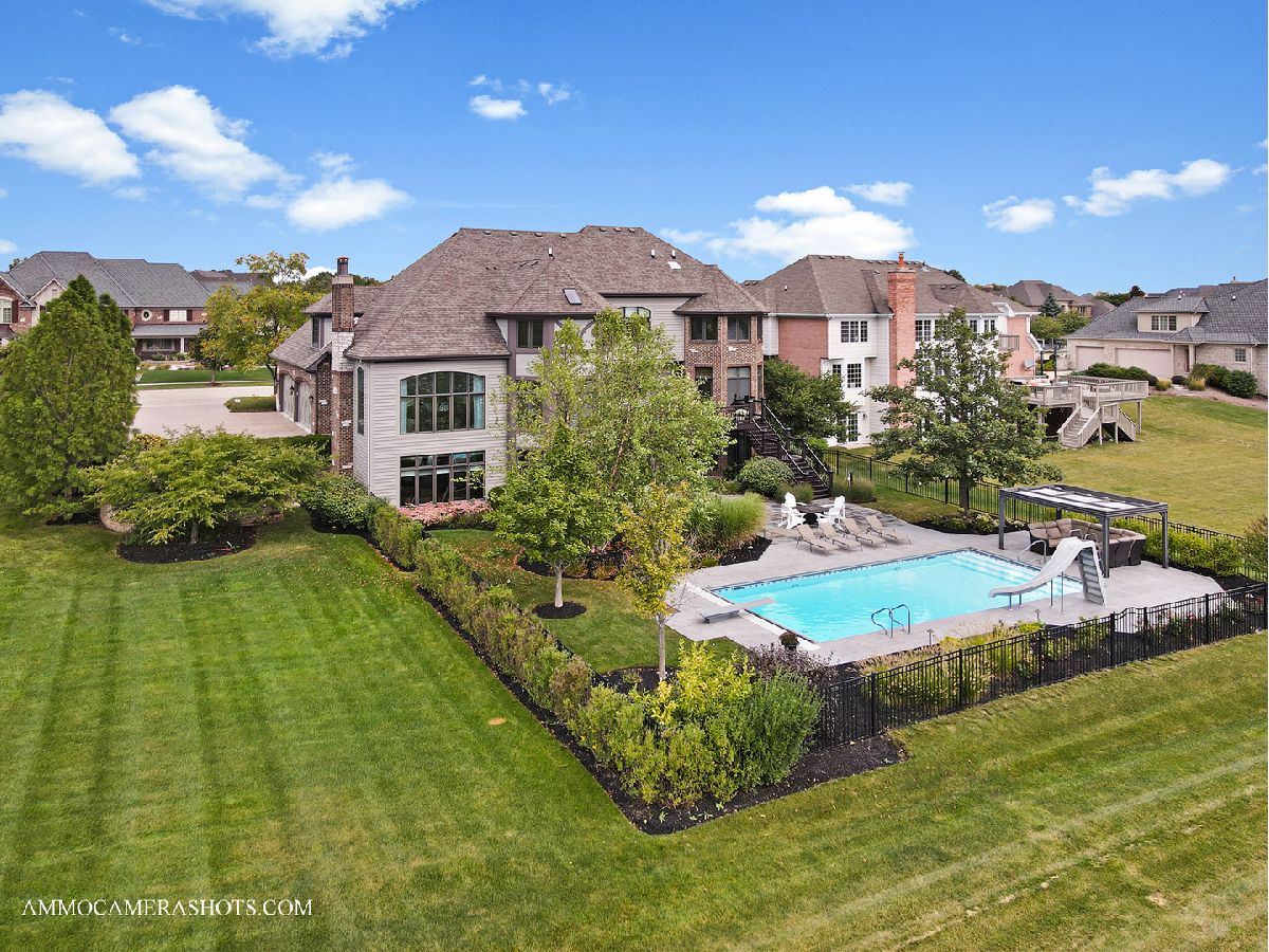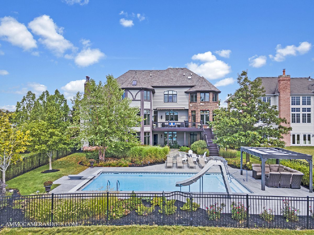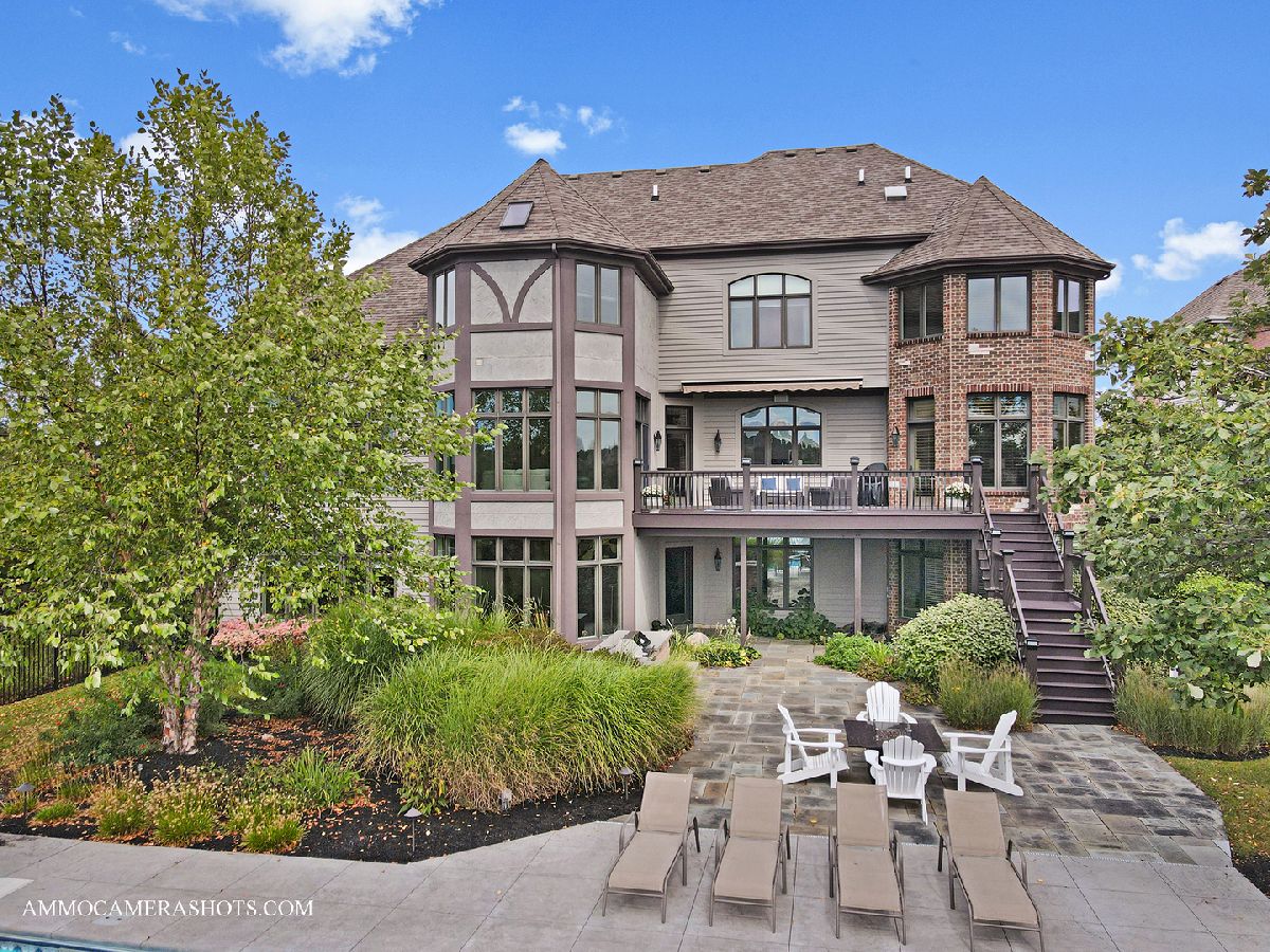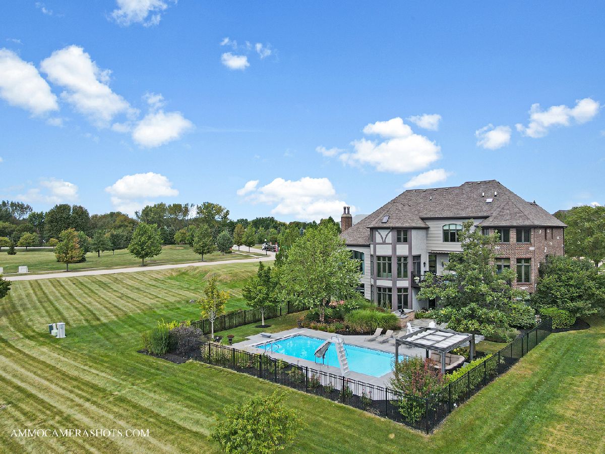 An exceptional opportunity awaits you!! Embraced by clean & modern lines, discover a stunning architectural masterpiece within the highly sought-after Prairie Lakes subdivision! As you walk into this home, you are welcomed by a grand two-story foyer boasting crown molding throughout, & rich details. From the foyer, you are brought into the elegant martini room which features crown molding, a gorgeously designed ceiling medallion w/ gold accents, wainscoting, warm tone hardwood flooring, & exterior access to an additional sitting area w/ brick pavers, perfect for entertaining! The dining room is located just across the foyer, w/ clean, white lines, large bright windows, stunning light fixtures, and easy flow from the kitchen area. The kitchen is a chef's dream w/ beautiful exposed stone, a custom backsplash, high-end appliances, & a view to one of the incredible lakes within the subdivision. This kitchen has abundant custom cabinetry and a spacious walk-in pantry! The oversized island features a second sink, dual refrigerator drawers, and a wonderful breakfast bar area. From the kitchen, you will flow into the eating area with access to the grand butler's pantry. The butler's pantry boasts a wine refrigerator, sink, wine rack, stemware rack, and beautiful granite countertops. Another wonderful feature is the sunroom, offering a bay window wall, ceiling fan, and exterior access to the 2nd story Trex deck ( Newly installed 2020). The family room of this home is exceptional, boasting a soaring box-beamed ceiling, large bright windows, plush carpeting, gas log fireplace, and custom drapes. Additionally, on the main level, you will find a highly detailed office, mudroom, and 1.5 bathrooms. The office is complete with wainscoting, a box-beamed ceiling, and exterior access to the 2nd level Trex deck w/ incredible views of the lake. The mudroom of this home features a custom built-in cubby station, laundry space, & exterior access. On the second level, you will discover an extraordinary master suite & additional detailed bedrooms. The master suite is complete w/ a large sitting area, expansive custom closet space, & an ultra spa-like bathroom. The master bedroom features French doors, a vaulted ceiling, crown molding, & a large, bright window. The walk-in closet is perfectly sized & has the opportunity to have a second laundry. A spa-like bathroom with custom his & her vanities is complete with a luxurious tub, and an exceptional walk-in shower! The additional bedrooms are complete w/ plush carpeting, ceiling fans, bright windows, & private en-suite bathrooms. The lower level is incredible featuring radiant flooring within the stamped concrete areas! The walk-out lower level boasts a luxurious wine cellar, unique wet bar, billiard room, space for a poker table, second family room, 5th bedroom, and plenty of storage. The wine cellar holds approximately 330 bottles of wine, perfect for the wine connoisseur! Flowing from the wine cellar, you will find a stellar wet bar boasting beautiful granite countertops, & a large beverage refrigerator. The large second family room is perfect for entertaining with plush carpeting, fireplace, & large bright windows. The 5th bedroom within the walk-out lower level boasts beautiful flooring, a full bath, & a large bright bay window. The exterior of this home is exceptional! From the walk-out lower level, you are greeted by a peaceful running pond. A bluestone patio is complete w/ an outdoor kitchen area with a built-in grill, granite countertops, and a built-in cooler space. You will find a pergola offering an additional area for seating located just outside of the wonderful pool area featuring a slide & diving board! The four-car garage boasts epoxy flooring, heat, & custom shelving w/ a stamped concrete driveway. This home is one of the best to be found within the Prairie Lakes community & you will NOT want to miss it. Please find more seller upgrades within the additional information