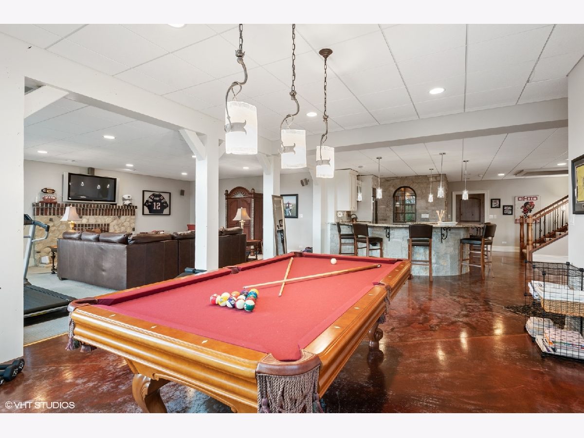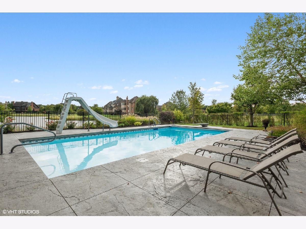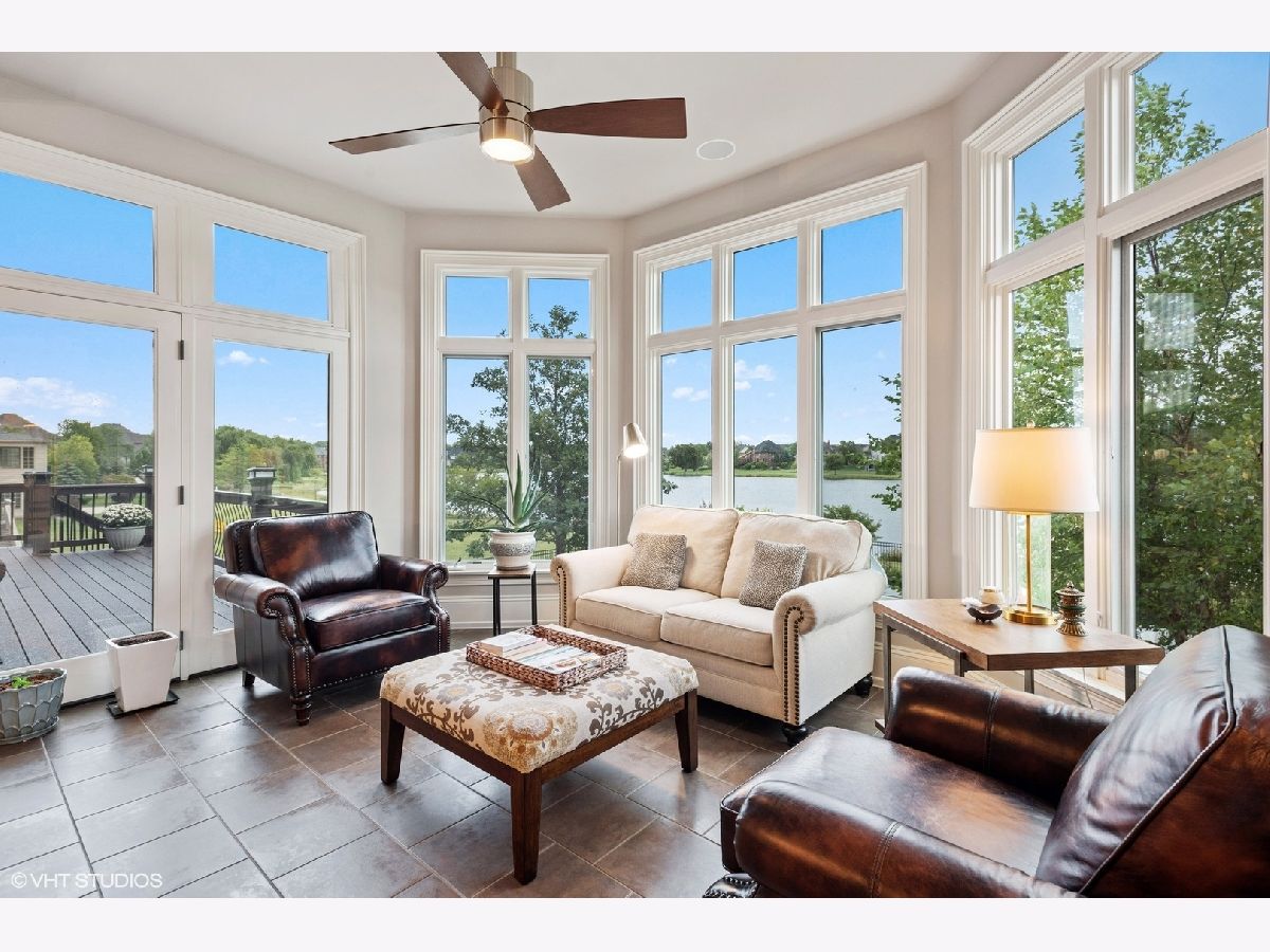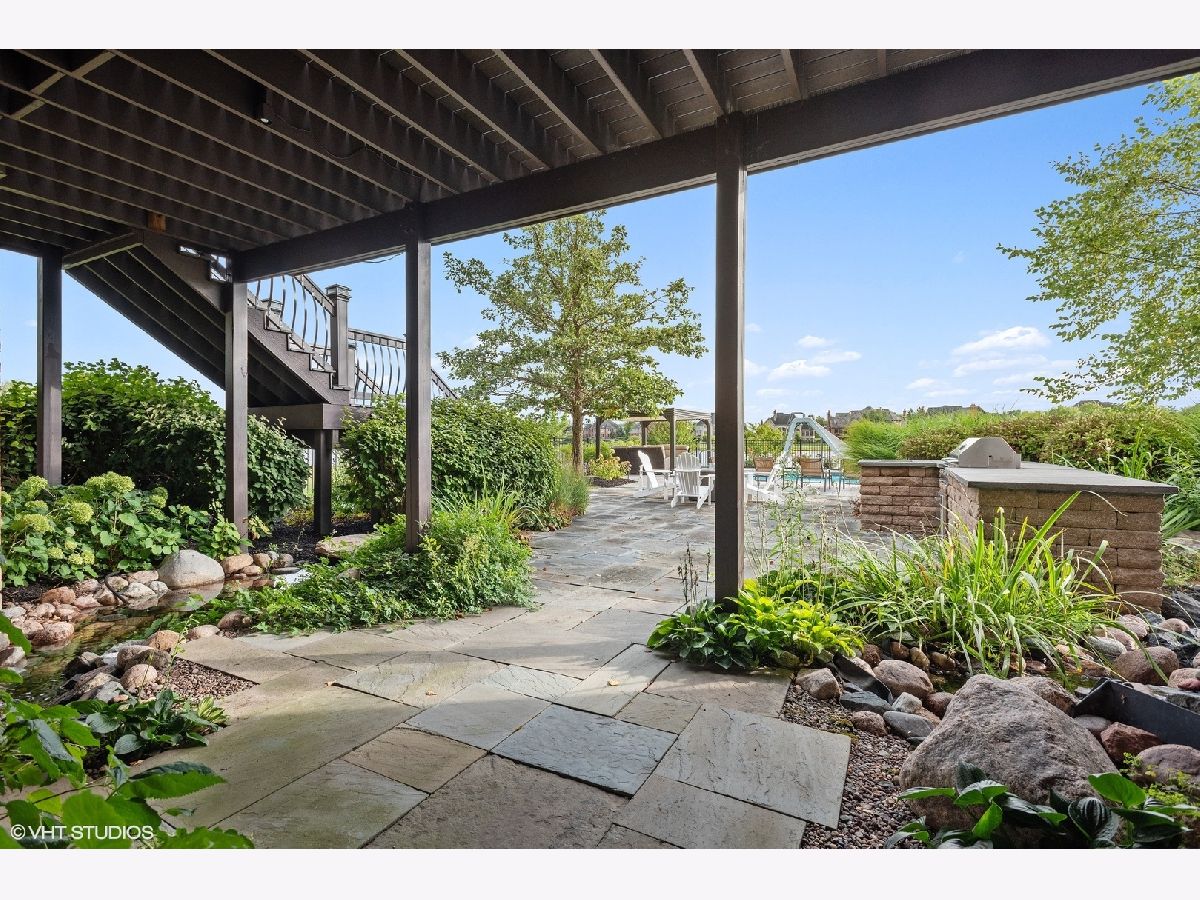 An exceptional opportunity awaits you!! Embraced by clean & modern lines, discover a stunning architectural masterpiece within the highly sought-after Prairie Lakes subdivision! As you walk into this home, you are welcomed by a grand two-story foyer boasting crown molding throughout, & rich details. From the foyer, you are brought into the elegant martini room which features crown molding, a gorgeously designed ceiling medallion w/ gold accents, wainscoting, warm tone hardwood flooring, & exterior access to an additional sitting area w/ brick pavers, perfect for entertaining! The dining room is located just across the foyer, w/ clean, white lines, large bright windows, stunning light fixtures, and easy flow from the kitchen area. The kitchen is a chef's dream w/ beautiful exposed stone, a custom backsplash, high-end appliances, & a view to one of the incredible lakes within the subdivision. This kitchen has abundant custom cabinetry and a spacious walk-in pantry! The oversized island features a second sink, dual refrigerator drawers, and a wonderful breakfast bar area. From the kitchen, you will flow into the eating area with access to the grand butler's pantry. The butler's pantry boasts a wine refrigerator, sink, wine rack, stemware rack, and beautiful granite countertops. Another wonderful feature is the sunroom, offering a bay window wall, ceiling fan, and exterior access to the 2nd story Trex deck ( Newly installed 2020). The family room of this home is exceptional, boasting a soaring box-beamed ceiling, large bright windows, plush carpeting, gas log fireplace, and custom drapes. Additionally, on the main level, you will find a highly detailed office, mudroom, and 1.5 bathrooms. The office is complete with wainscoting, a box-beamed ceiling, and exterior access to the 2nd level Trex deck w/ incredible views of the lake. The mudroom of this home features a custom built-in cubby station, laundry space, & exterior access. On the second level, you will discover an extraordinary master suite & additional detailed bedrooms. The master suite is complete w/ a large sitting area, expansive custom closet space, & an ultra spa-like bathroom. The master bedroom features French doors, a vaulted ceiling, crown molding, & a large, bright window. The walk-in closet is perfectly sized & has the opportunity to have a second laundry. A spa-like bathroom with custom his & her vanities is complete with a luxurious tub, and an exceptional walk-in shower! The additional bedrooms are complete w/ plush carpeting, ceiling fans, bright windows, & private en-suite bathrooms. The lower level is incredible featuring radiant flooring within the stamped concrete areas! The walk-out lower level boasts a luxurious wine cellar, unique wet bar, billiard room, space for a poker table, second family room, 5th bedroom, and plenty of storage. The wine cellar holds approximately 330 bottles of wine, perfect for the wine connoisseur! Flowing from the wine cellar, you will find a stellar wet bar boasting beautiful granite countertops, & a large beverage refrigerator. The large second family room is perfect for entertaining with plush carpeting, fireplace, & large bright windows. The 5th bedroom within the walk-out lower level boasts beautiful flooring, a full bath, & a large bright bay window. The exterior of this home is exceptional! From the walk-out lower level, you are greeted by a peaceful running pond. A bluestone patio is complete w/ an outdoor kitchen area with a built-in grill, granite countertops, and a built-in cooler space. You will find a pergola offering an additional area for seating located just outside of the wonderful pool area featuring a slide & diving board! The four-car garage boasts epoxy flooring, heat, & custom shelving w/ a stamped concrete driveway. This home is one of the best to be found within the Prairie Lakes community & you will NOT want to miss it. Please find more seller upgrades within the additional information