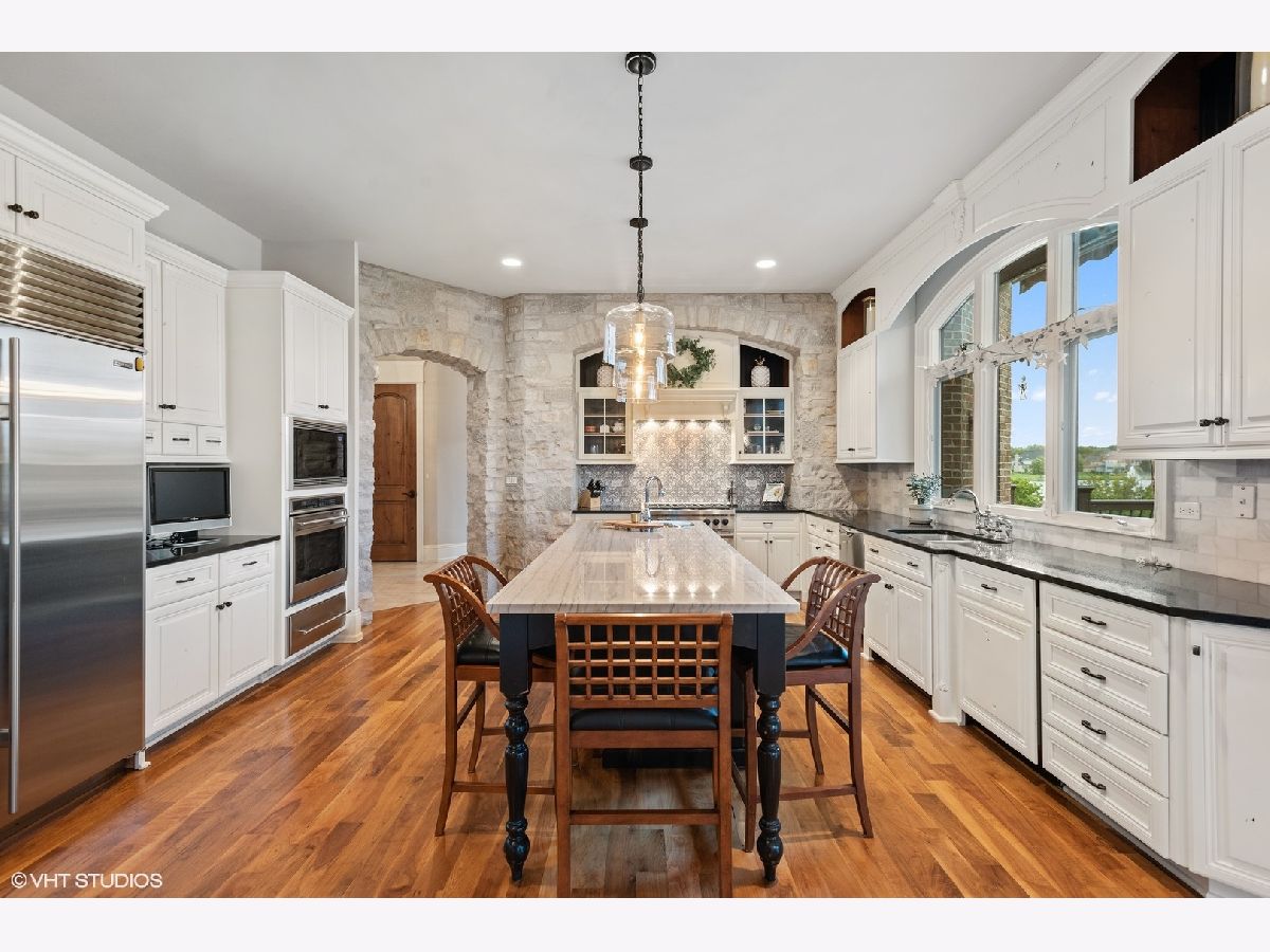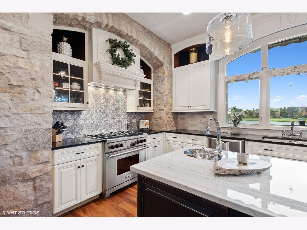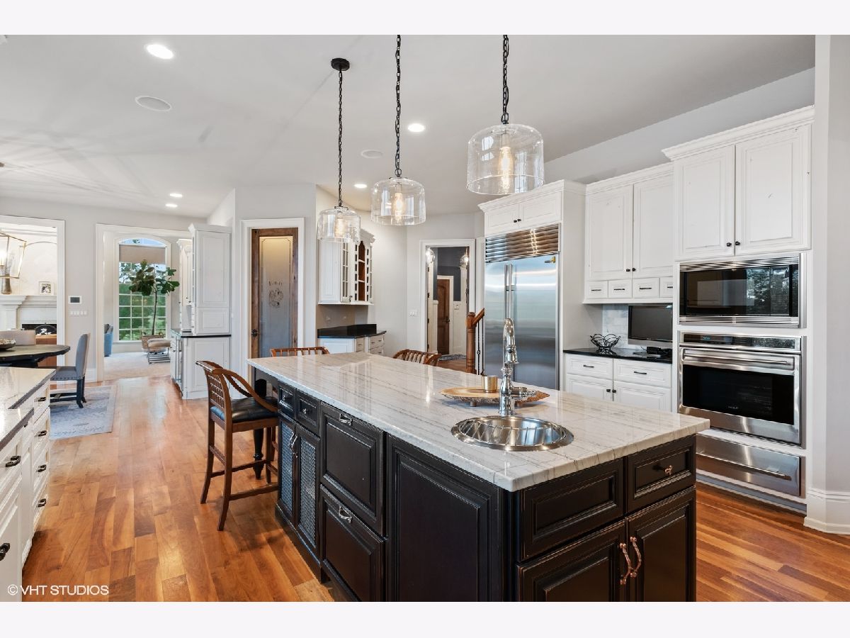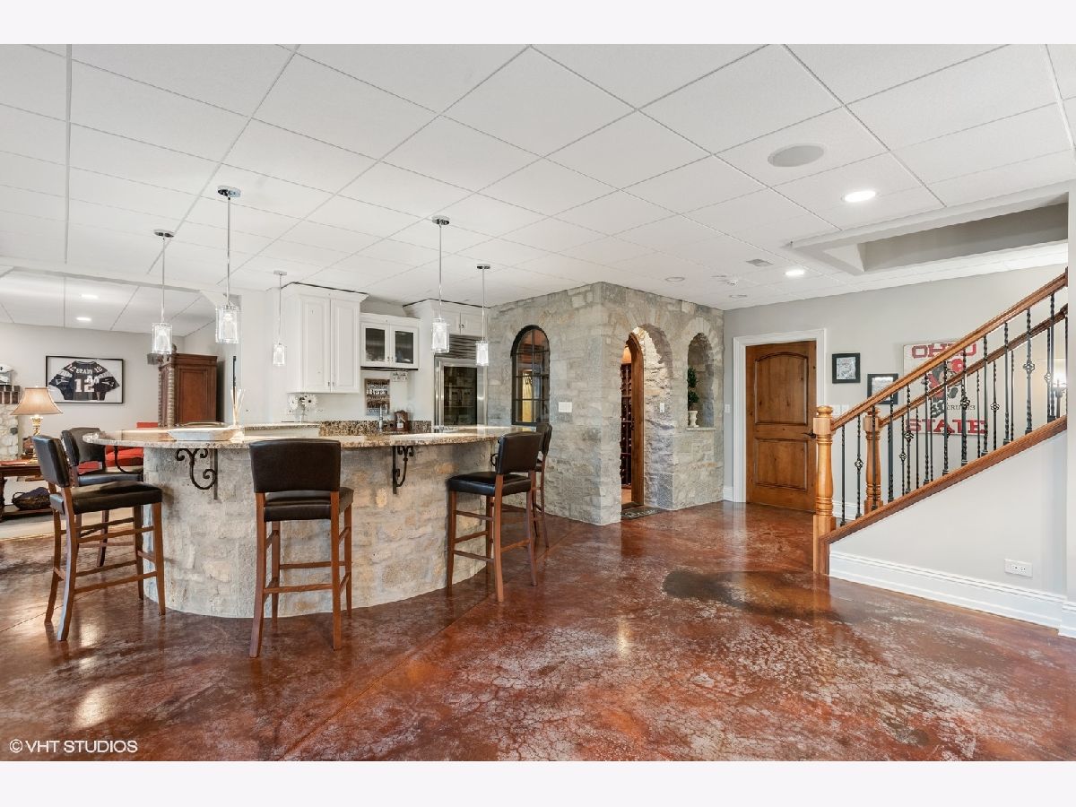 An exceptional opportunity awaits you!! Embraced by clean & modern lines, discover a stunning architectural masterpiece within the highly sought-after Prairie Lakes subdivision! As you walk into this home, you are welcomed by a grand two-story foyer boasting crown molding throughout, & rich details. From the foyer, you are brought into the elegant martini room which features crown molding, a gorgeously designed ceiling medallion w/ gold accents, wainscoting, warm tone hardwood flooring, & exterior access to an additional sitting area w/ brick pavers, perfect for entertaining! The dining room is located just across the foyer, w/ clean, white lines, large bright windows, stunning light fixtures, and easy flow from the kitchen area. The kitchen is a chef's dream w/ beautiful exposed stone, a custom backsplash, high-end appliances, & a view to one of the incredible lakes within the subdivision. This kitchen has abundant custom cabinetry and a spacious walk-in pantry! The oversized island features a second sink, dual refrigerator drawers, and a wonderful breakfast bar area. From the kitchen, you will flow into the eating area with access to the grand butler's pantry. The butler's pantry boasts a wine refrigerator, sink, wine rack, stemware rack, and beautiful granite countertops. Another wonderful feature is the sunroom, offering a bay window wall, ceiling fan, and exterior access to the 2nd story Trex deck ( Newly installed 2020). The family room of this home is exceptional, boasting a soaring box-beamed ceiling, large bright windows, plush carpeting, gas log fireplace, and custom drapes. Additionally, on the main level, you will find a highly detailed office, mudroom, and 1.5 bathrooms. The office is complete with wainscoting, a box-beamed ceiling, and exterior access to the 2nd level Trex deck w/ incredible views of the lake. The mudroom of this home features a custom built-in cubby station, laundry space, & exterior access. On the second level, you will discover an extraordinary master suite & additional detailed bedrooms. The master suite is complete w/ a large sitting area, expansive custom closet space, & an ultra spa-like bathroom. The master bedroom features French doors, a vaulted ceiling, crown molding, & a large, bright window. The walk-in closet is perfectly sized & has the opportunity to have a second laundry. A spa-like bathroom with custom his & her vanities is complete with a luxurious tub, and an exceptional walk-in shower! The additional bedrooms are complete w/ plush carpeting, ceiling fans, bright windows, & private en-suite bathrooms. The lower level is incredible featuring radiant flooring within the stamped concrete areas! The walk-out lower level boasts a luxurious wine cellar, unique wet bar, billiard room, space for a poker table, second family room, 5th bedroom, and plenty of storage. The wine cellar holds approximately 330 bottles of wine, perfect for the wine connoisseur! Flowing from the wine cellar, you will find a stellar wet bar boasting beautiful granite countertops, & a large beverage refrigerator. The large second family room is perfect for entertaining with plush carpeting, fireplace, & large bright windows. The 5th bedroom within the walk-out lower level boasts beautiful flooring, a full bath, & a large bright bay window. The exterior of this home is exceptional! From the walk-out lower level, you are greeted by a peaceful running pond. A bluestone patio is complete w/ an outdoor kitchen area with a built-in grill, granite countertops, and a built-in cooler space. You will find a pergola offering an additional area for seating located just outside of the wonderful pool area featuring a slide & diving board! The four-car garage boasts epoxy flooring, heat, & custom shelving w/ a stamped concrete driveway. This home is one of the best to be found within the Prairie Lakes community & you will NOT want to miss it. Please find more seller upgrades within the additional information
