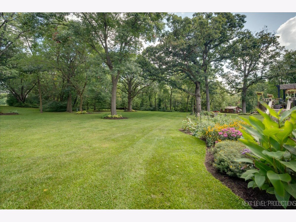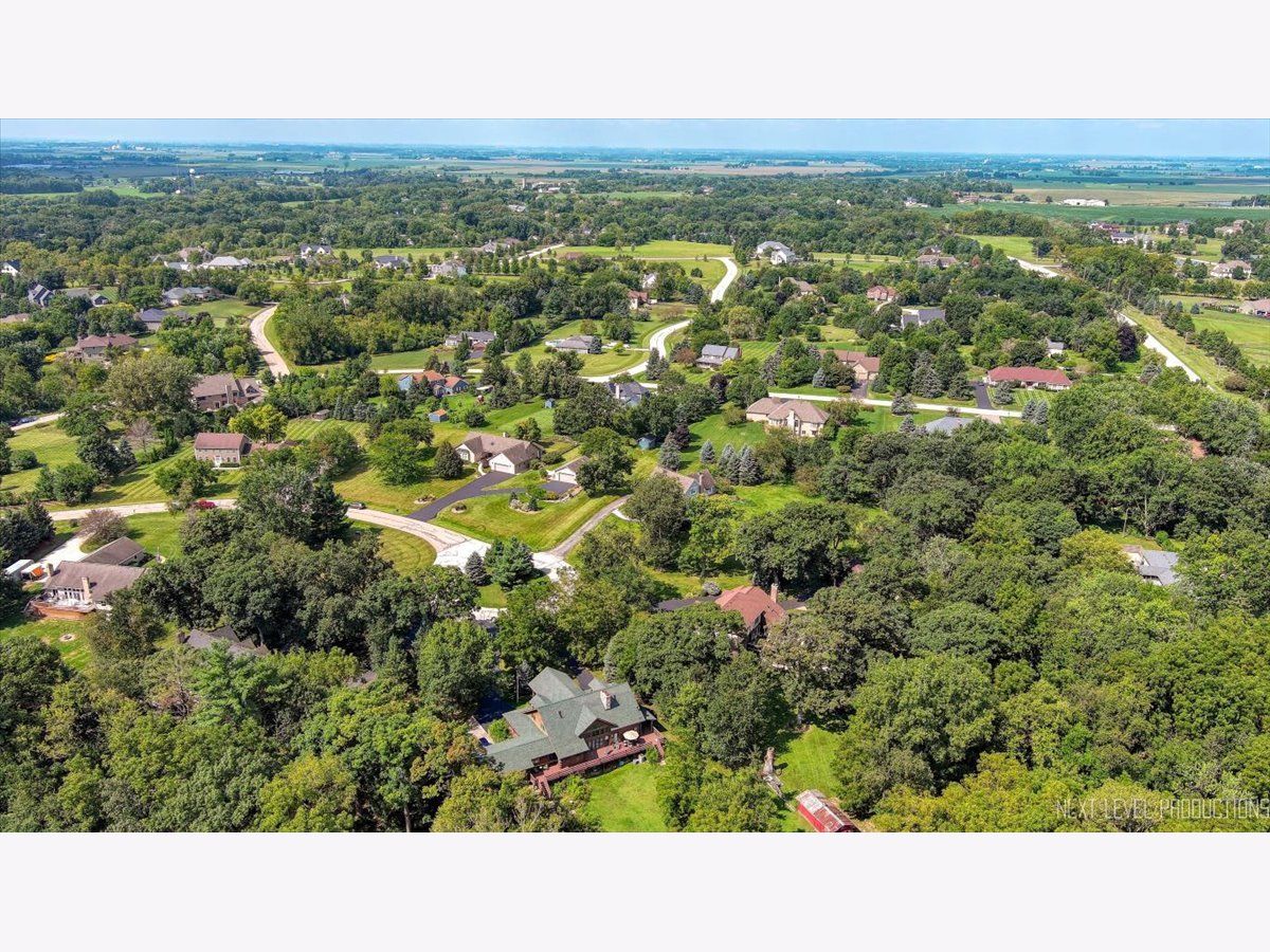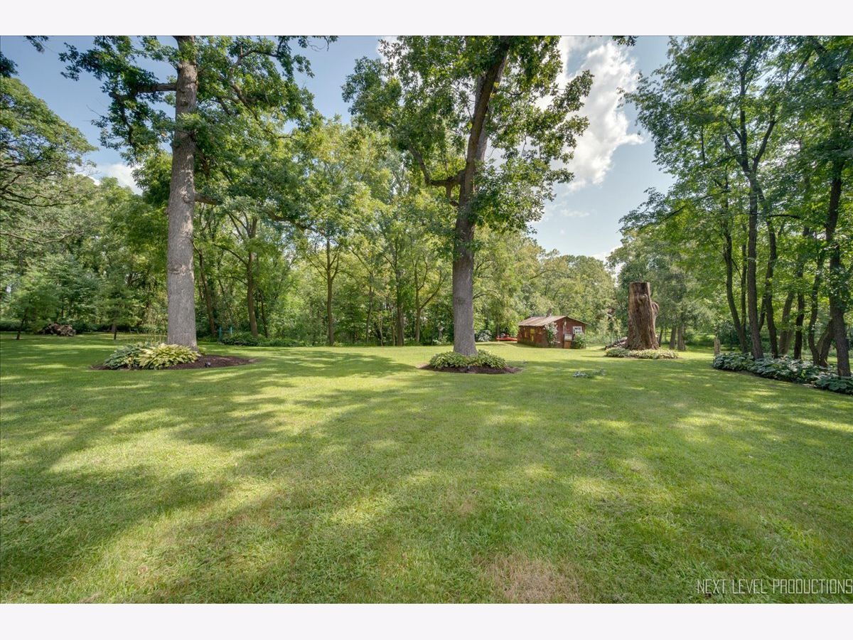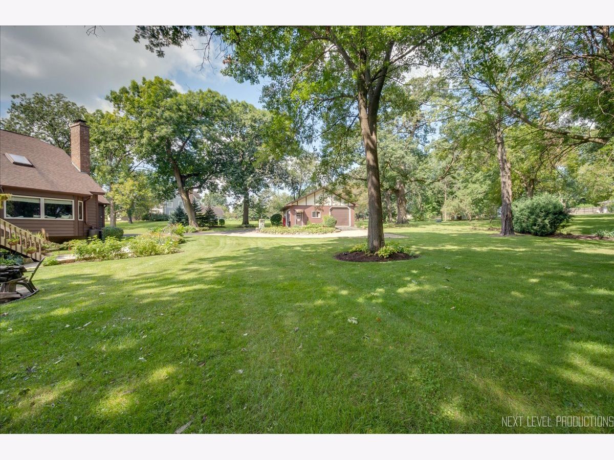 Step inside this fabulous 2-story home, nestled on a quiet cul-de-sac, and you'll immediately fall in love with this 1.39 acre park-like setting backing to woods and a winding creek! Lovingly cared for, this home was originally built by a local builder as his own private residence. Are you looking for garage space? You'll find room for 8 cars with the attached 3-car heated garage and the 900 sq. ft. outbuilding, which can accommodate 4-5 more vehicles, and offers shop space and a floored attic. The outbuilding features a double garage door, a single garage door, a service door, and has heat and electricity. The home itself offers over 3,400 sq. ft. of living space and is loaded with upgrades, including wood-cased openings, multi-piece moldings, and chair rails throughout both levels. A two-story foyer with wainscoting and a tile floor with stone inlay greets you upon entering. You'll also find a formal dining room with hardwood floors and a chandelier, and a formal living room with a boxed bay window. The country kitchen is loaded with cabinets, a pantry cabinet with pull-outs, an island with cooktop, granite countertops, stainless steel appliances, and recessed and drop lighting. The kitchen leads to an oversized deck with views of the gorgeous backyard. The family room features a beautiful vaulted wood-beamed ceiling, a floor-to-ceiling brick fireplace, and windows that stretch across the room for loads of natural light. The first-floor den/bedroom offers boxed bay cedar storage and has access to a full bath for guests. The back service hall offers laundry service, a laundry sink, large coat closet, plus additional storage cabinets, and access doors to the garage, outside, and a back staircase leading to the finished English basement. Upstairs, you'll find a huge master suite with a tray ceiling, a large sitting area with a huge picture window offering beautiful views, and a sliding double door that opens to a balcony overlooking the family room, and a walk in closet. The master bath has a dual vanity, a large Jacuzzi soaking tub, a separate shower area, plus a full wall of closets for storage, and a laundry chute! There are also 2 nice-sized bedrooms upstairs, both with walk-in closets. The recently finished English basement has 2 large recreation areas and a full kitchenette with cabinets and a refrigerator, perfect for an in-law suite, guests, or family gatherings. Additionally, there is an unfinished mechanical room with plenty of storage and stairs that lead to the back service hall. The remarkable setting features stone walkways, mature plantings, perennials, a wooded tree line, and a creek at the back of the property. There is also a firepit to sit around and enjoy evening sunsets. The shed at the back of the property offers more storage or would make a perfect "she shed"! This home offers easy access to the Great Western Bike Path, Route 47 & I-88. Shopping is close by in Elburn or 10 minutes to downtown St. Charles. Simply a perfect place to call Home!