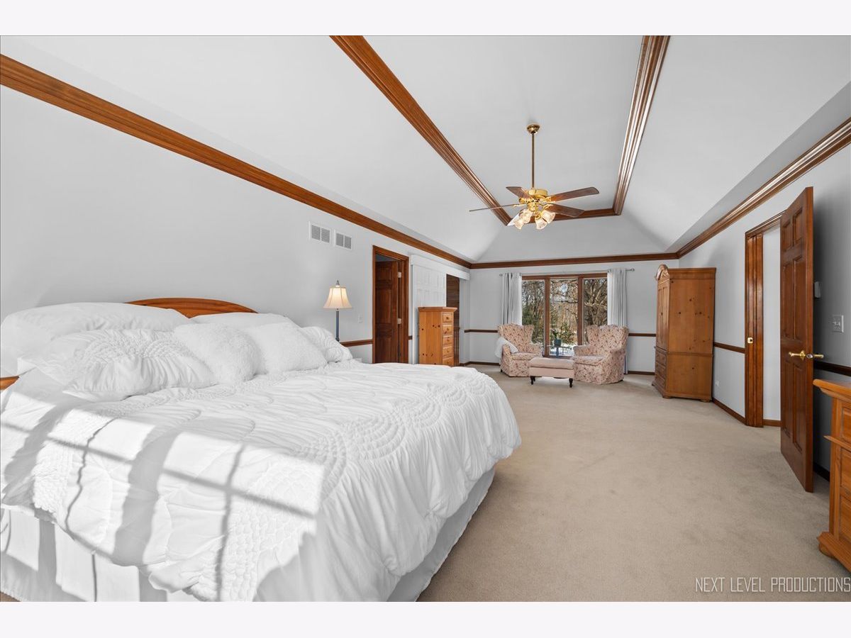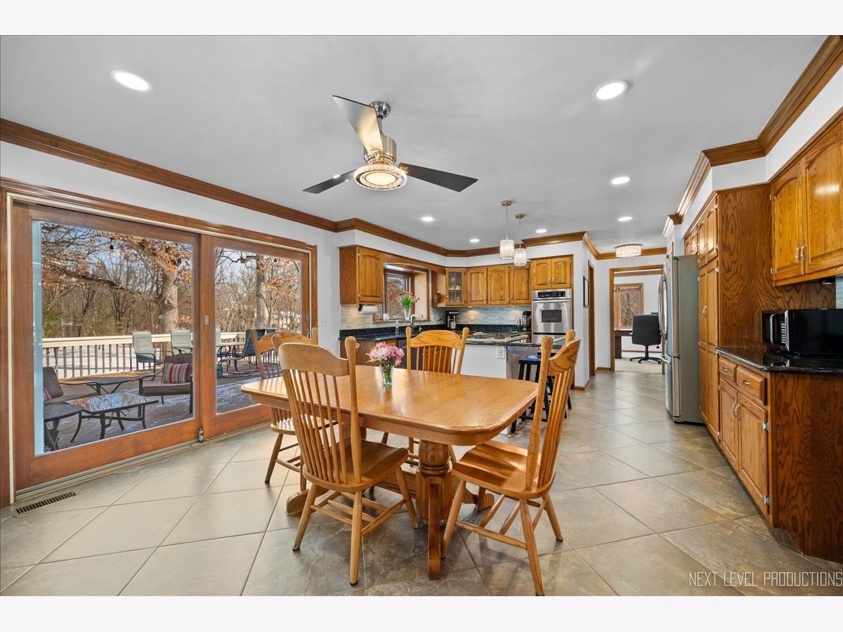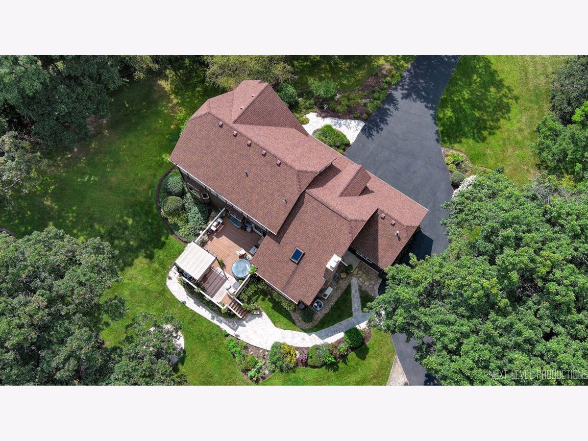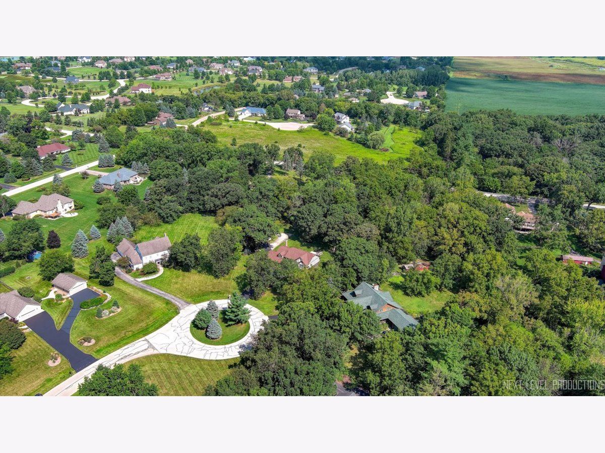 Step inside this fabulous 2-story home, nestled on a quiet cul-de-sac, and you'll immediately fall in love with this 1.39 acre park-like setting backing to woods and a winding creek! Lovingly cared for, this home was originally built by a local builder as his own private residence. Are you looking for garage space? You'll find room for 8 cars with the attached 3-car heated garage and the 900 sq. ft. outbuilding, which can accommodate 4-5 more vehicles, and offers shop space and a floored attic. The outbuilding features a double garage door, a single garage door, a service door, and has heat and electricity. The home itself offers over 3,400 sq. ft. of living space and is loaded with upgrades, including wood-cased openings, multi-piece moldings, and chair rails throughout both levels. A two-story foyer with wainscoting and a tile floor with stone inlay greets you upon entering. You'll also find a formal dining room with hardwood floors and a chandelier, and a formal living room with a boxed bay window. The country kitchen is loaded with cabinets, a pantry cabinet with pull-outs, an island with cooktop, granite countertops, stainless steel appliances, and recessed and drop lighting. The kitchen leads to an oversized deck with views of the gorgeous backyard. The family room features a beautiful vaulted wood-beamed ceiling, a floor-to-ceiling brick fireplace, and windows that stretch across the room for loads of natural light. The first-floor den/bedroom offers boxed bay cedar storage and has access to a full bath for guests. The back service hall offers laundry service, a laundry sink, large coat closet, plus additional storage cabinets, and access doors to the garage, outside, and a back staircase leading to the finished English basement. Upstairs, you'll find a huge master suite with a tray ceiling, a large sitting area with a huge picture window offering beautiful views, and a sliding double door that opens to a balcony overlooking the family room, and a walk in closet. The master bath has a dual vanity, a large Jacuzzi soaking tub, a separate shower area, plus a full wall of closets for storage, and a laundry chute! There are also 2 nice-sized bedrooms upstairs, both with walk-in closets. The recently finished English basement has 2 large recreation areas and a full kitchenette with cabinets and a refrigerator, perfect for an in-law suite, guests, or family gatherings. Additionally, there is an unfinished mechanical room with plenty of storage and stairs that lead to the back service hall. The remarkable setting features stone walkways, mature plantings, perennials, a wooded tree line, and a creek at the back of the property. There is also a firepit to sit around and enjoy evening sunsets. The shed at the back of the property offers more storage or would make a perfect "she shed"! This home offers easy access to the Great Western Bike Path, Route 47 & I-88. Shopping is close by in Elburn or 10 minutes to downtown St. Charles. Simply a perfect place to call Home!