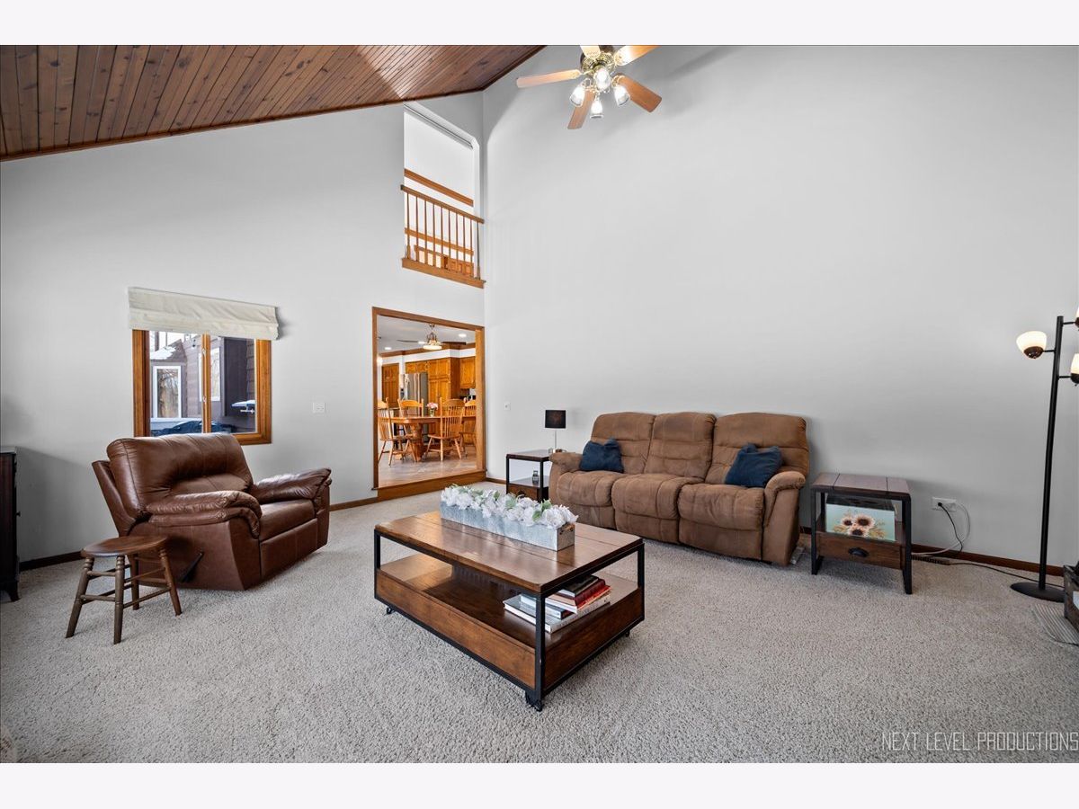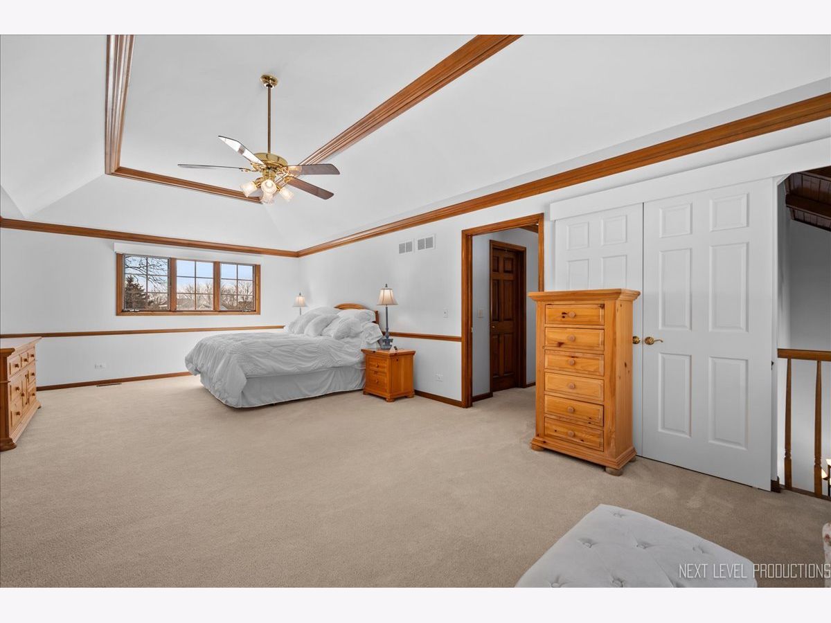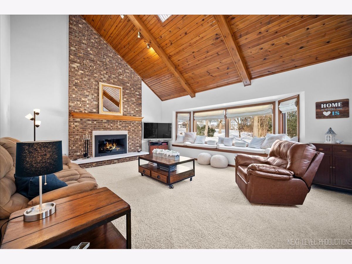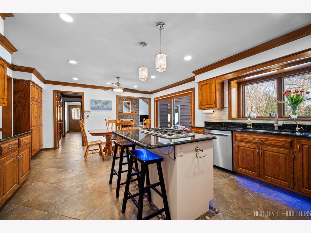Step inside this fabulous 2-story home, nestled on a quiet cul-de-sac, and you'll immediately fall in love with this 1.39 acre park-like setting backing to woods and a winding creek! Lovingly cared for, this home was originally built by a local builder as his own private residence. Are you looking for garage space? You'll find room for 8 cars with the attached 3-car heated garage and the 900 sq. ft. outbuilding, which can accommodate 4-5 more vehicles, and offers shop space and a floored attic. The outbuilding features a double garage door, a single garage door, a service door, and has heat and electricity. The home itself offers over 3,400 sq. ft. of living space and is loaded with upgrades, including wood-cased openings, multi-piece moldings, and chair rails throughout both levels. A two-story foyer with wainscoting and a tile floor with stone inlay greets you upon entering. You'll also find a formal dining room with hardwood floors and a chandelier, and a formal living room with a boxed bay window. The country kitchen is loaded with cabinets, a pantry cabinet with pull-outs, an island with cooktop, granite countertops, stainless steel appliances, and recessed and drop lighting. The kitchen leads to an oversized deck with views of the gorgeous backyard. The family room features a beautiful vaulted wood-beamed ceiling, a floor-to-ceiling brick fireplace, and windows that stretch across the room for loads of natural light. The first-floor den/bedroom offers boxed bay cedar storage and has access to a full bath for guests. The back service hall offers laundry service, a laundry sink, large coat closet, plus additional storage cabinets, and access doors to the garage, outside, and a back staircase leading to the finished English basement. Upstairs, you'll find a huge master suite with a tray ceiling, a large sitting area with a huge picture window offering beautiful views, and a sliding double door that opens to a balcony overlooking the family room, and a walk in closet. The master bath has a dual vanity, a large Jacuzzi soaking tub, a separate shower area, plus a full wall of closets for storage, and a laundry chute! There are also 2 nice-sized bedrooms upstairs, both with walk-in closets. The recently finished English basement has 2 large recreation areas and a full kitchenette with cabinets and a refrigerator, perfect for an in-law suite, guests, or family gatherings. Additionally, there is an unfinished mechanical room with plenty of storage and stairs that lead to the back service hall. The remarkable setting features stone walkways, mature plantings, perennials, a wooded tree line, and a creek at the back of the property. There is also a firepit to sit around and enjoy evening sunsets. The shed at the back of the property offers more storage or would make a perfect "she shed"! This home offers easy access to the Great Western Bike Path, Route 47 & I-88. Shopping is close by in Elburn or 10 minutes to downtown St. Charles. Simply a perfect place to call Home!
