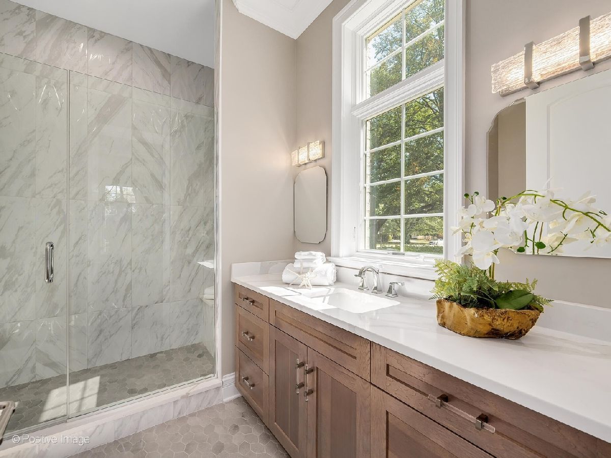The Only New Construction Home Available in Oak Brook - Ready for Immediate Move-In! Experience unparalleled luxury in this newly completed, custom-built stone and brick estate - the only new construction opportunity in prestigious Oak Brook. Designed to perfection, this extraordinary residence offers every amenity today's discerning buyer demands. Boasting 6-7 bedrooms, including a first-floor private suite, and soaring 10-foot ceilings with 8-foot solid interior doors, the home is filled with natural light from a wealth of expansive windows. A grand two-story family room with a fireplace anchors the main level, alongside a stunning screened-in porch that overlooks a spacious backyard - perfectly sized to accommodate a future pool and lush lawn. The designer kitchen is a chef's dream, featuring custom white and walnut Crystal cabinetry, dual work islands, a generous breakfast area, and top-of-the-line appliances: a 48-inch Wolf range, Wolf ovens, Sub-Zero modular refrigeration, and two Cove dishwashers. The walk-in storage pantry, mitered quartzite countertops, and butler's pantry with beverage center and wine cooler elevate everyday living and entertaining. Elegant front and rear staircases lead to an opulent primary suite showcasing a custom fireplace, detailed ceiling work, a private sitting area, and spa-inspired bath with heated floors, dual vanities, a separate makeup station, and Kardashian-style walk-in closets with custom cabinetry. The finished English basement offers 10-foot ceilings and endless options for recreation and relaxation, including a natural stone fireplace, full custom bar, dedicated home gym, home theater room, and a massive open living area. A four-car attached heated garage, professionally designed landscaping with a sprinkler system, and a paver entry and driveway complete this exceptional offering. Don't miss the rare opportunity to own a brand-new, move-in-ready masterpiece in Oak Brook!