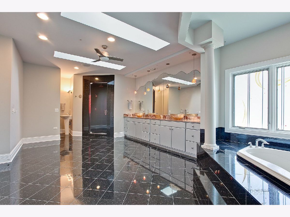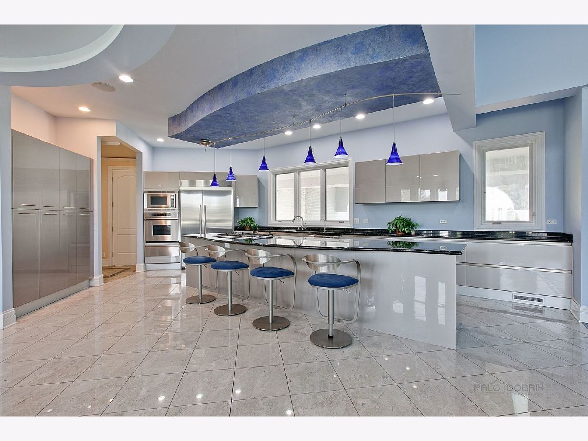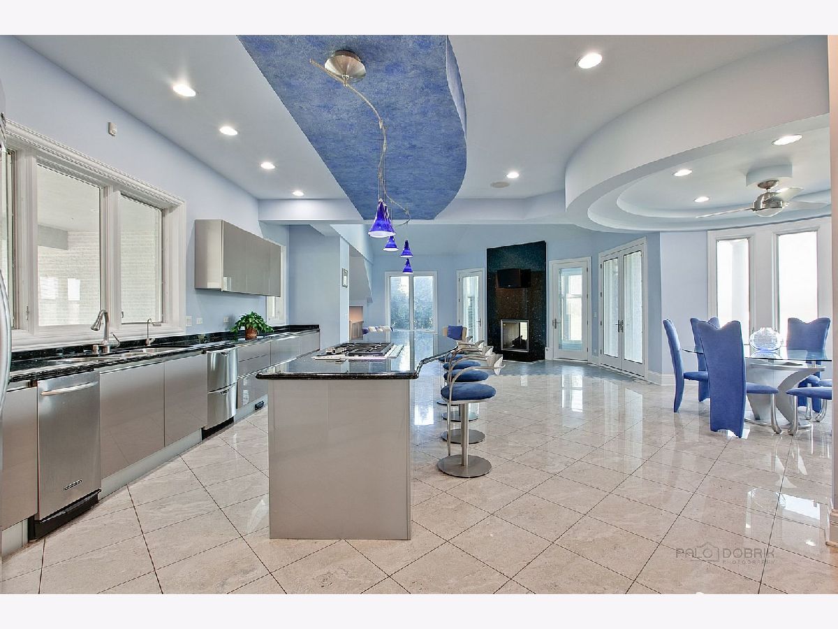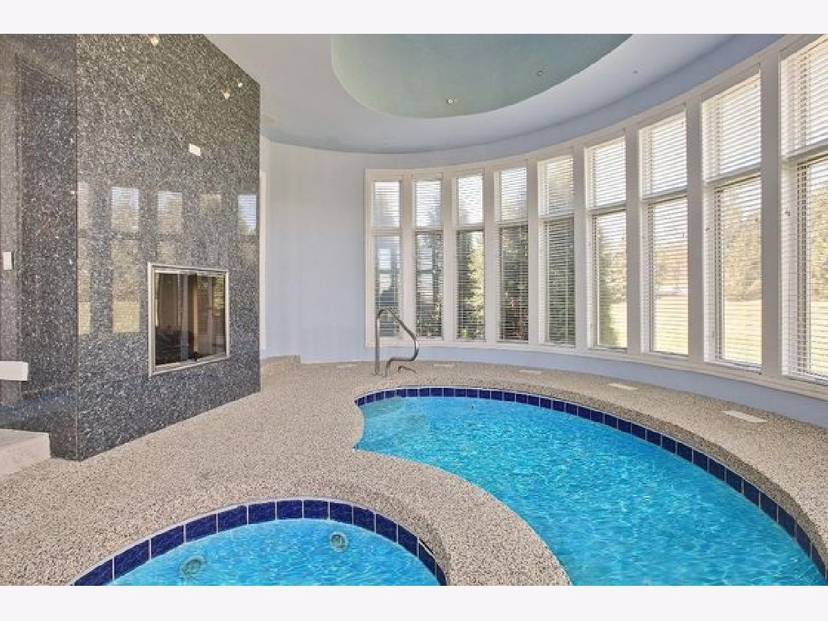 Back on Market, Buyer could not get financing. Stunning Contemporary. Grand foyer entry with bridal staircase, 2 stories of windows. Beautiful family room attached to bar area and French doors to outside veranda. Huge kitchen with contemporary cabinets, sunroom area before entry to the indoor spa/pool. 2nd "cooking" kitchen on main floor. First floor bedroom en-suite. Huge bedrooms on 2nd floor. Master with office, dressing area, fireplace. All other bedrooms as en-suites. Finished walkout basement with large media room, 3rd kitchen, bar, additional office/exercise. Elevator, 100 year metal roof. Close to I-90 & METRA