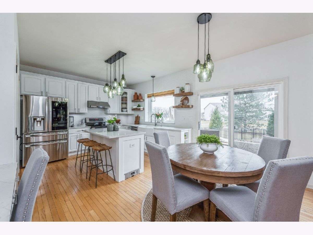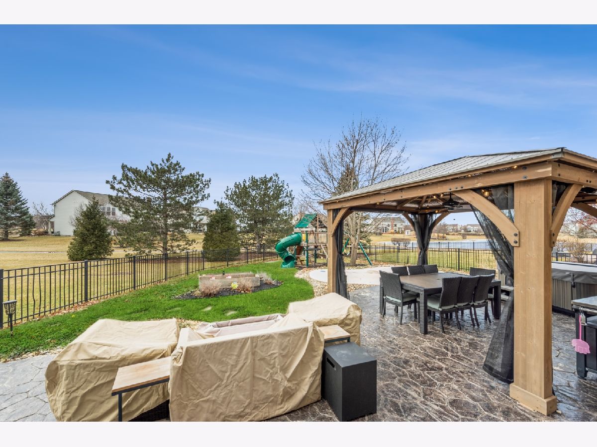 ONE OF A KIND! Wonderful family home in desirable Manchester Lakes Estates with water views and your own Private 20x16 SPLASH PAD. Meticulously maintained, Sterling model. Fall in love as you enter into this light and bright Smart home, with an ideal open floor plan. Desirable hardwood floors throughout the first floor, a main floor private office plus an open updated-2020 kitchen New refrigerator-2020 Bosch and LG appliances with an eat-in table area, highlighted by stainless steel appliances and ample storage and under cabinet vacuum system. For additional entertaining space, sliding doors lead you out onto the beautiful Concrete stamped patio with Gazebo and Hot tub to enjoy your summers. Prime outdoor entertaining space in your own backyard. Back inside the home is a perfect gathering spot, with an ideal two-story family room with Italian custom woodwork, highlighted by a brick fireplace. Upstairs find a spacious primary suite featuring a private bath with double sinks with custom closet. Three additional over-sized bedrooms and a full 2nd bathroom finish off the space. The lowest level features a finished basement for additional entertaining space and storage, perfect for an added workout area as well. Convenient first floor laundry (washer and dryer 2018) and a mudroom for our challenging winters. Roof-2014,Furnace-2012, A/C-2010, 75 gallon Hot Water Heater 2016, All west facing windows replaced including patio door-2016, newer sump pump with battery back-up and air cleaner with UV (Apco). 3 Car Garage with rubber floor system and metal Gladiator cabinets. Wonderful location within the neighborhood. surrounded by walking paths, top rated Huntley schools, close to Shopping & Restaurants, Exner Marsh Nature Preserve, golf, parks, schools, easy access to highways. What more could you want from YOUR new neighborhood?