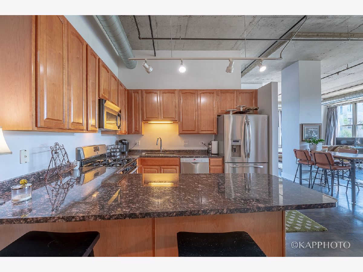If you love North and East exposure, 70 feet of windows and natural light throughout, and a private balcony with a view then this corner unit is right for you! This investor friendly 2 bed | 2 bath is located in the heart of the West Loop with Skinner Elementary, parks, restaurants, CTA and express all within reach. Blended styles of industrial and refreshing thanks to the rich dark and neutral warm contrasts. Enjoy the 8ft doors, 12ft ceilings, designer lighting and open concept living area. The entire home is filled with storage - in the kitchen, laundry room and the massive custom-built walk-in closet. Hardwood floors throughout the living area, double vanity & kitchen island.