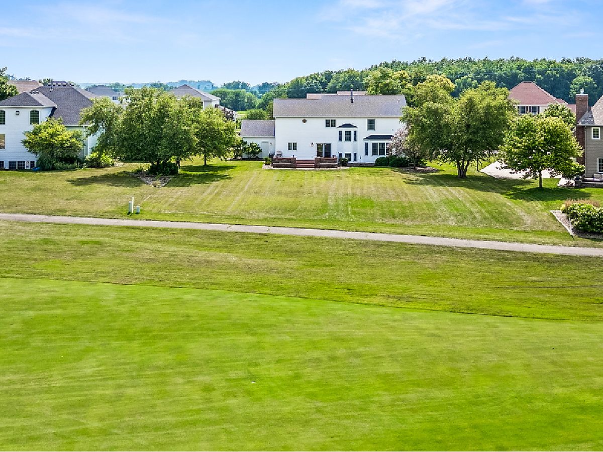 Fabulous .44 acre lot on a quiet cul-de-sac with beautiful golf course views! You will enjoy relaxing on the deck in the afternoon shade enjoying this lovely setting. Inside, you will find 3 finished levels providing almost 3900 sq ft of living space including 5 bedrooms and 3.5 baths. The 2-story foyer will lead you to the main floor office, the dining room and the family room. The spacious kitchen has granite counters, an island, tile backsplash, double ovens, tile flooring, many cabinets with pull-outs as well as large drawers for great storage. There is newer wood flooring in areas on the main level. Also on this level, you will appreciate the laundry and separate mud room/drop zone. The basement provides a huge family room, a bedroom, a full bath and an exercise room or second office. In 2021, both upstairs baths were updated. The owner bath has a new soaking tub, vanity tops, lights, mirrors and flooring. The hall bath has a gorgeous new double vanity, sink tops, lights and flooring. Some professional painting was just completed.